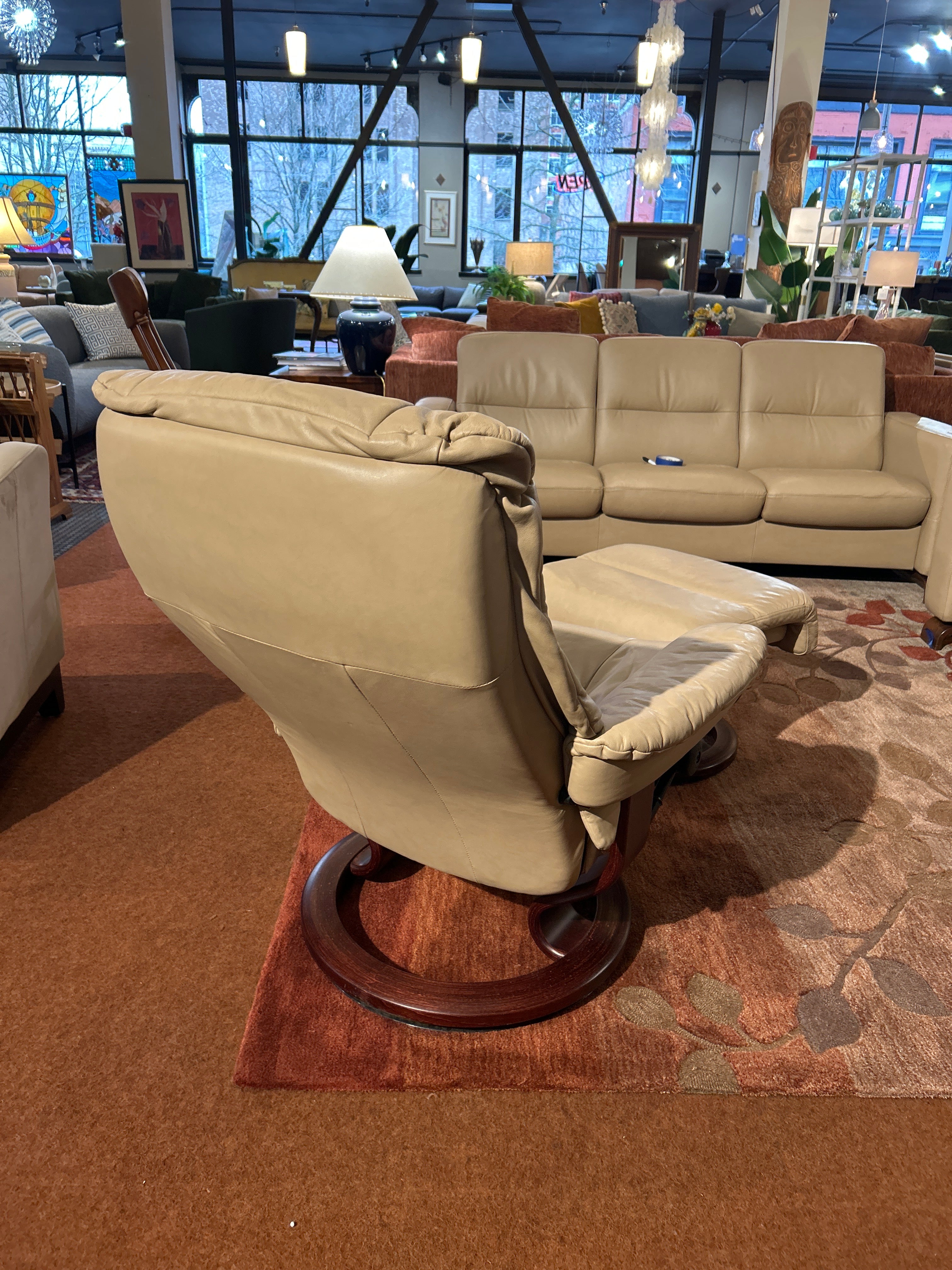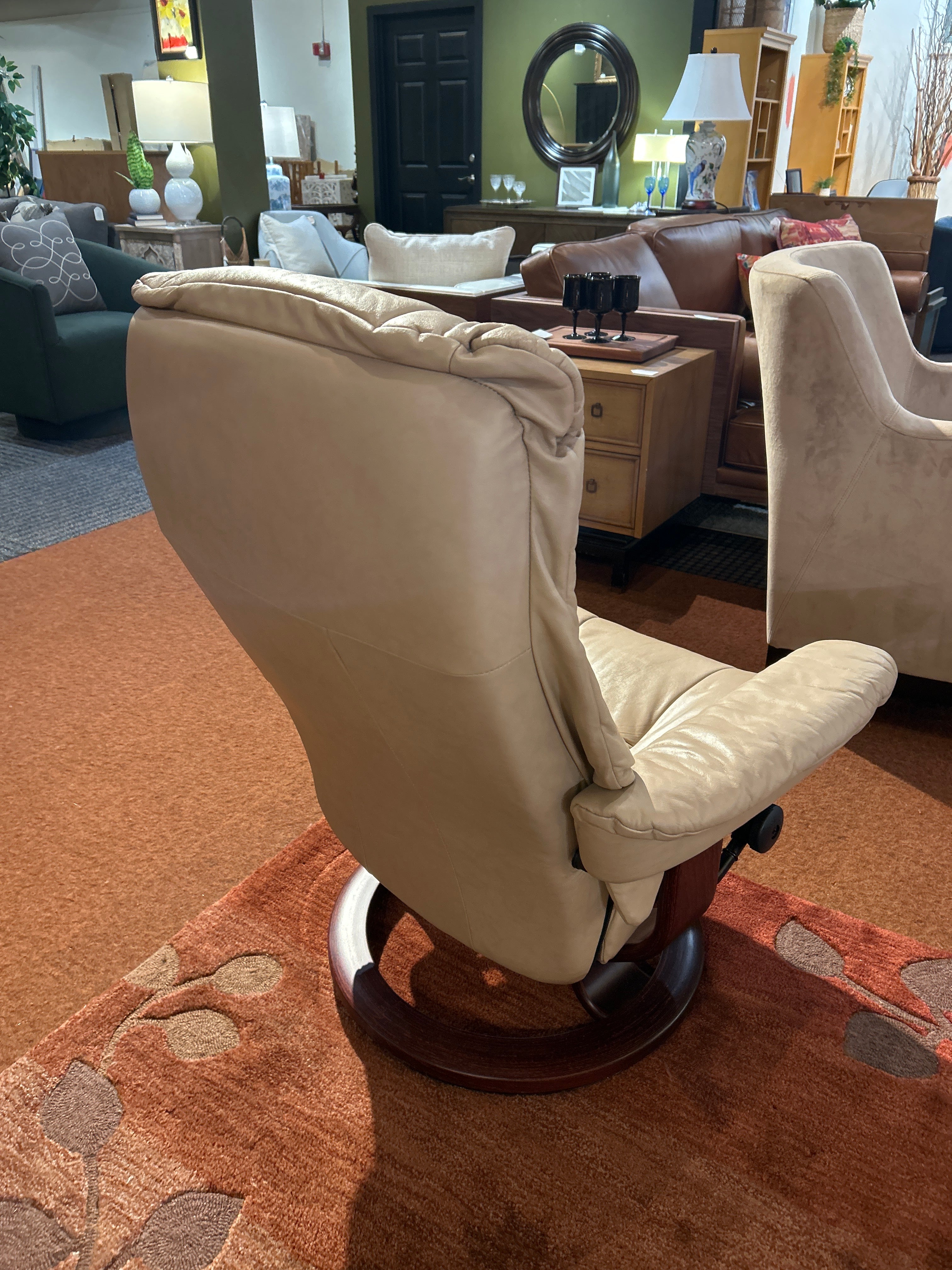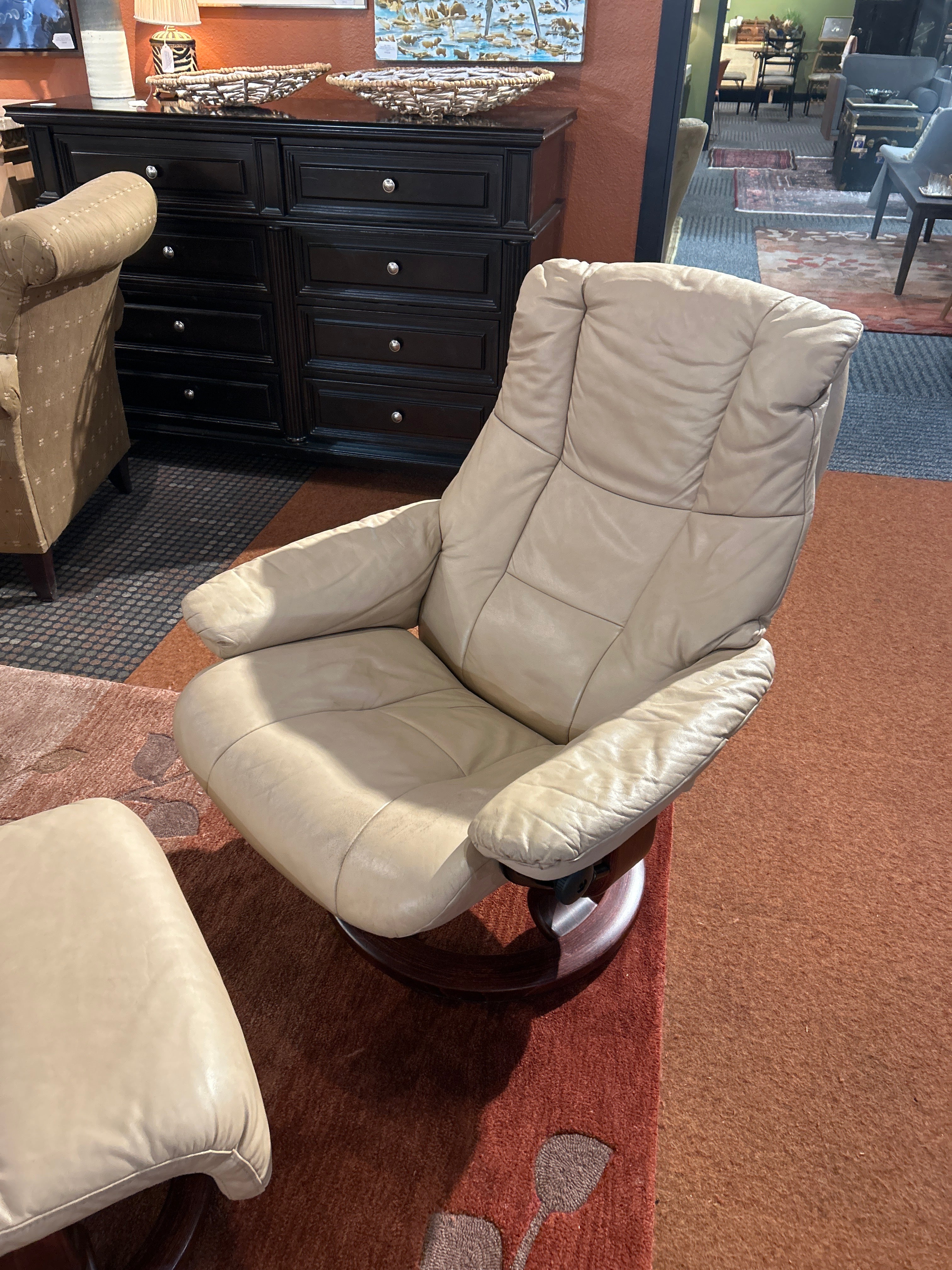 AS-IS Ekornes Stressless® Tan Leather Recliner & Ottoman 30" W x 24" D x 39" H