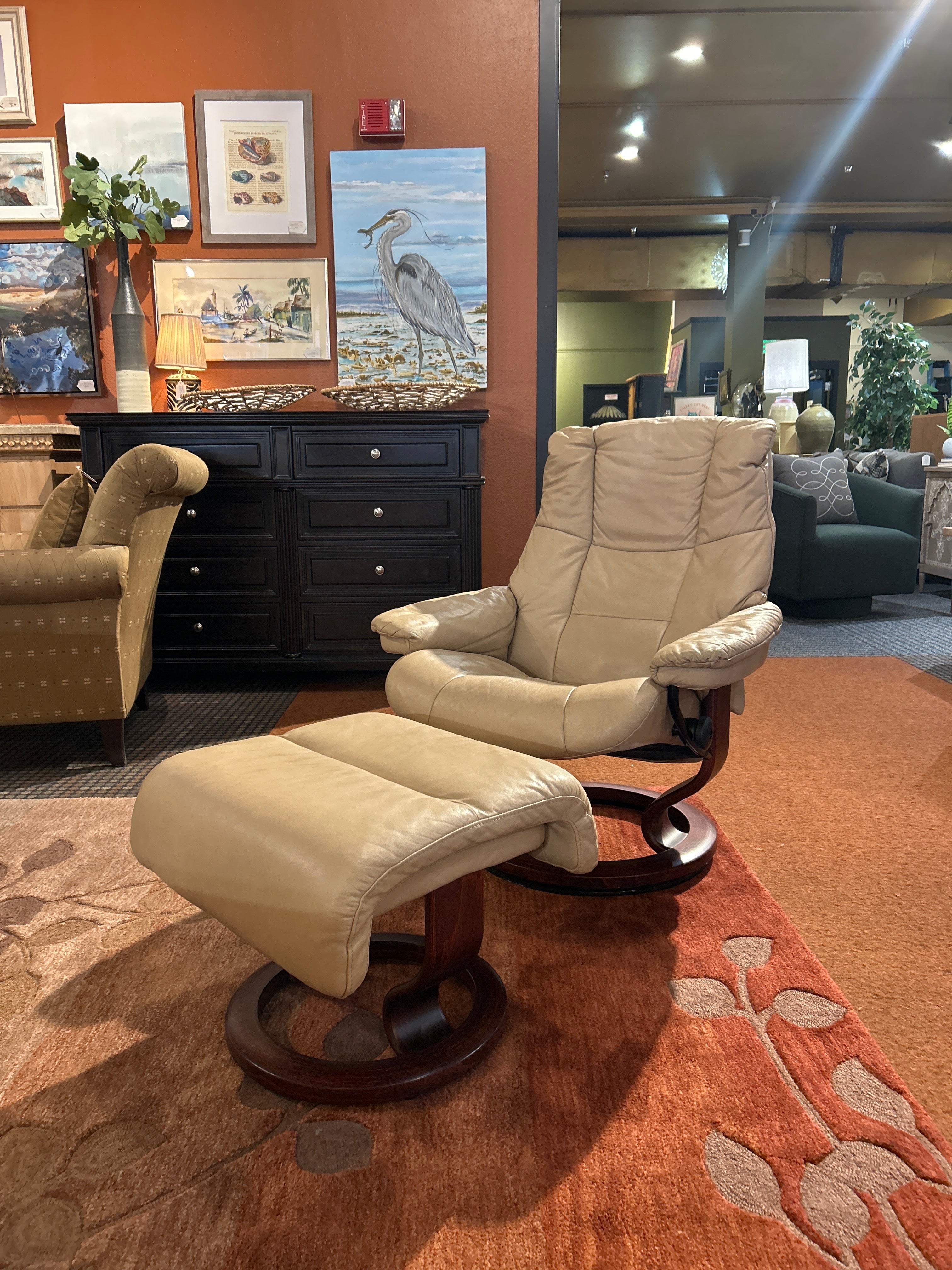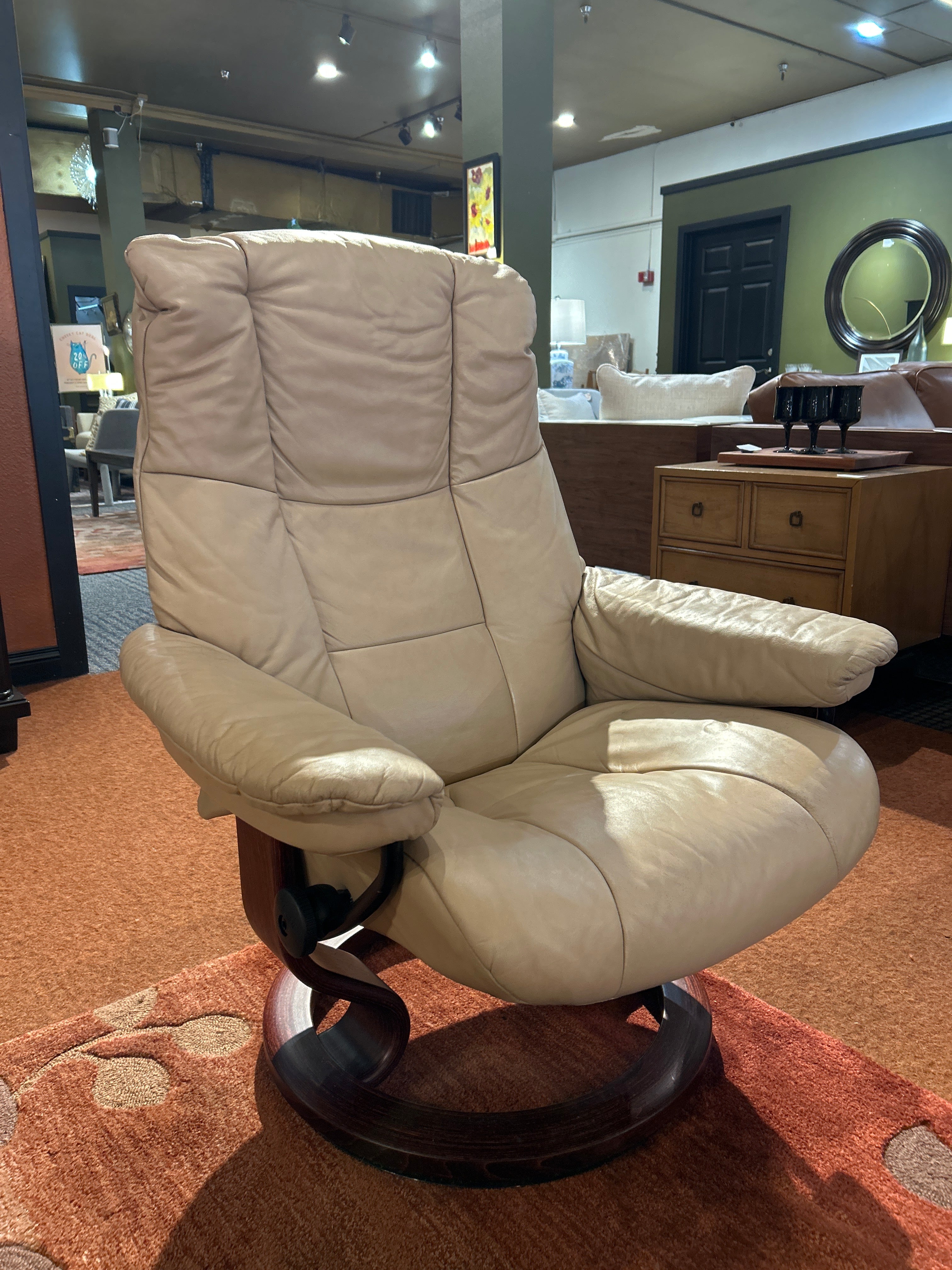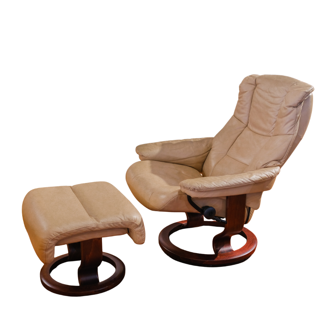 AS-IS Ekornes Stressless® Tan Leather Recliner & Ottoman 30" W x 24" D x 39" H