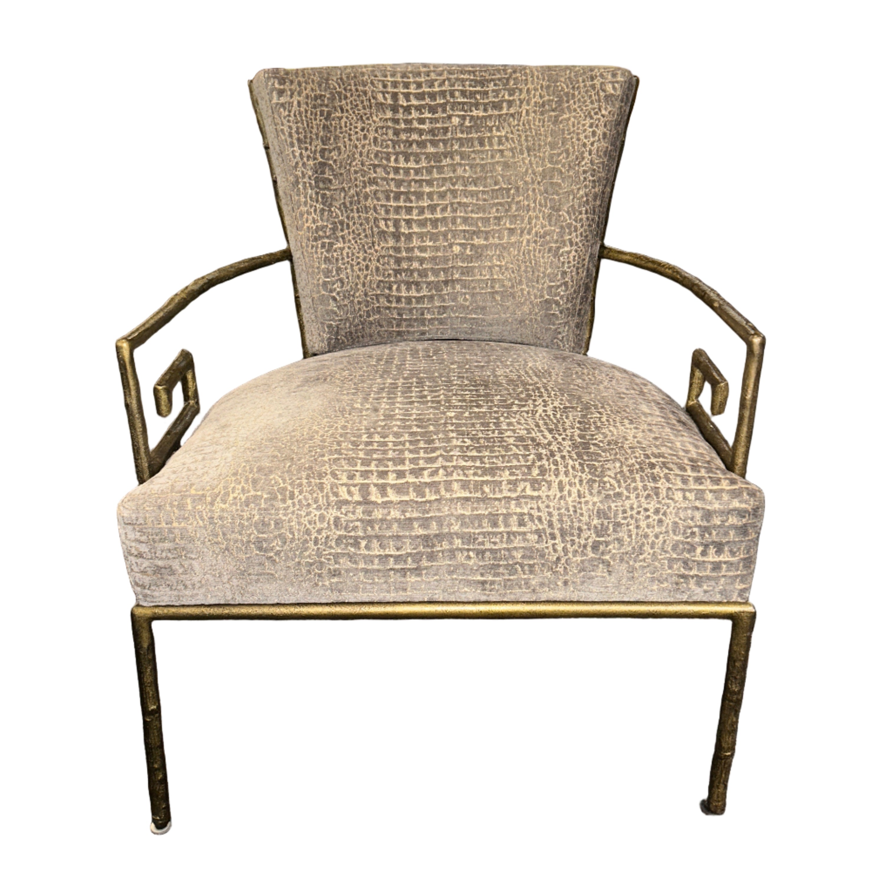 Tan Greek Key Lounge Chair Croc Print 27” L x 21” W x 33” H