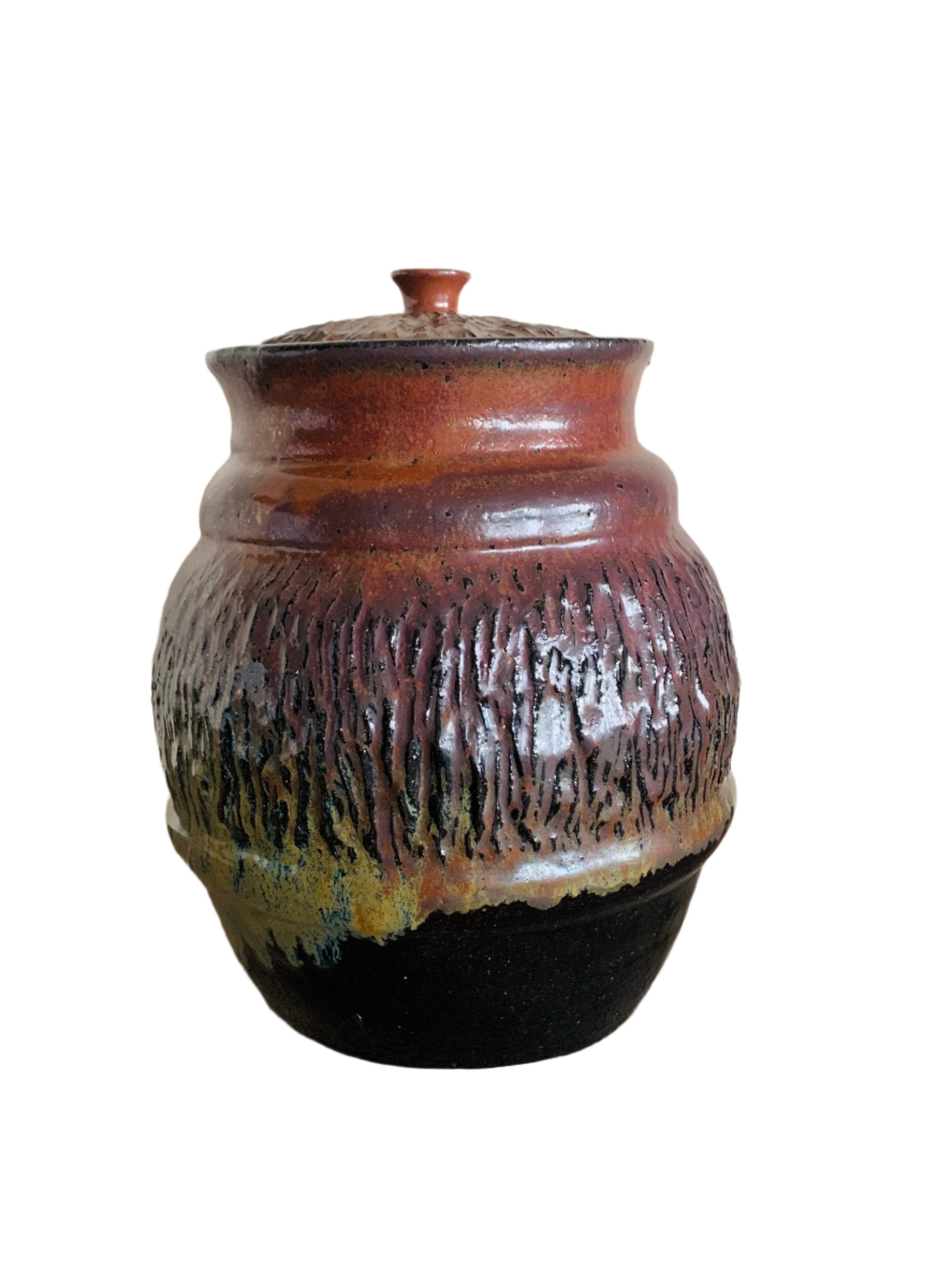 Burgundy Bitossi Style Lidded Jar 11" x 9"