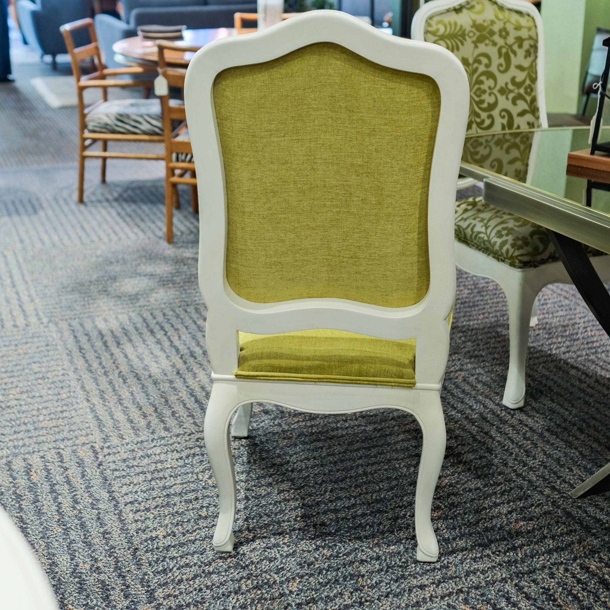 (Set of 6) Handmade White Oak & Green Fabric French Louis Dining Chairs 22” W x 21” D x 45” H