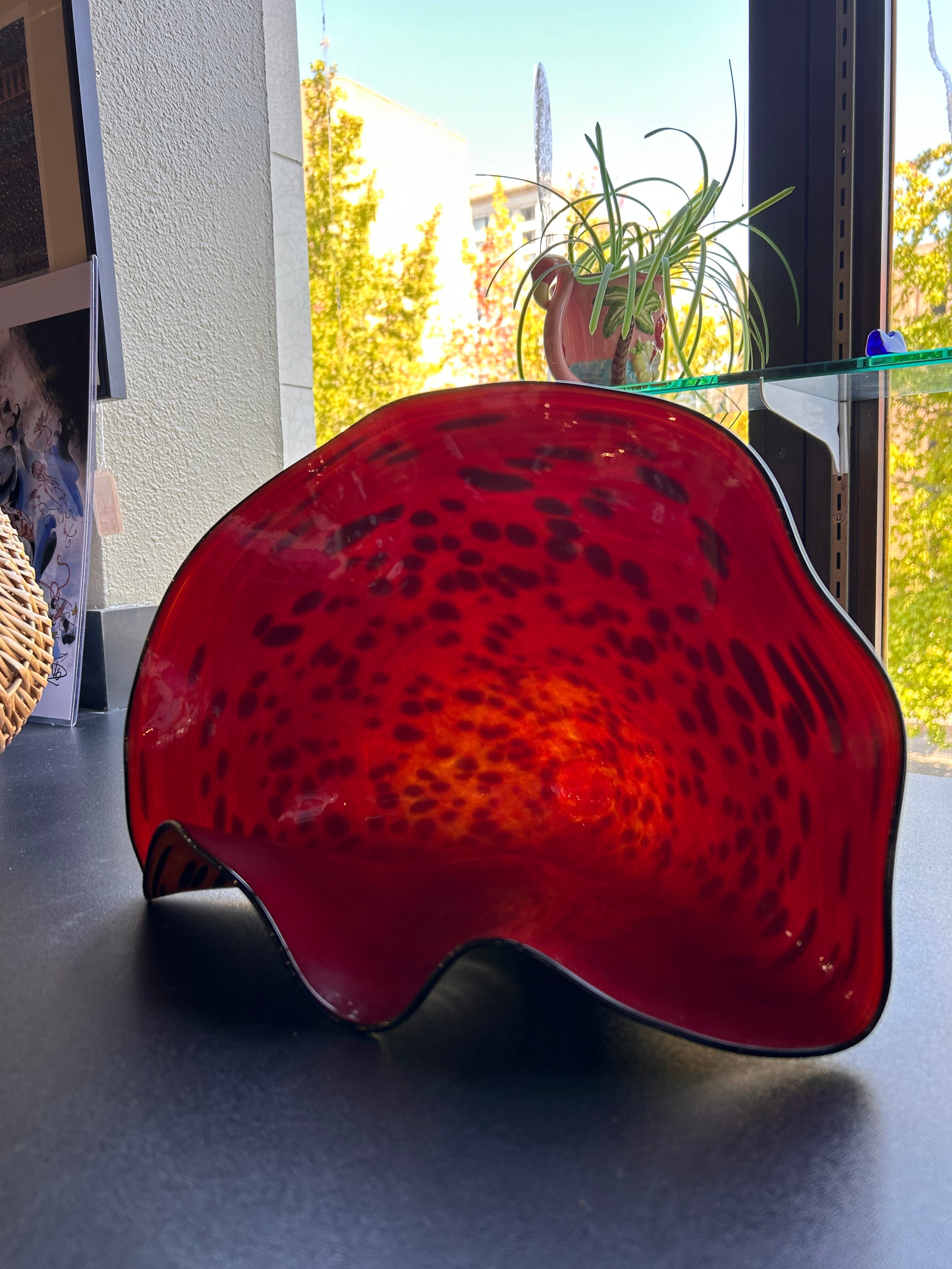 Italian Glass 1950s Guava Bowl 13.5" x 9"