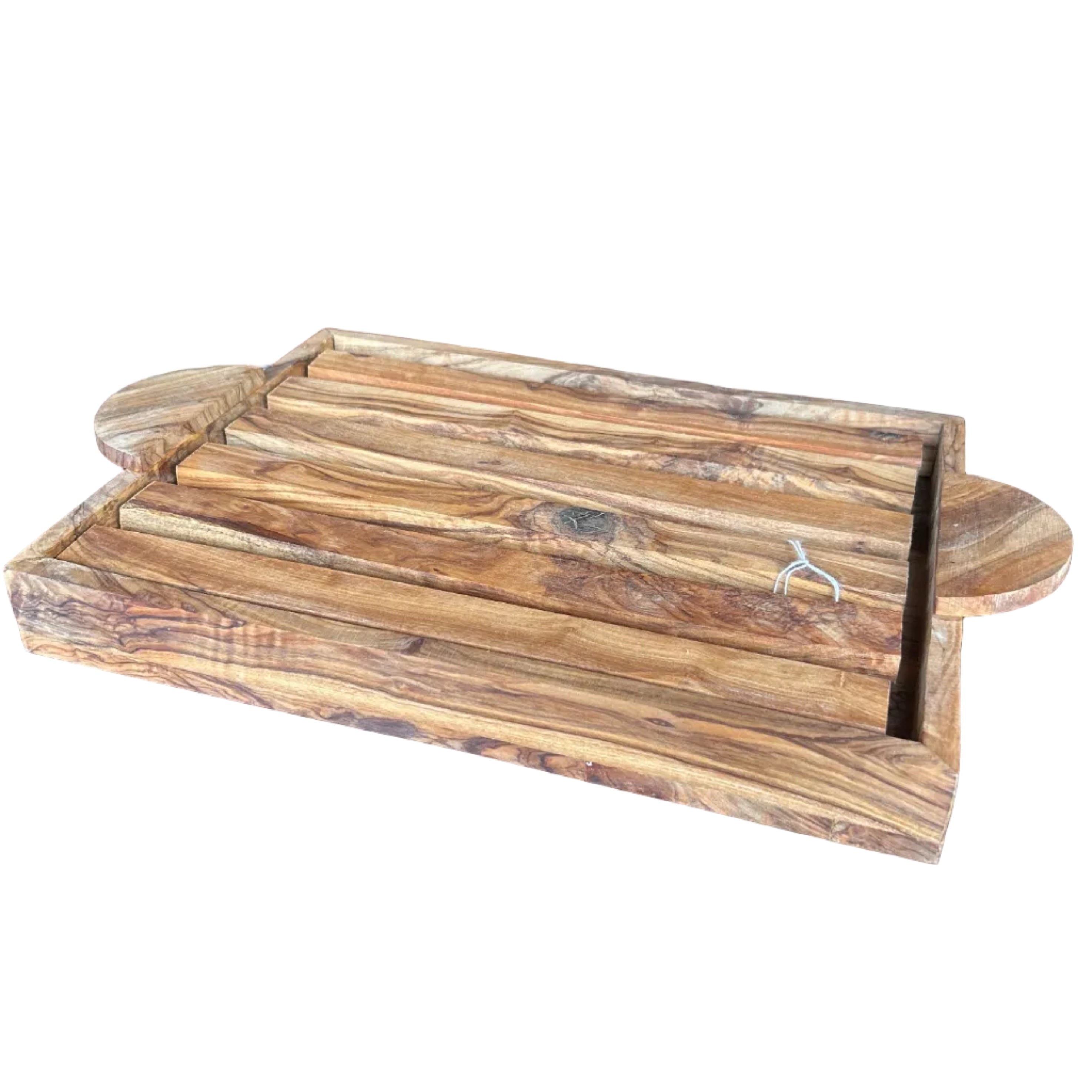Elegant Solid Teak Wood Serving Tray With Rack 17" x 11" x 2"