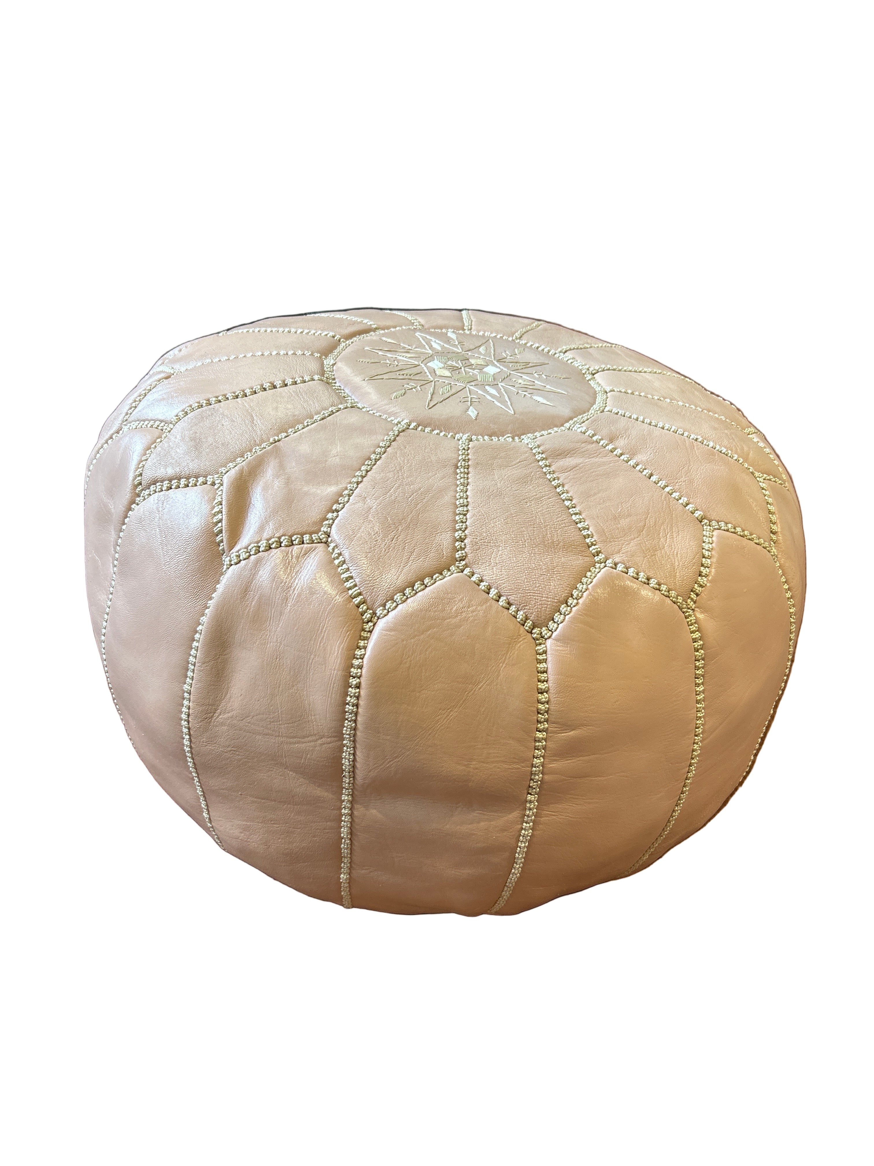 Moroccan Pale Pink Leather Pouf/ Ottoman 22"L x 22"W x 12"H