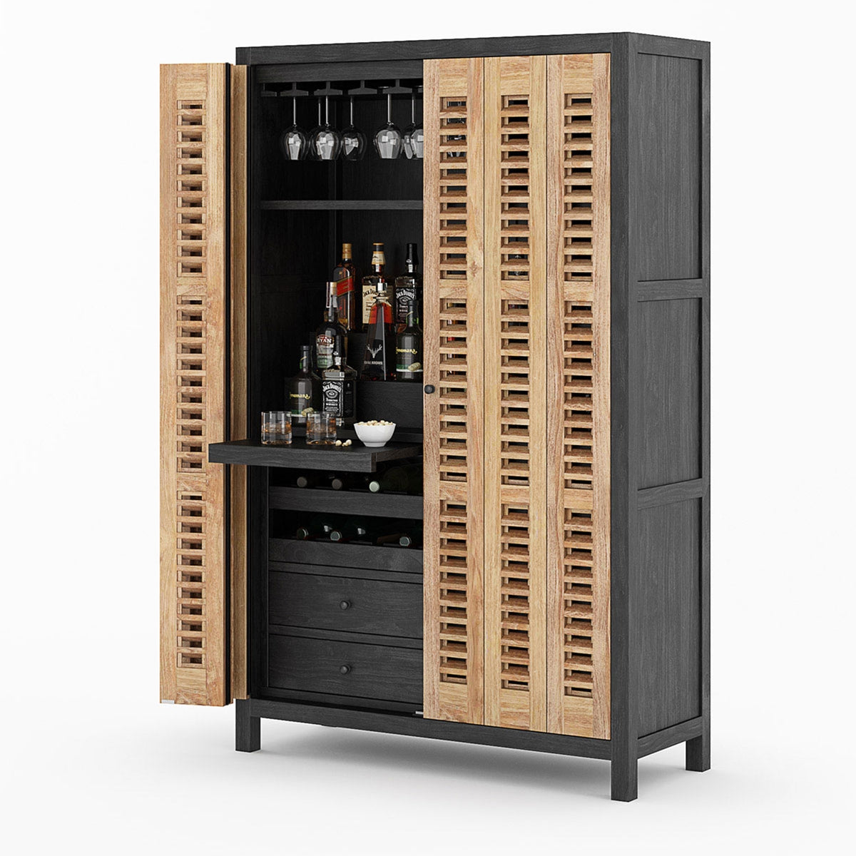 Sierra Living Concepts Belluno Rustic Solid Wood Tall Bar and Wine Cabinet 49" L X 19" D X 78" H