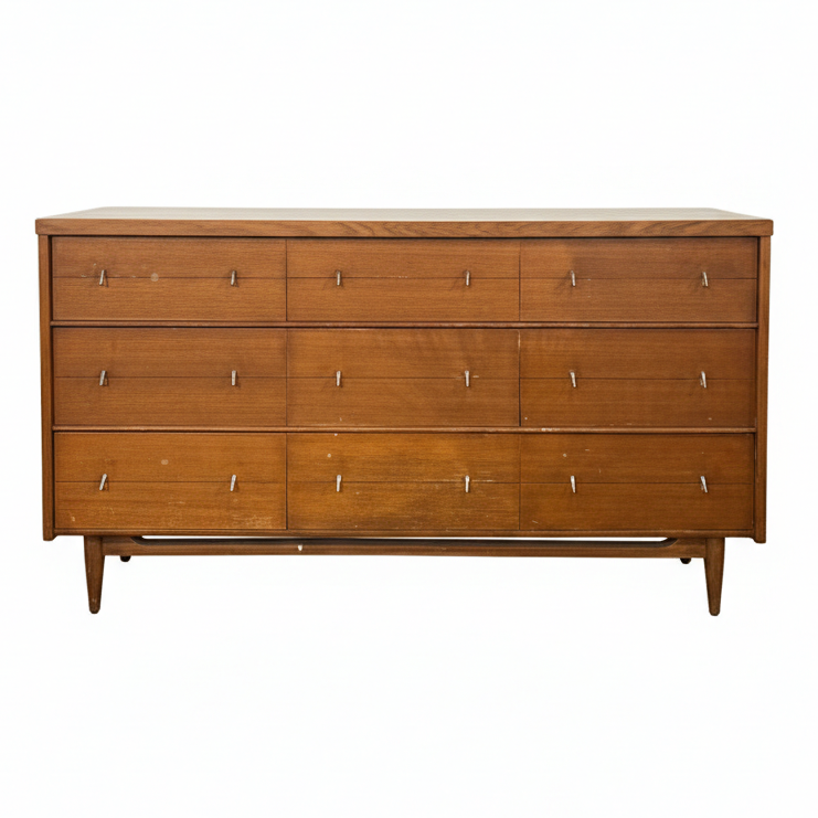 Lane Mid-Century Modern Walnut Wooden Dresser 38" W x 18" D x 44" H