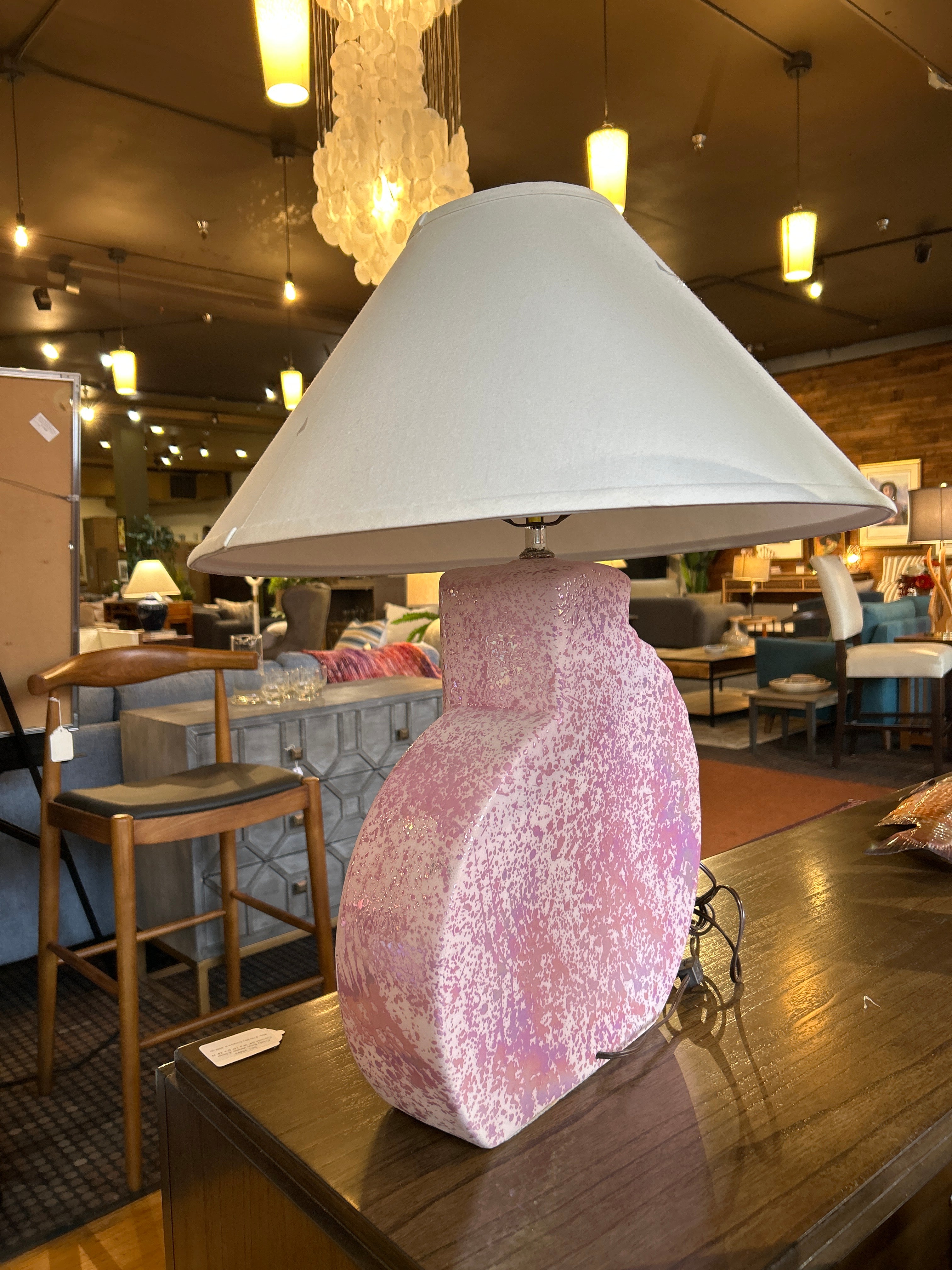 New Pale Pink Glass Lamp With Clear Acrylic Base 14"W x 29"H