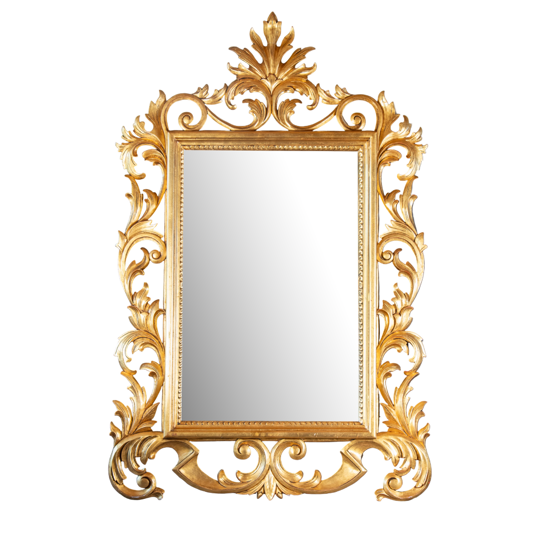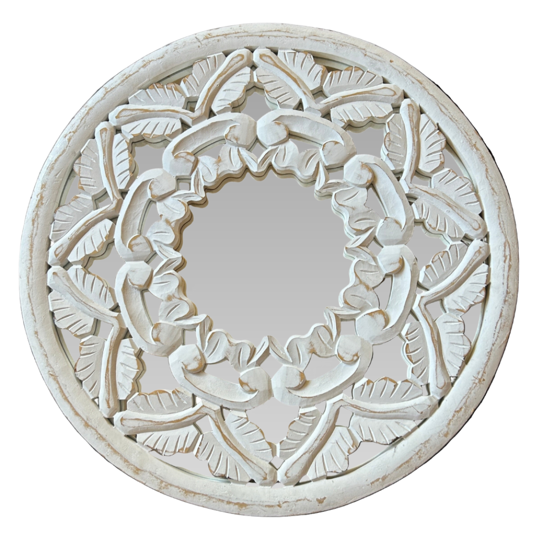 White Leaf & Scroll Design Carved Mirror 24"