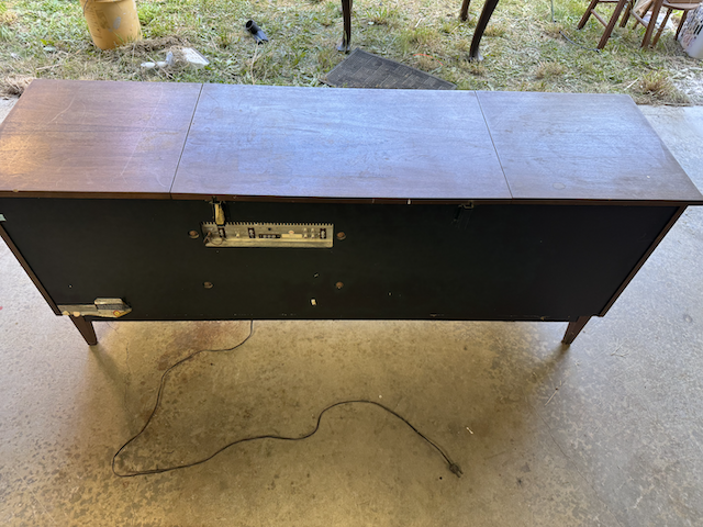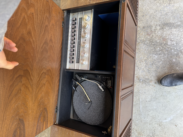 AS-IS Elegant Walnut Music Table with Vinyl Player & Electronics 18"L x 66"W x 27" H