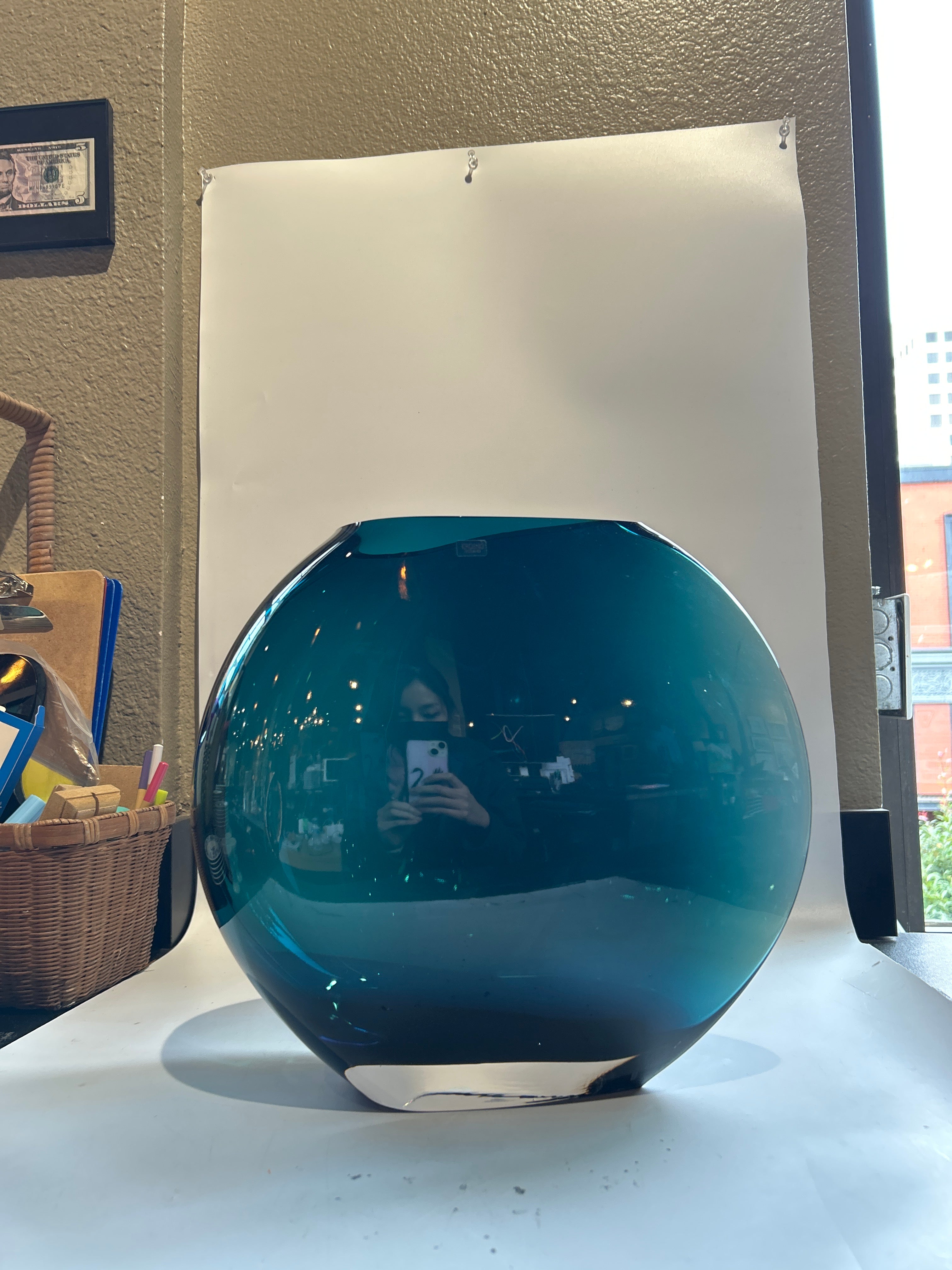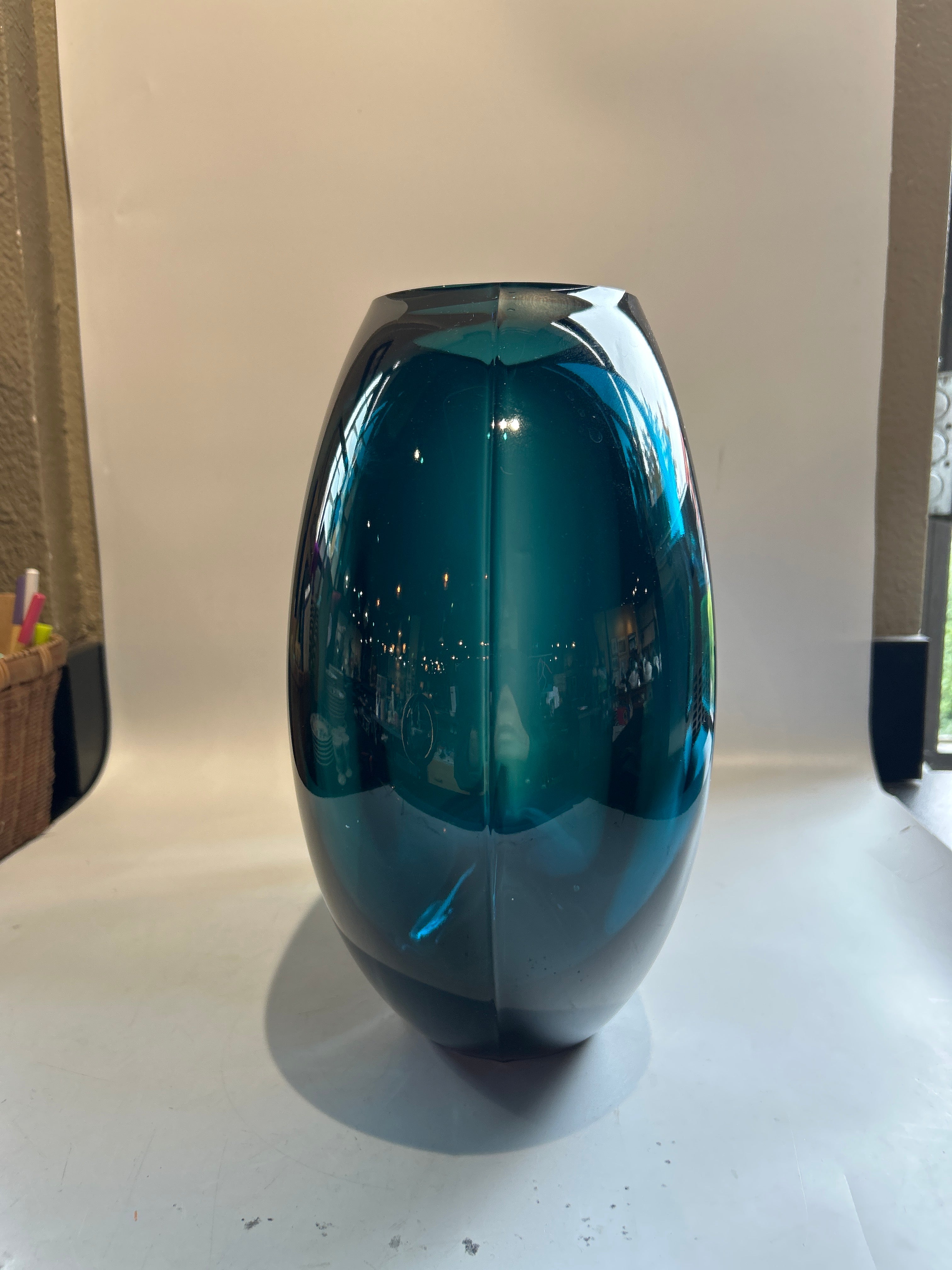 Crate and Barrel Pintura Blue Vase 7.75"L x 7.75"W x 13.5"H
