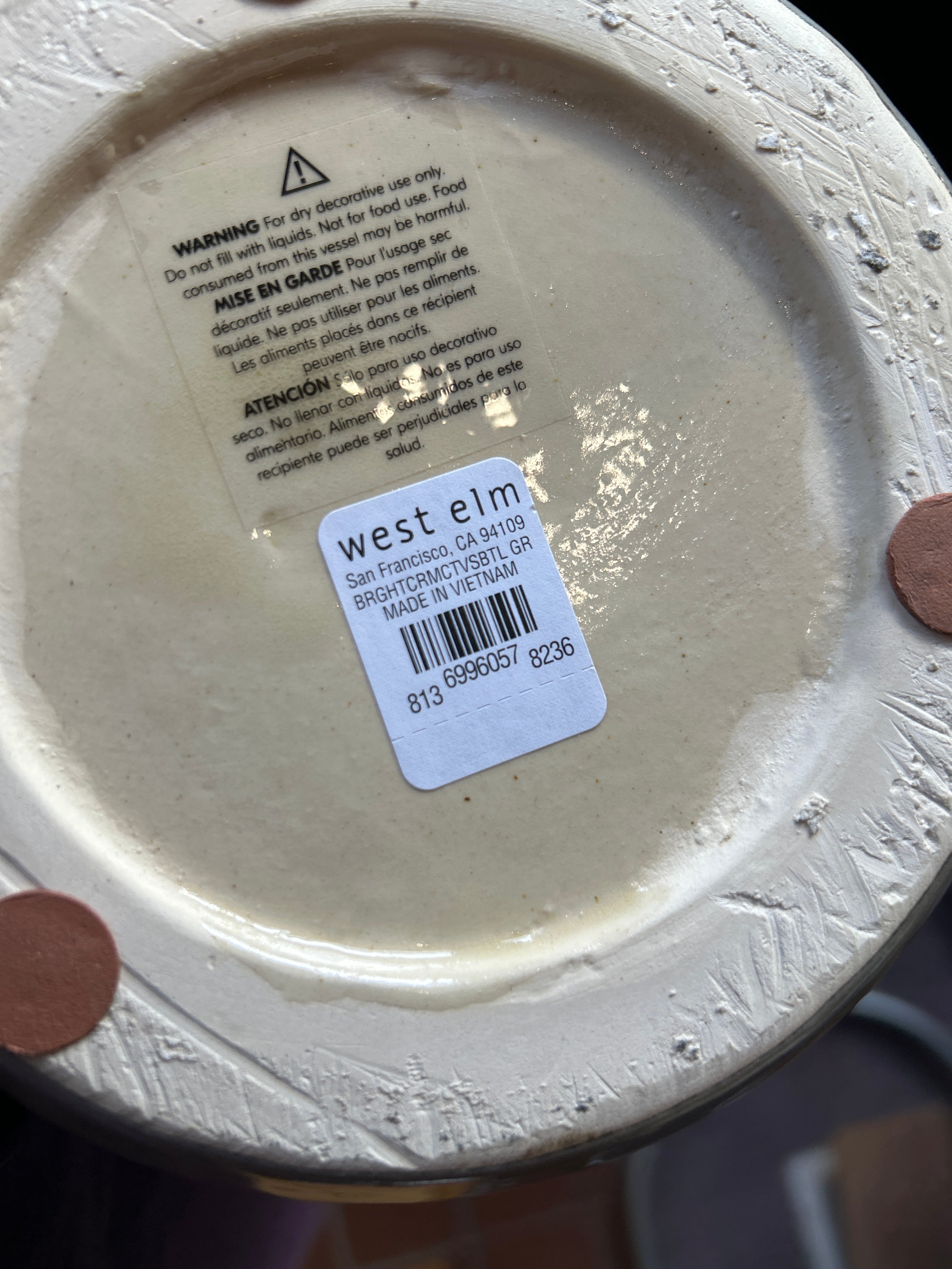 West Elm Cream Vase 19”H