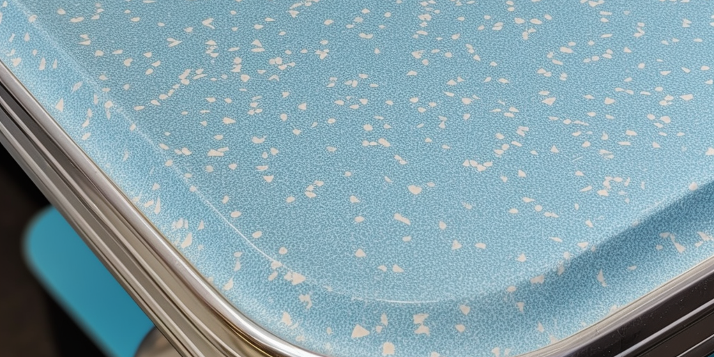 Formica is a laminate material widely used in retro kitchen countertops and furniture. It's durable, heat-resistant, and available in an array of bold colors and decorative patterns.