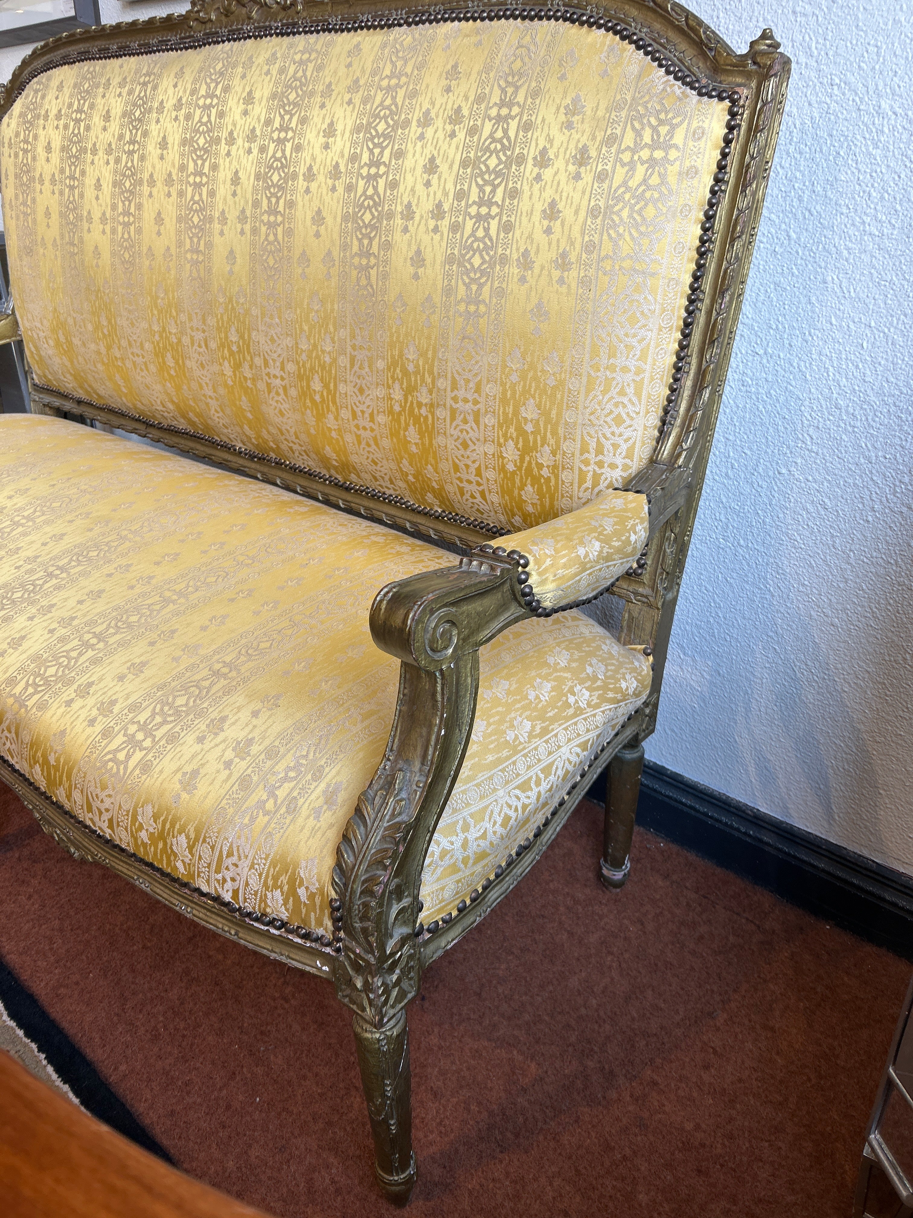 Louis XVI French Yellow Settee 63" L x 22" W x 40" H