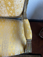 Upholstered in a cheerful sunny yellow and white striped fabric, the design is both lively and sophisticated, striking a perfect balance between formal and fresh. The bright palette enhances the ornate gilded frame, creating a statement piece that brightens any room while honoring centuries-old French design.