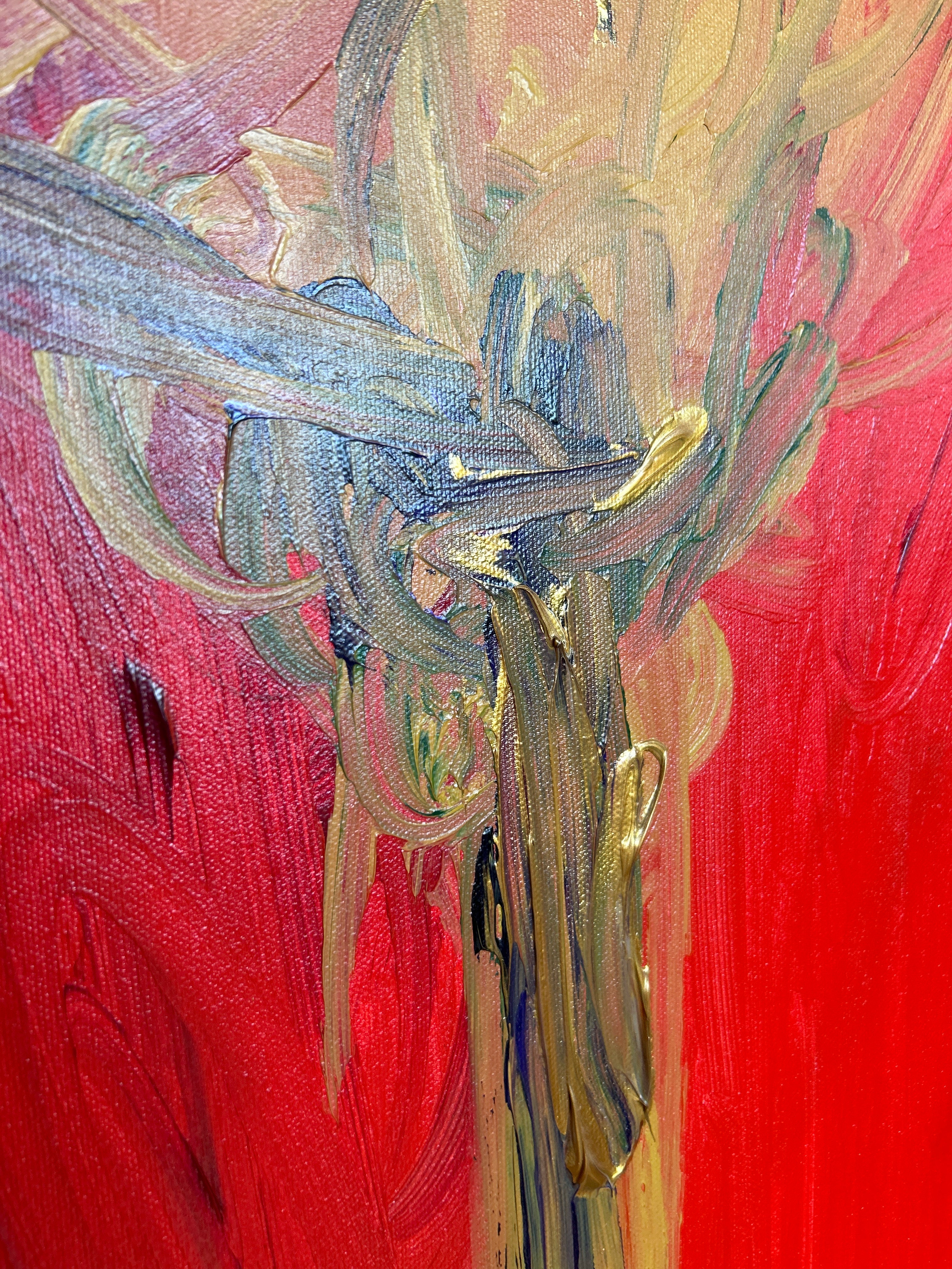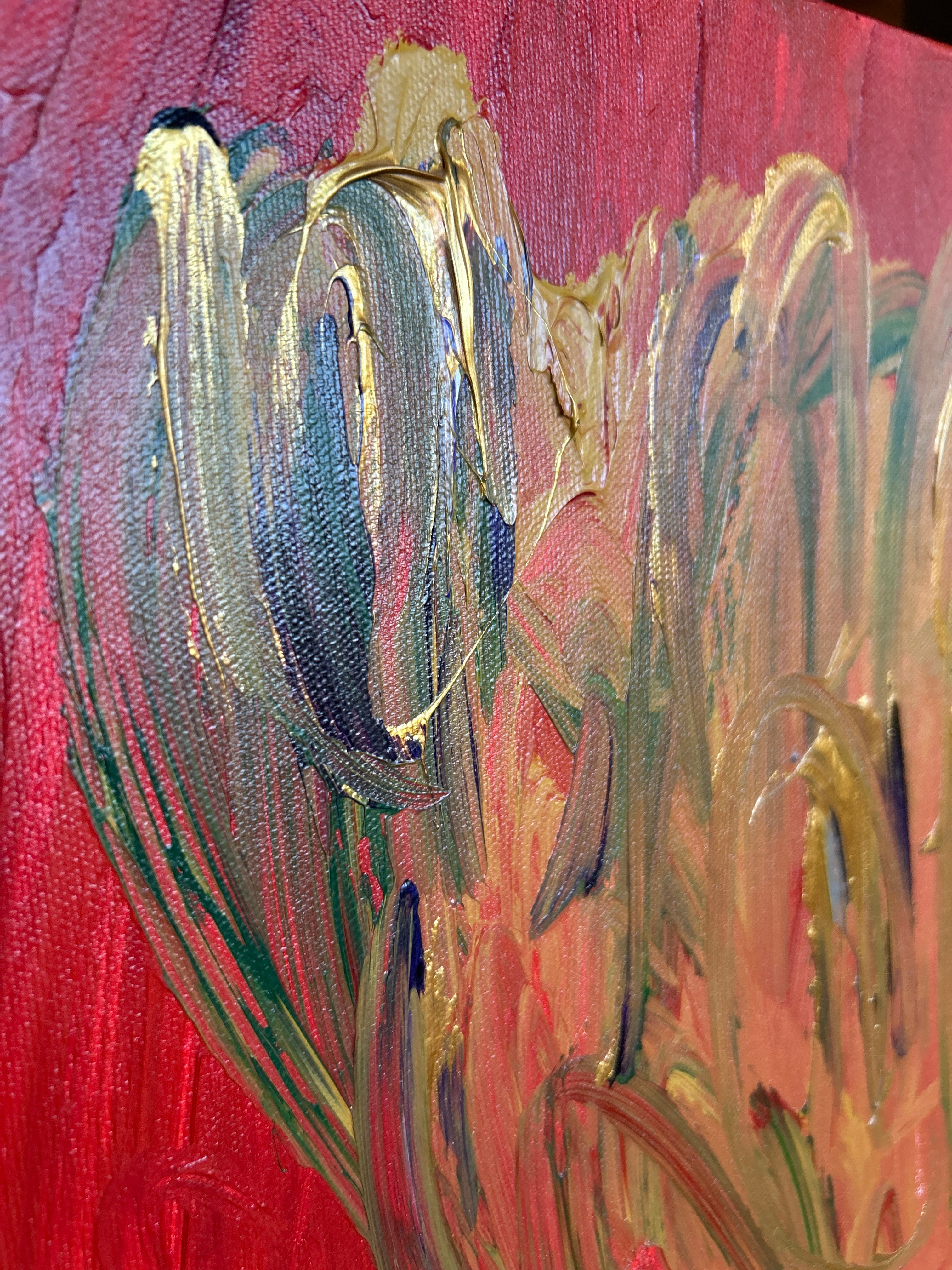 Original Red and Gold Tulip Painting by Warren Knapp 11.5"L x 24"W x 48"H