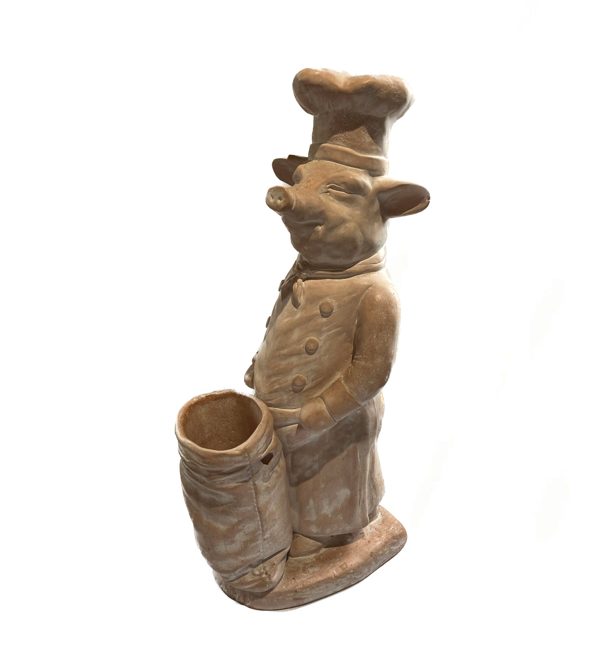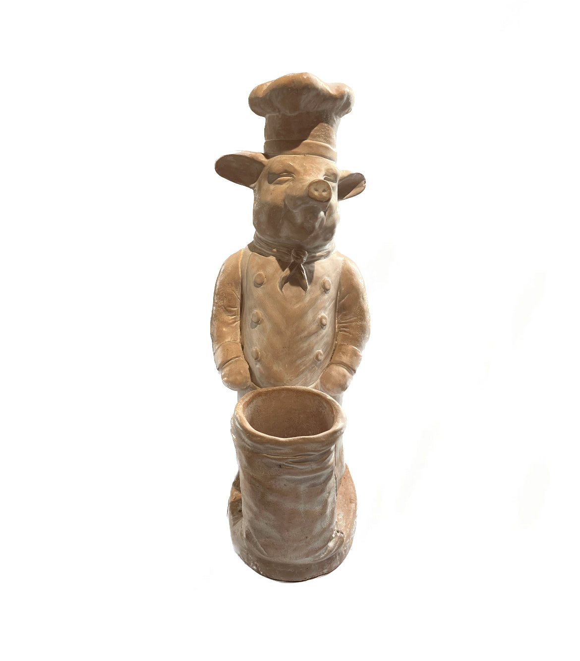 20" White Washed Clay Ceramic Chef Pig Sculpture