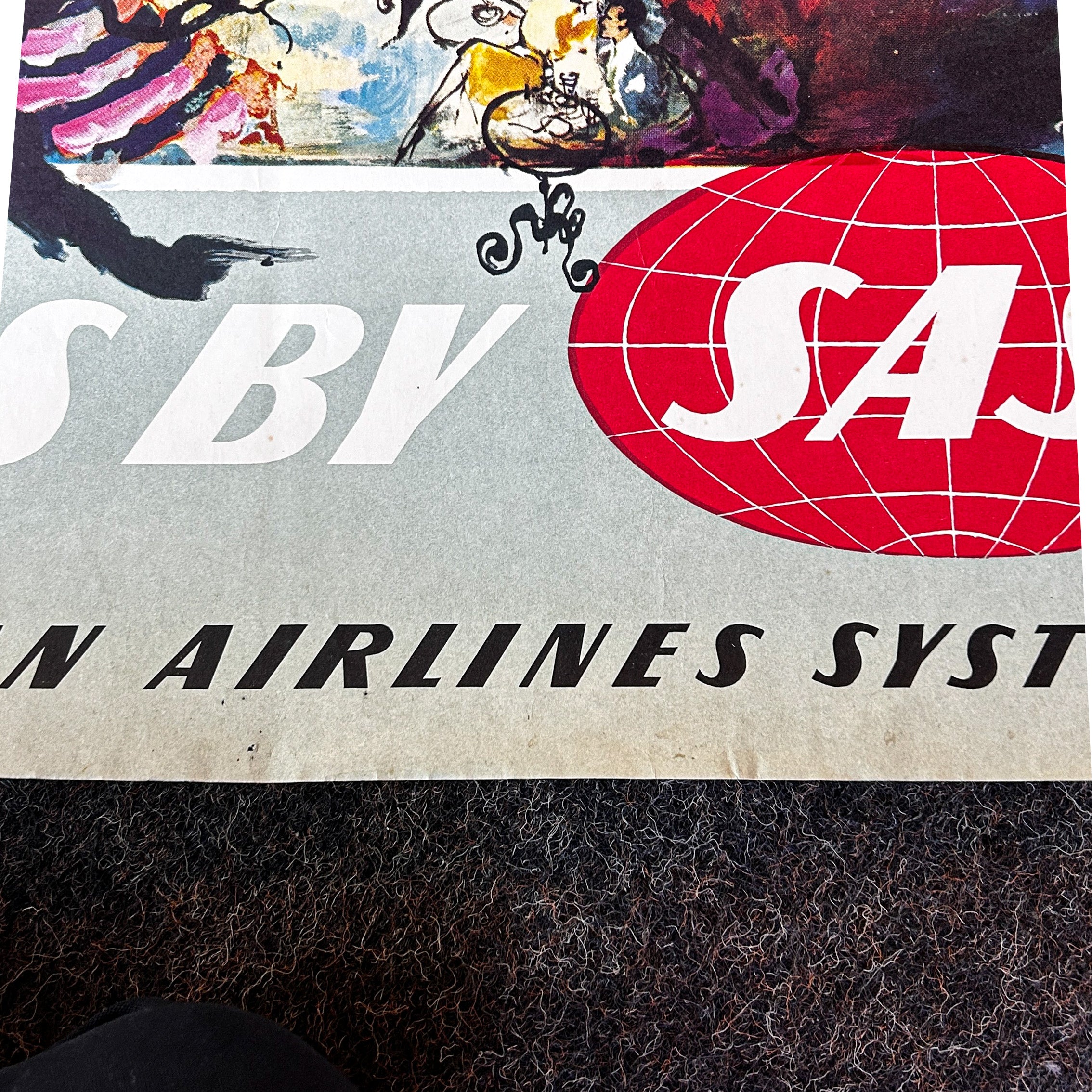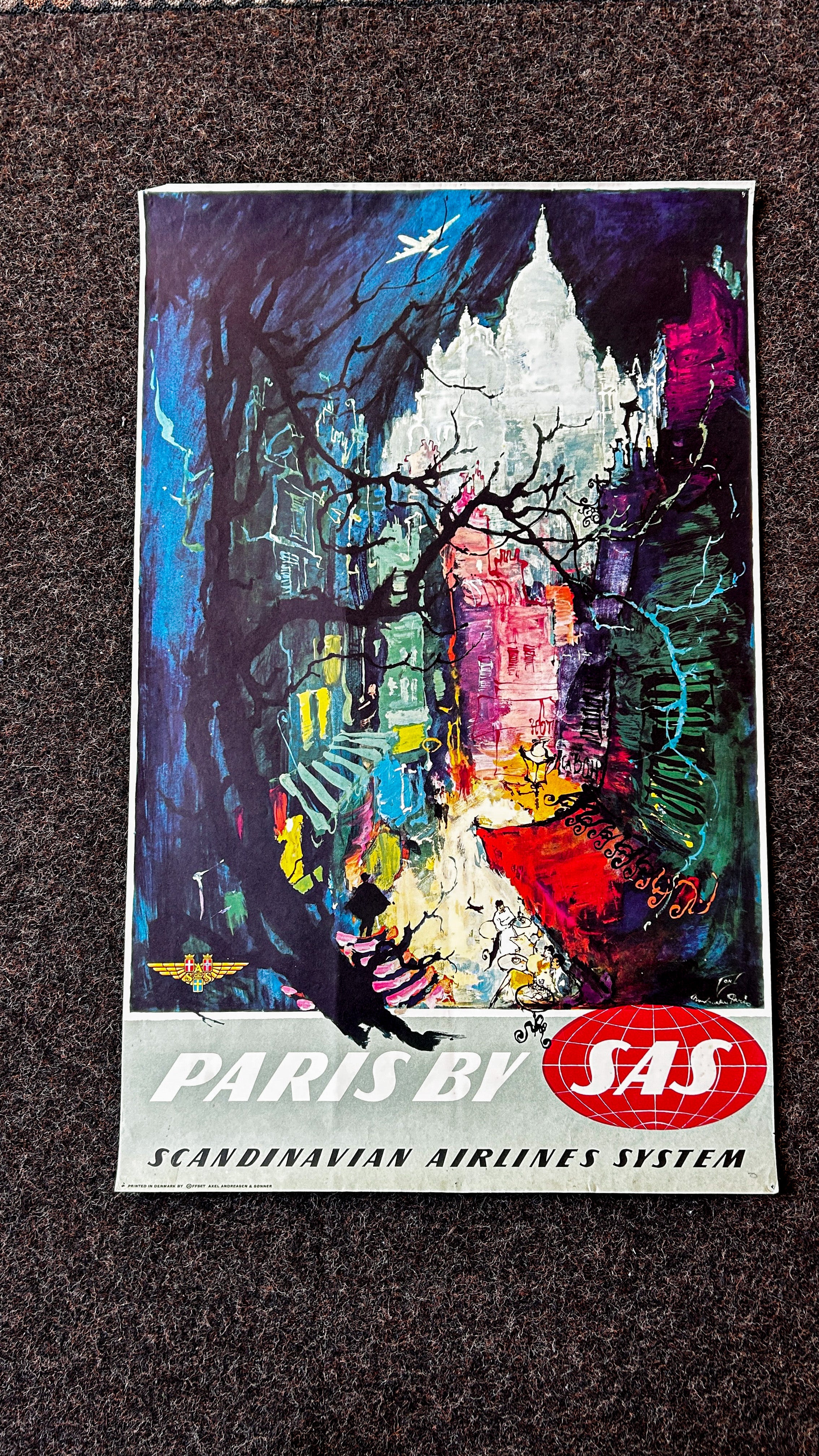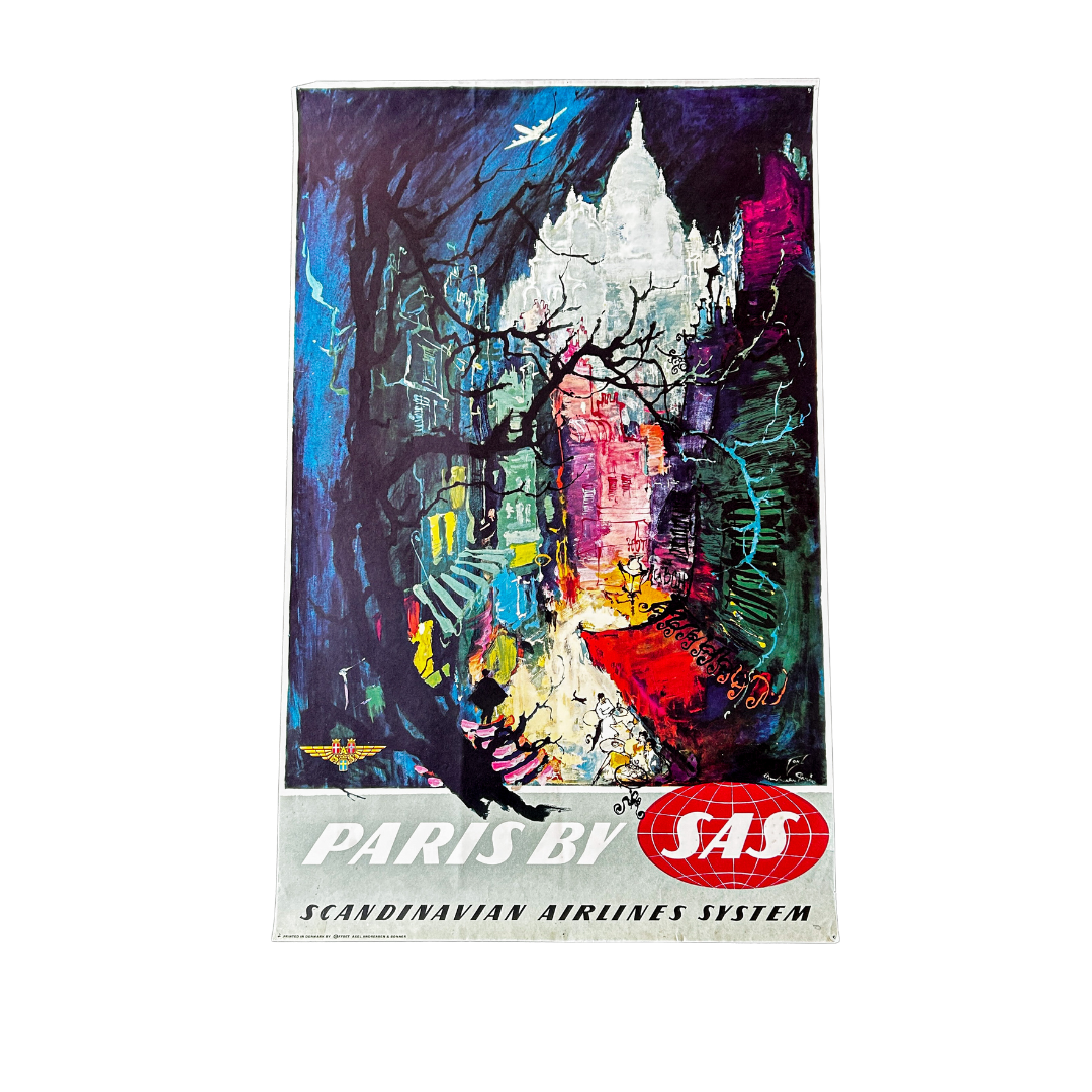 Otto Nielsen Vintage Travel Poster Paris SAS Scandinavian Airlines Montmartre France 1950s