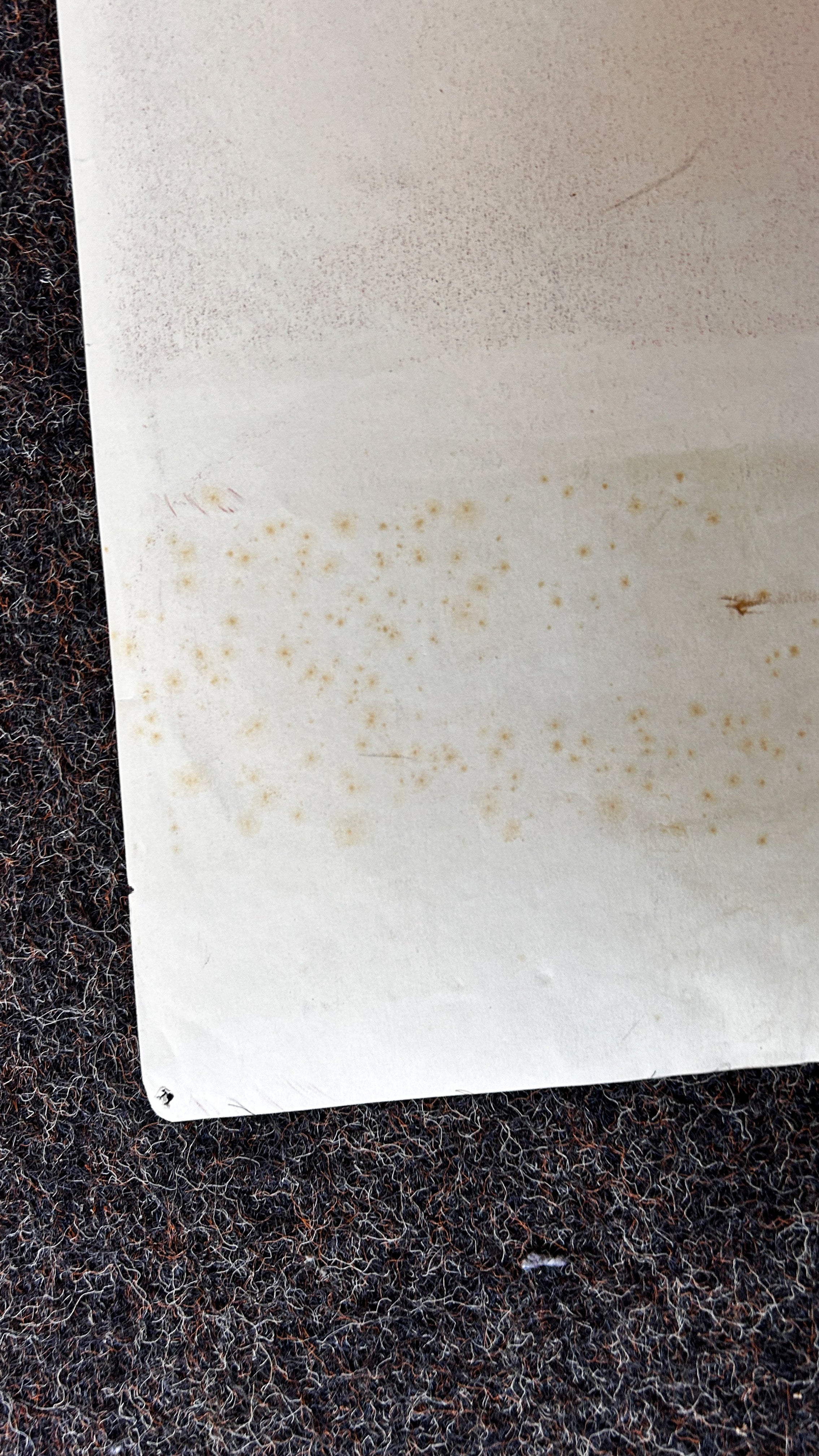 Please note that there are cosmetic imperfections, as photographed. This includes pin holes and a small tear.