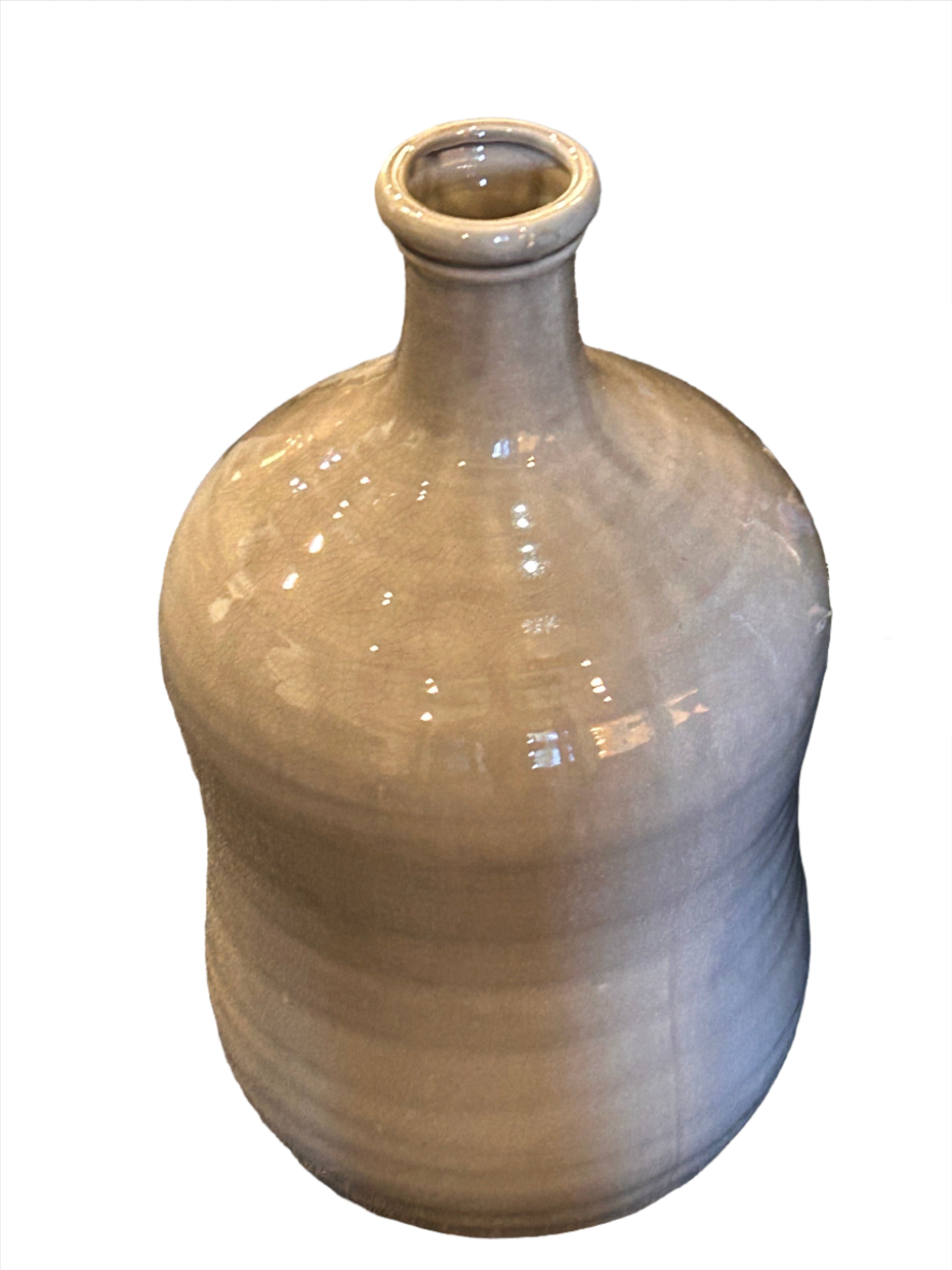 This beautiful ceramic vase adds a global vibe to your decor with a classic form and a crackled glaze finish in khaki. Display it as a standalone statement piece on the floor or tabletop, or combine it with other objects to reflect your personal style. This vase instantly elevates the style of any space.
