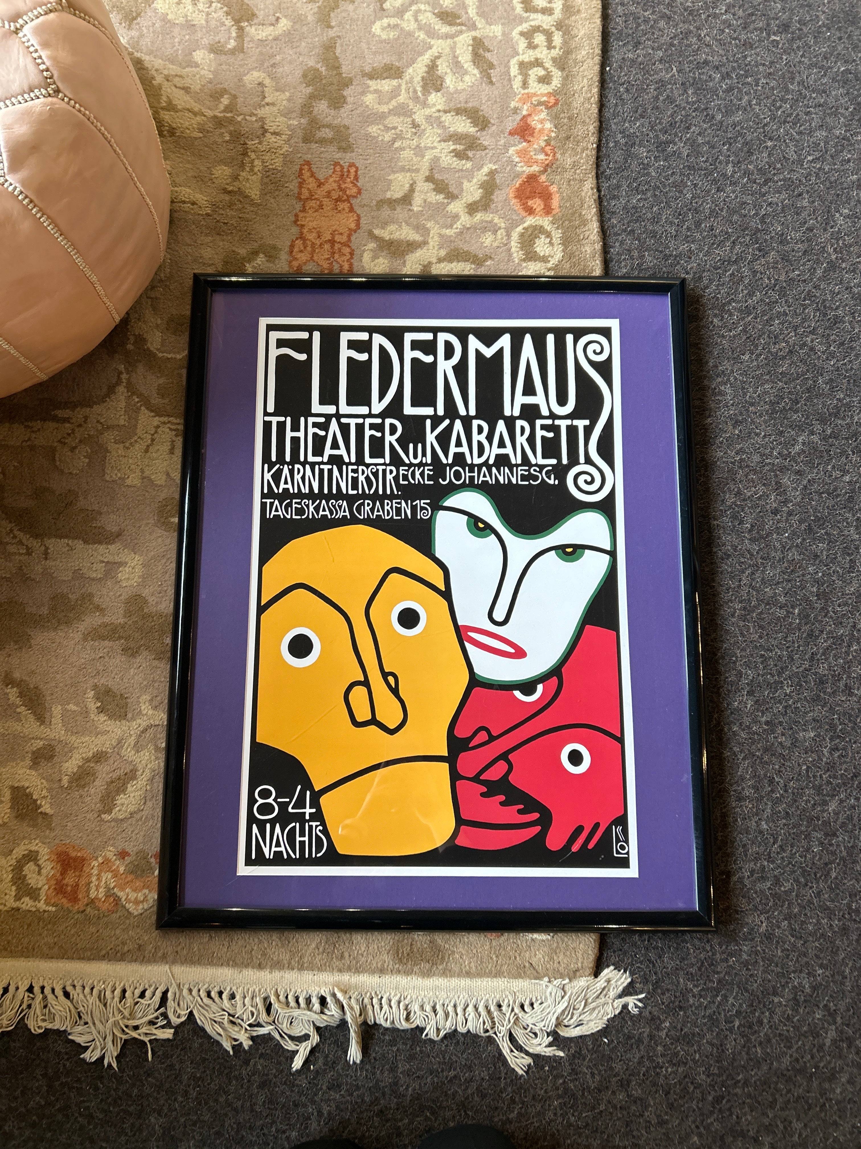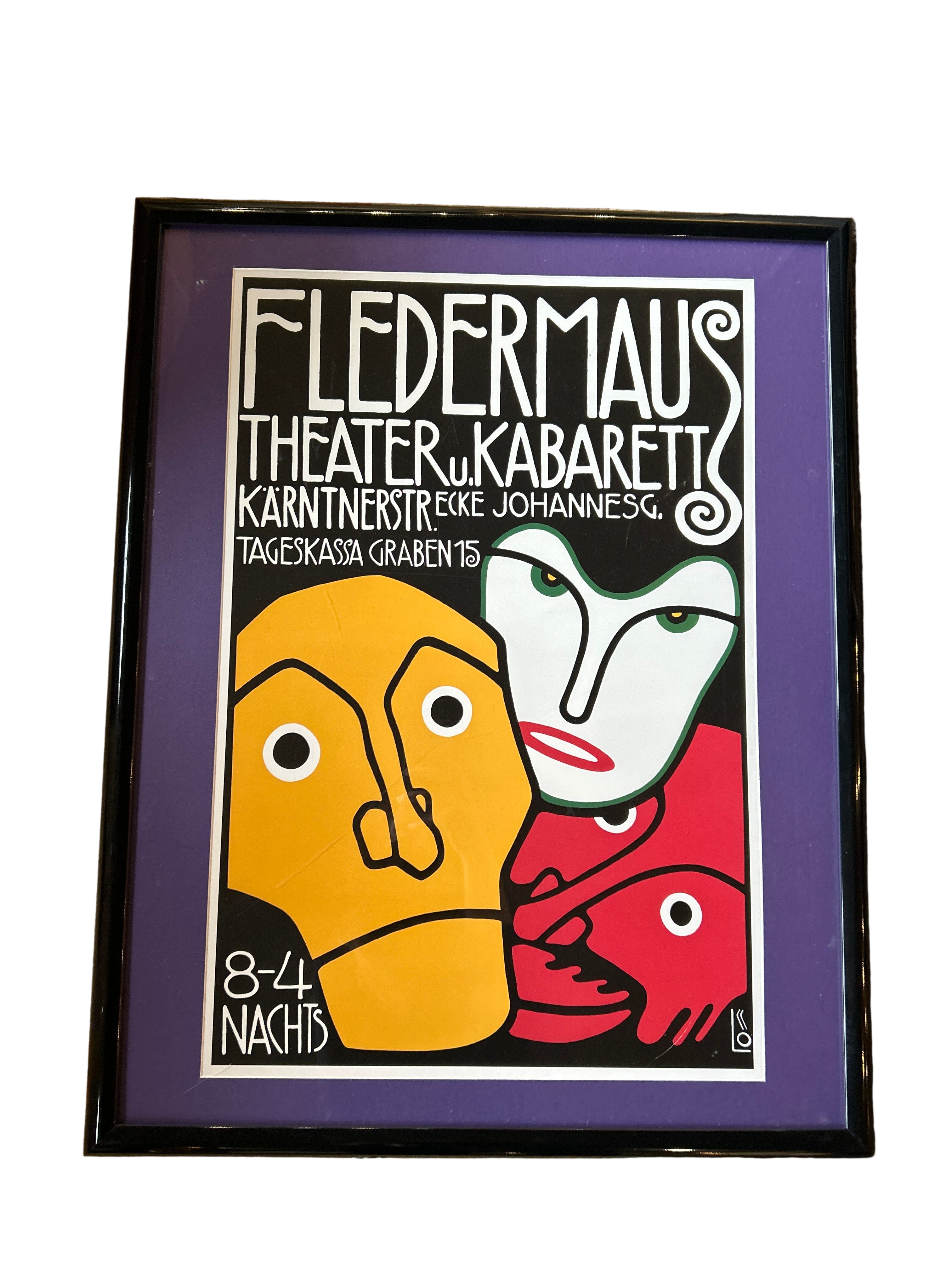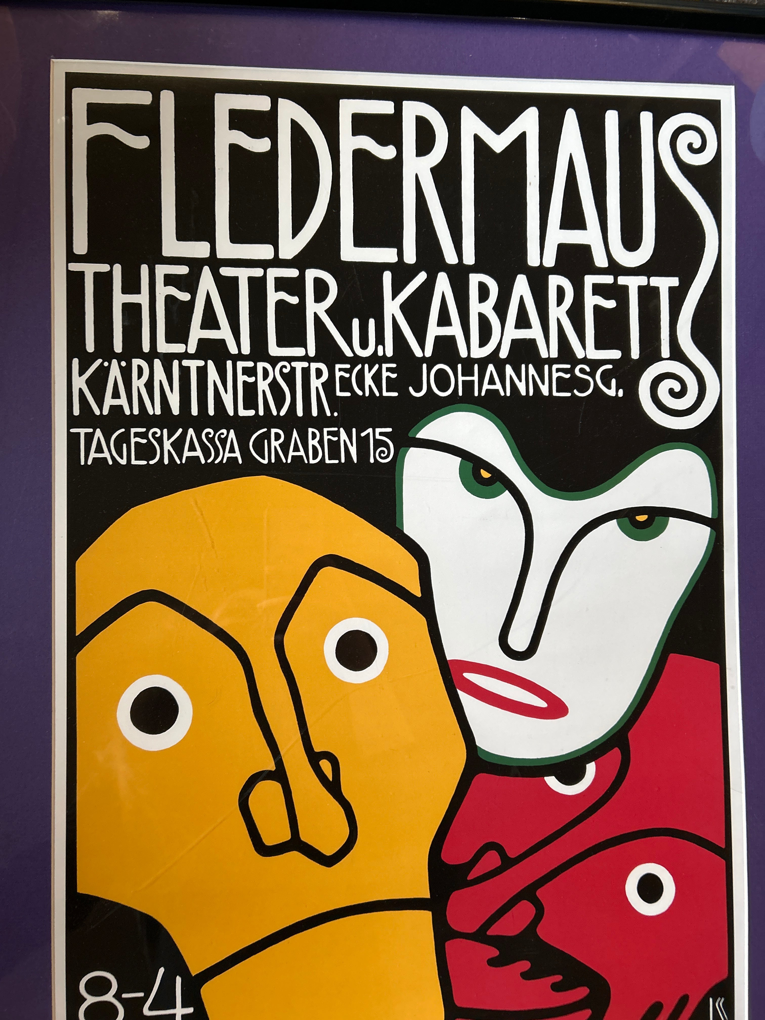 "Three Masks, Fledermaus Theater and Cabaret" Framed Poster 29"L x 23"W