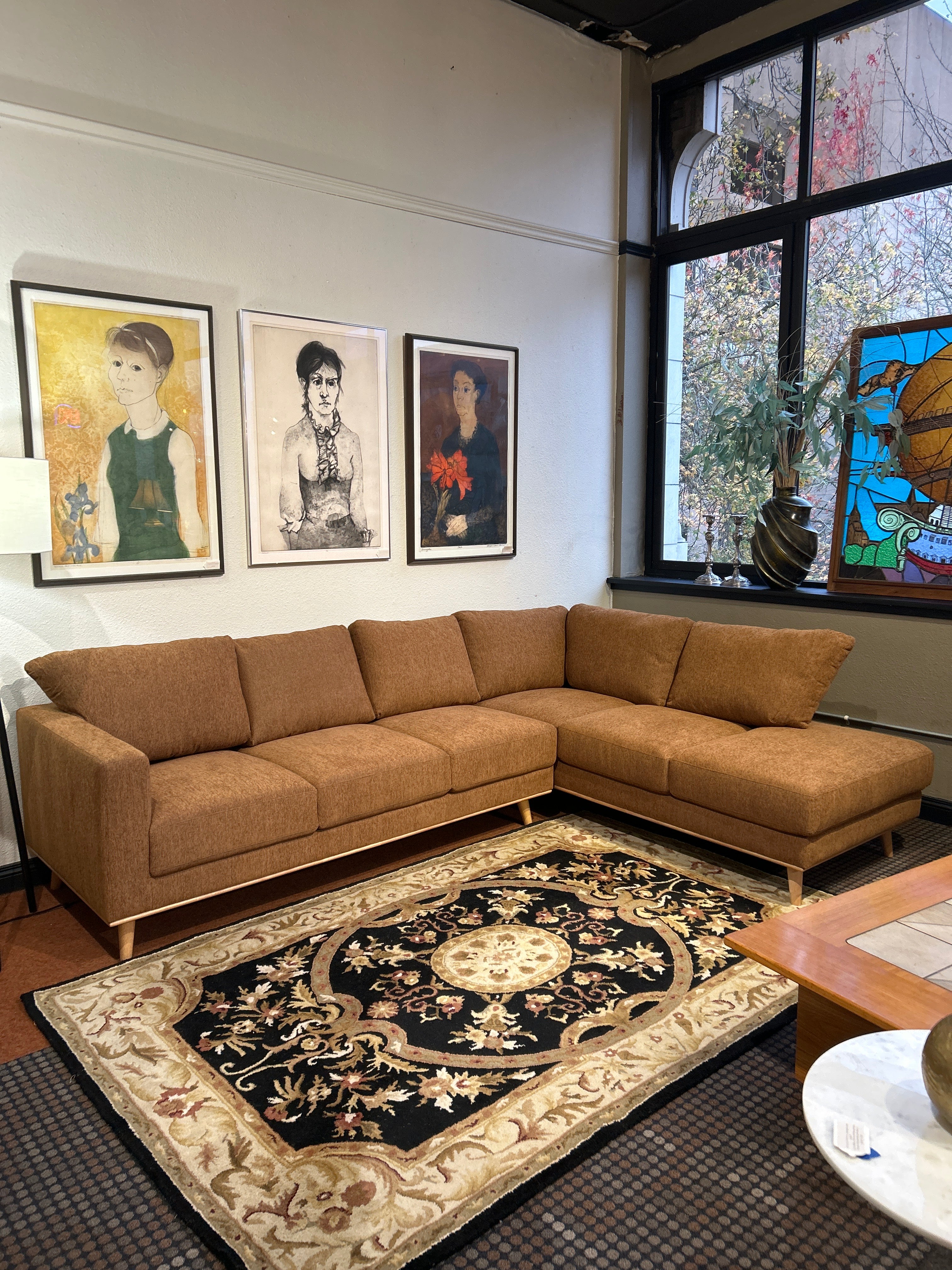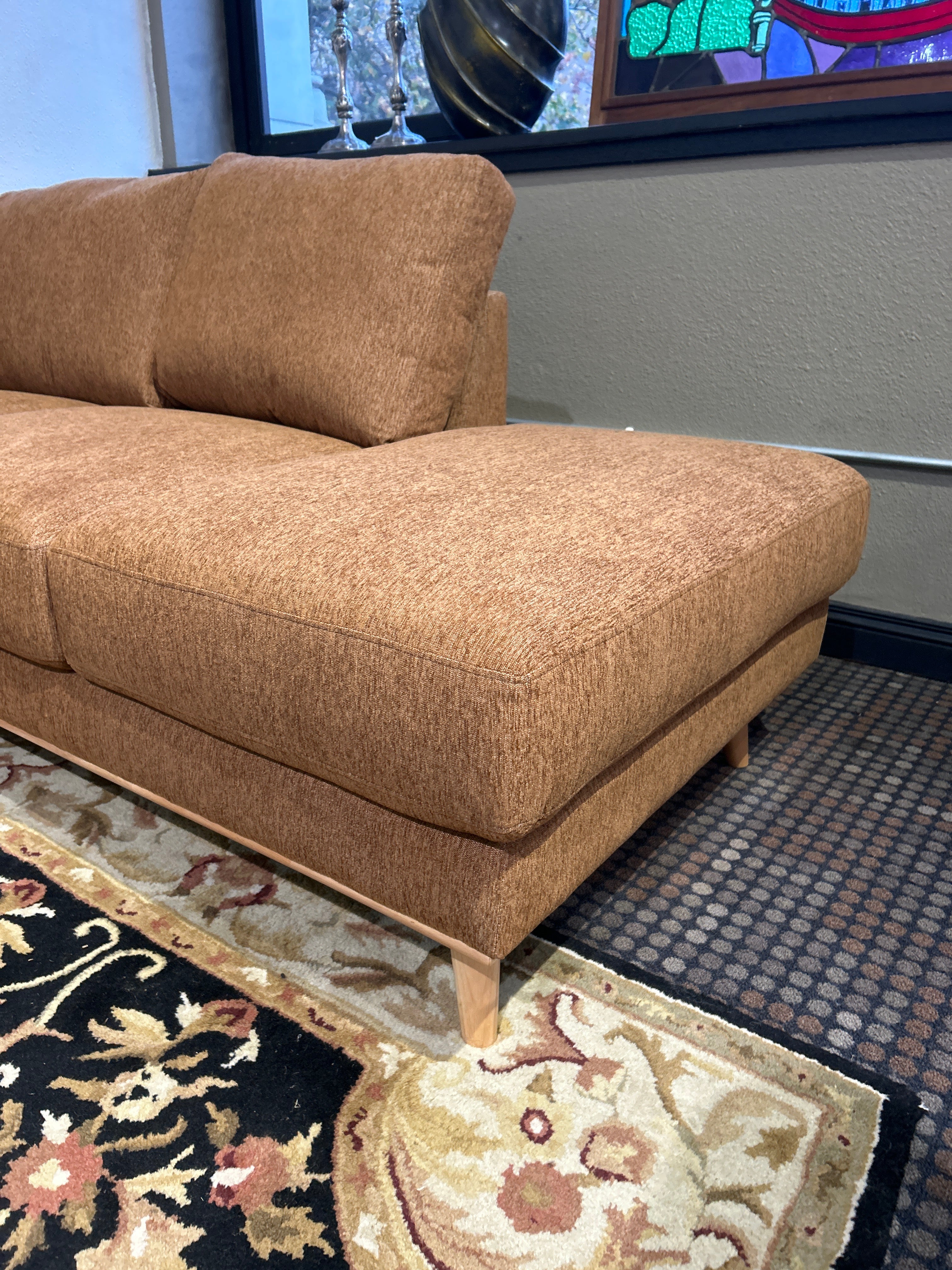 NEW Brit 60's Orange RAF Chaise Sectional 108" L X 80" D X 33.5" H
