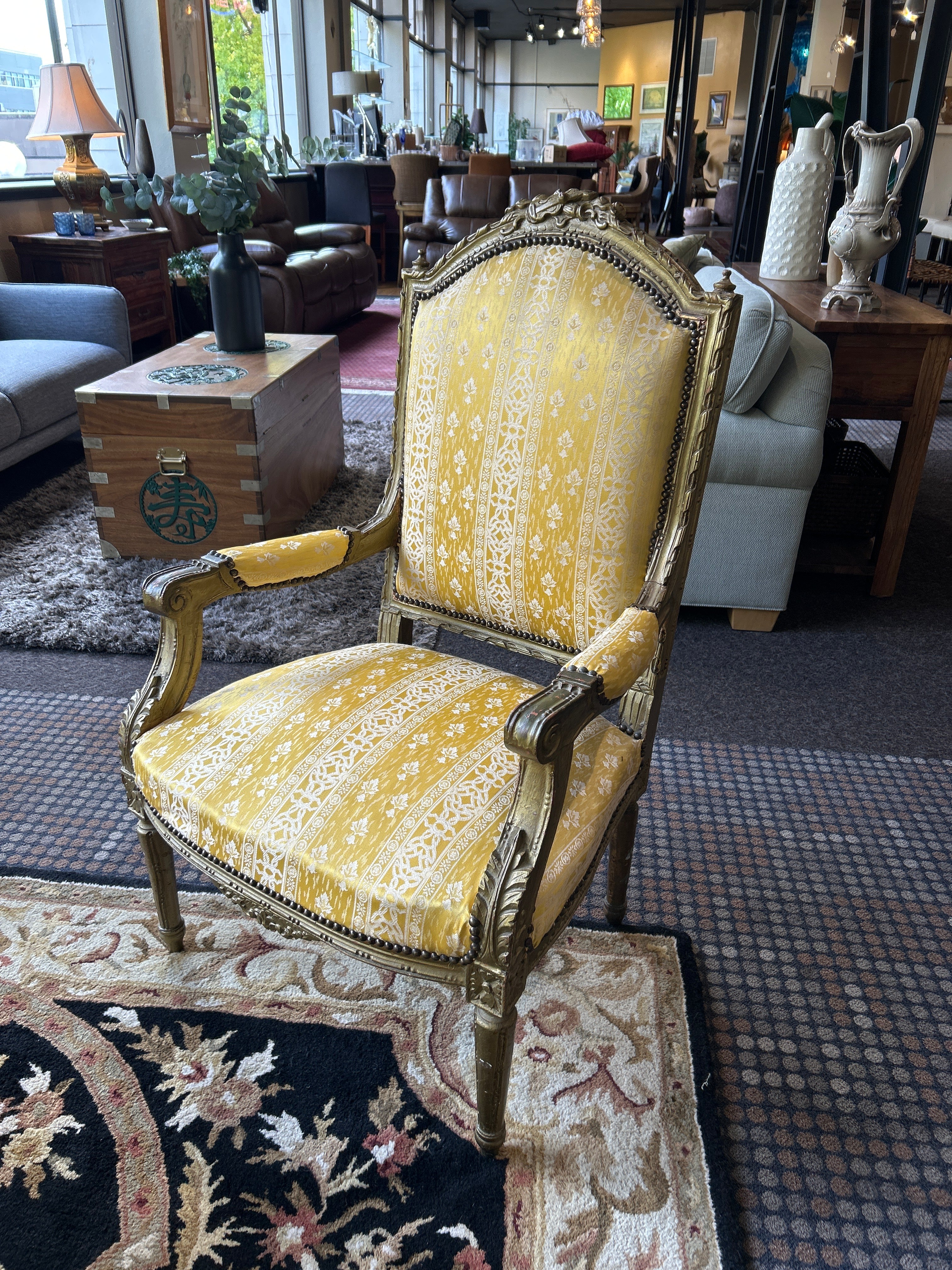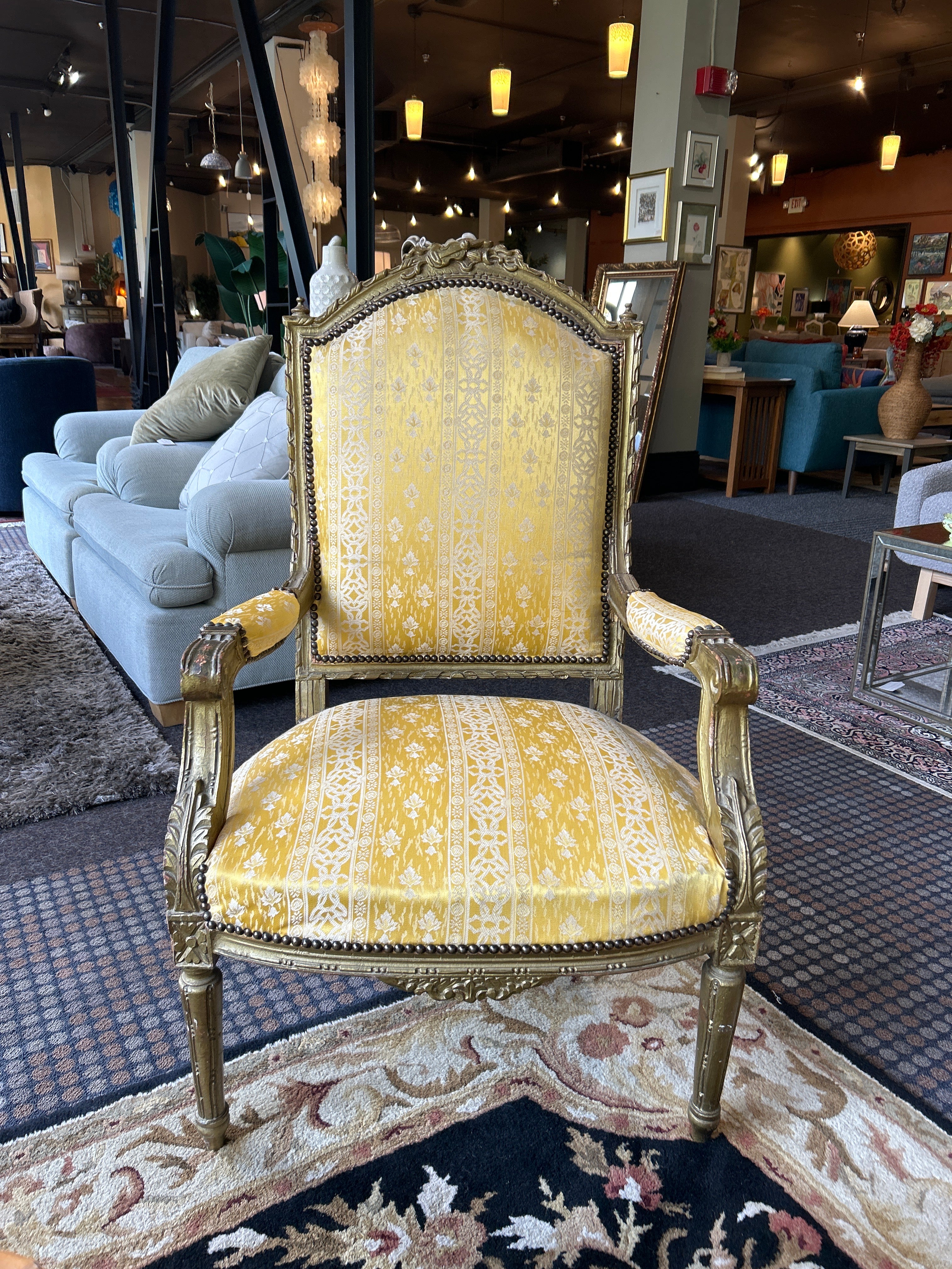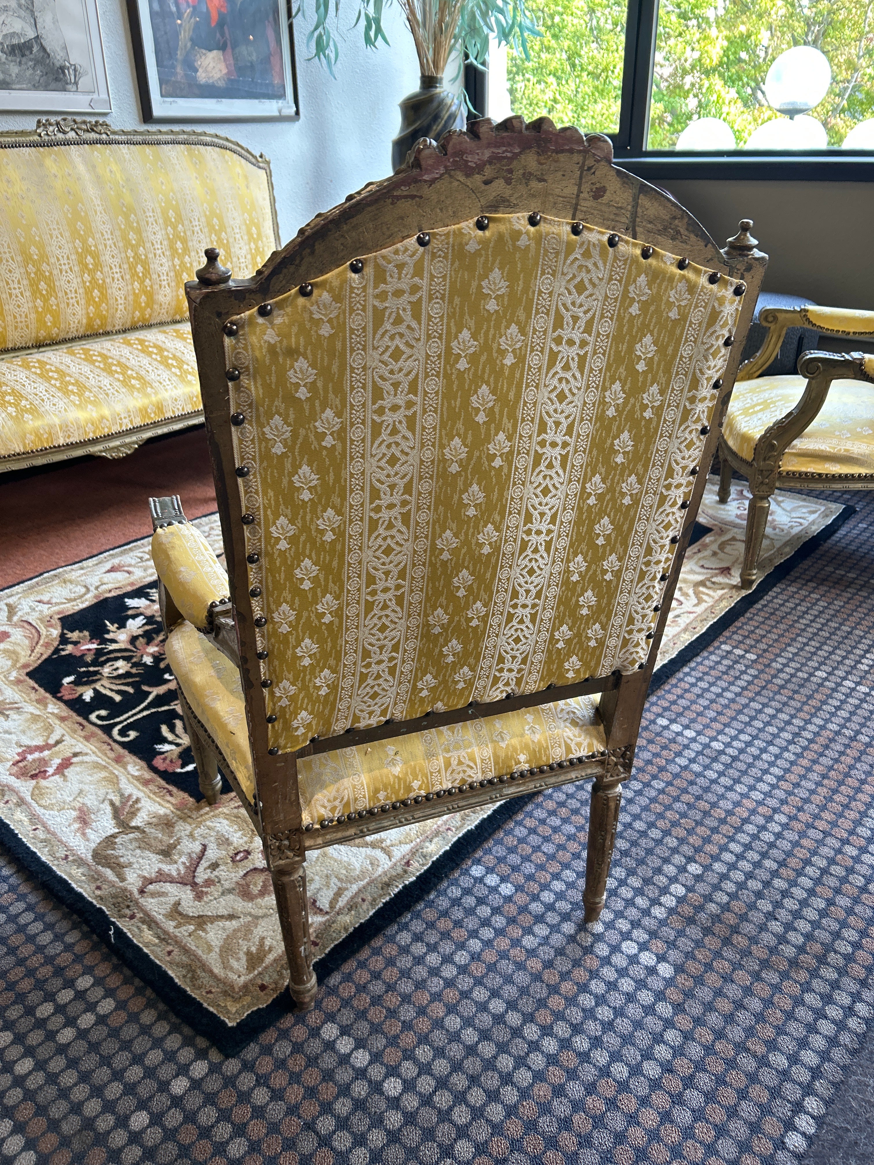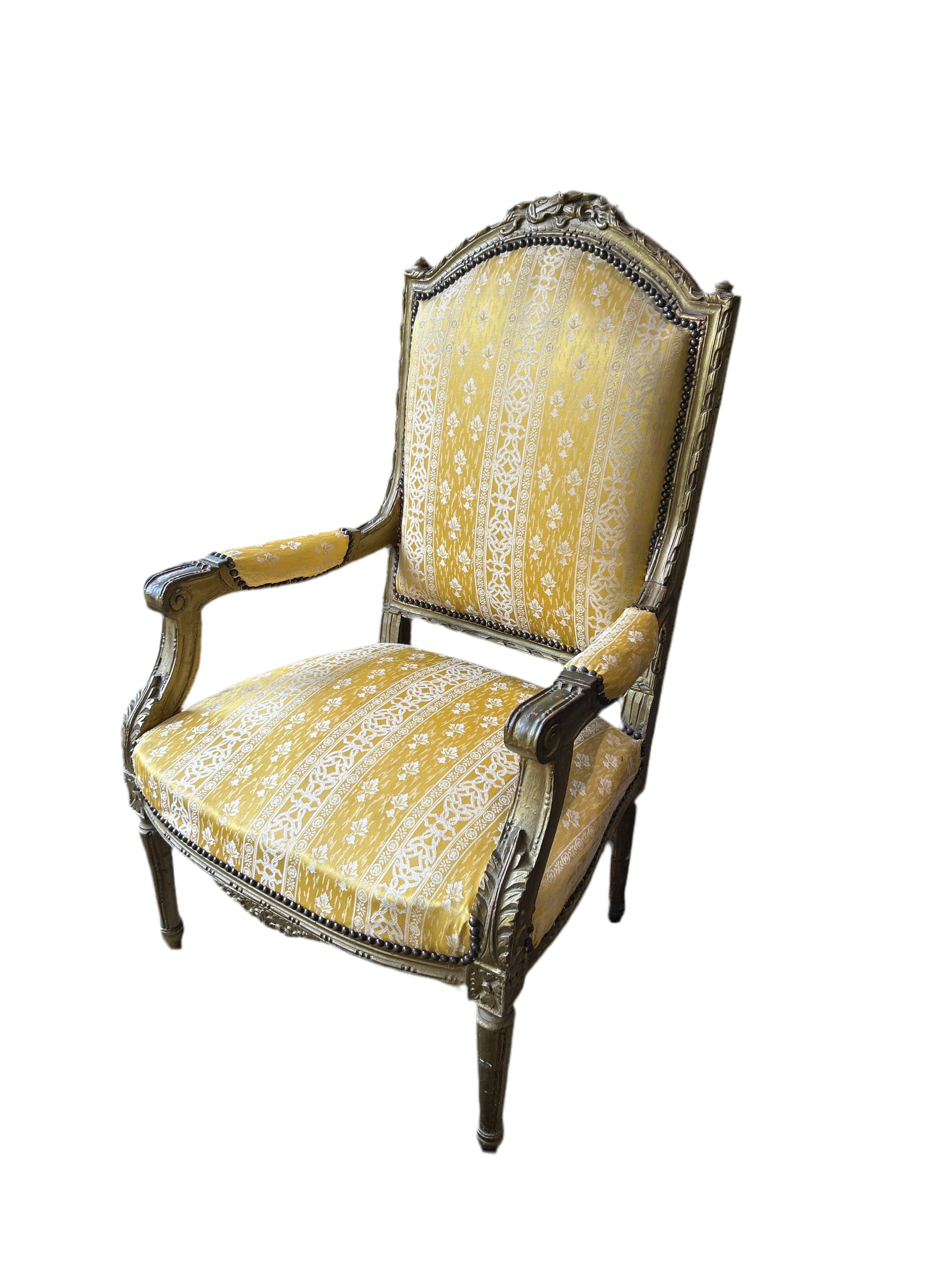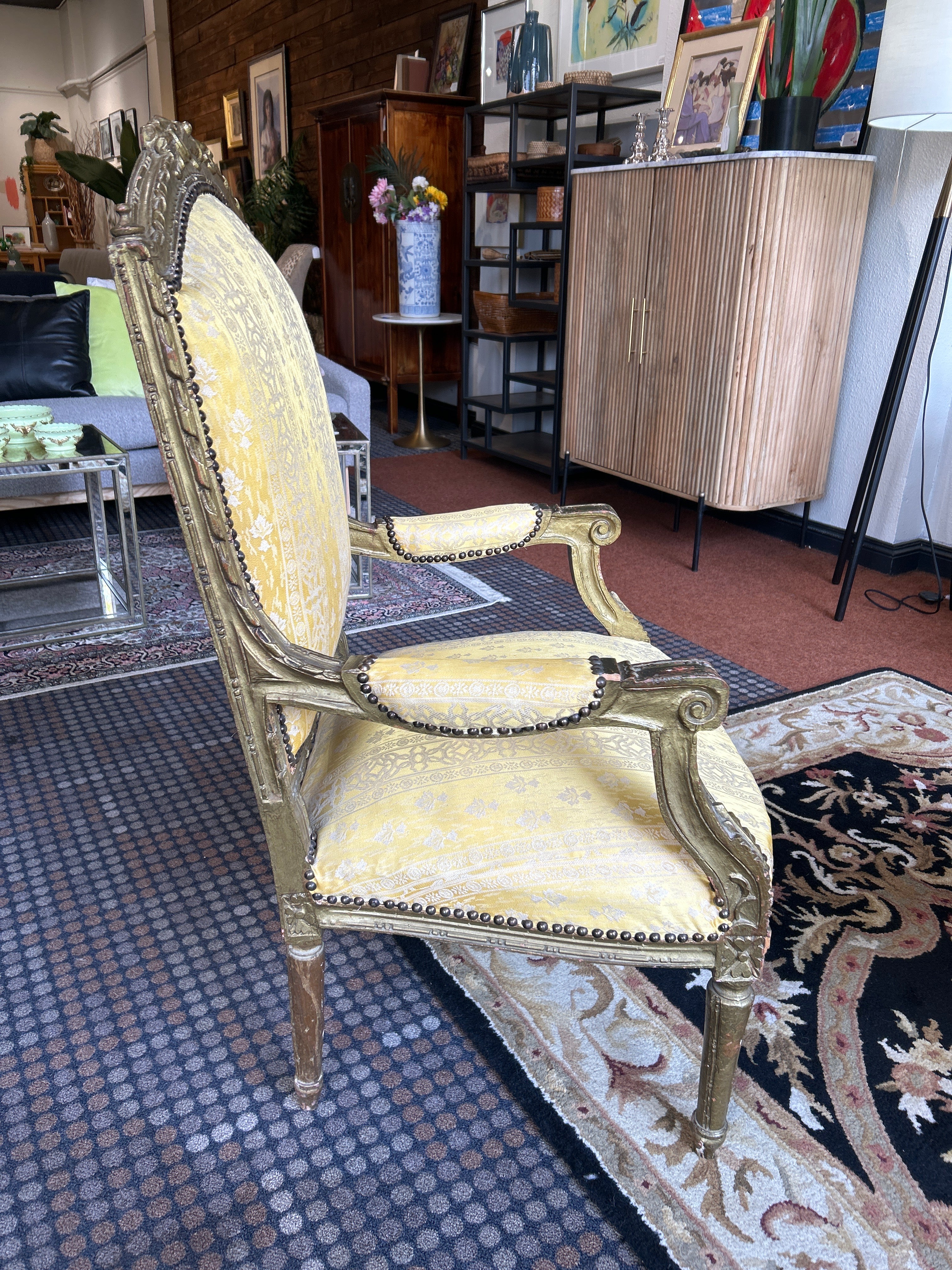 Louis XVI Antique Chair – Sunny Yellow Elegance with Gilded Detailing