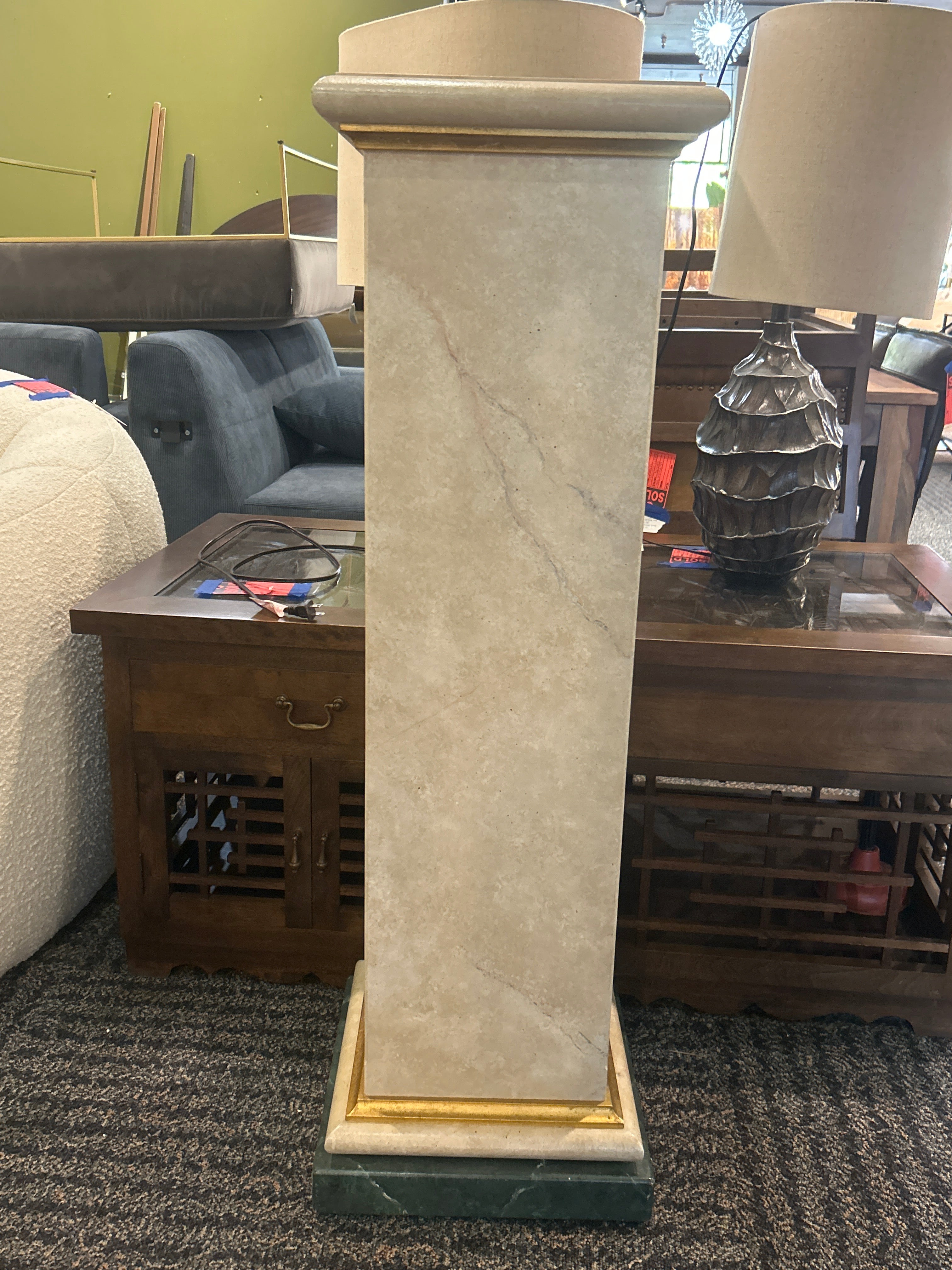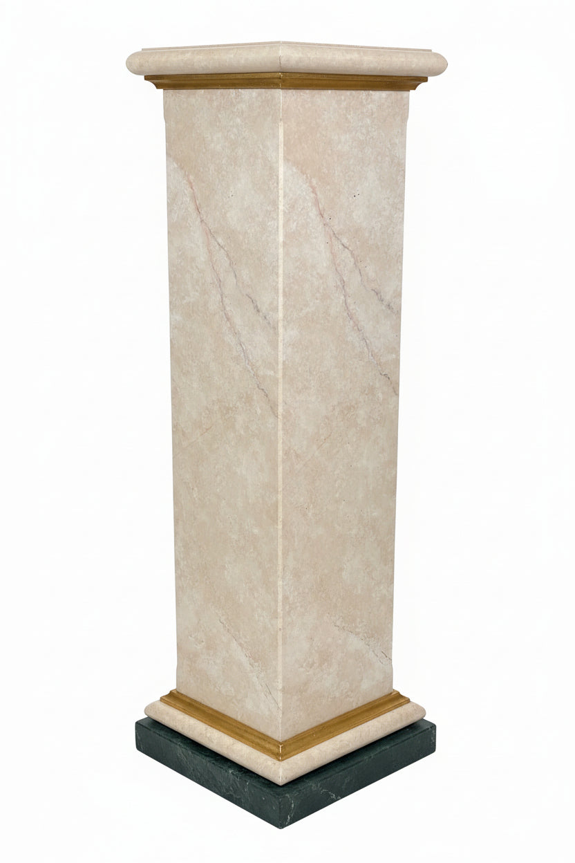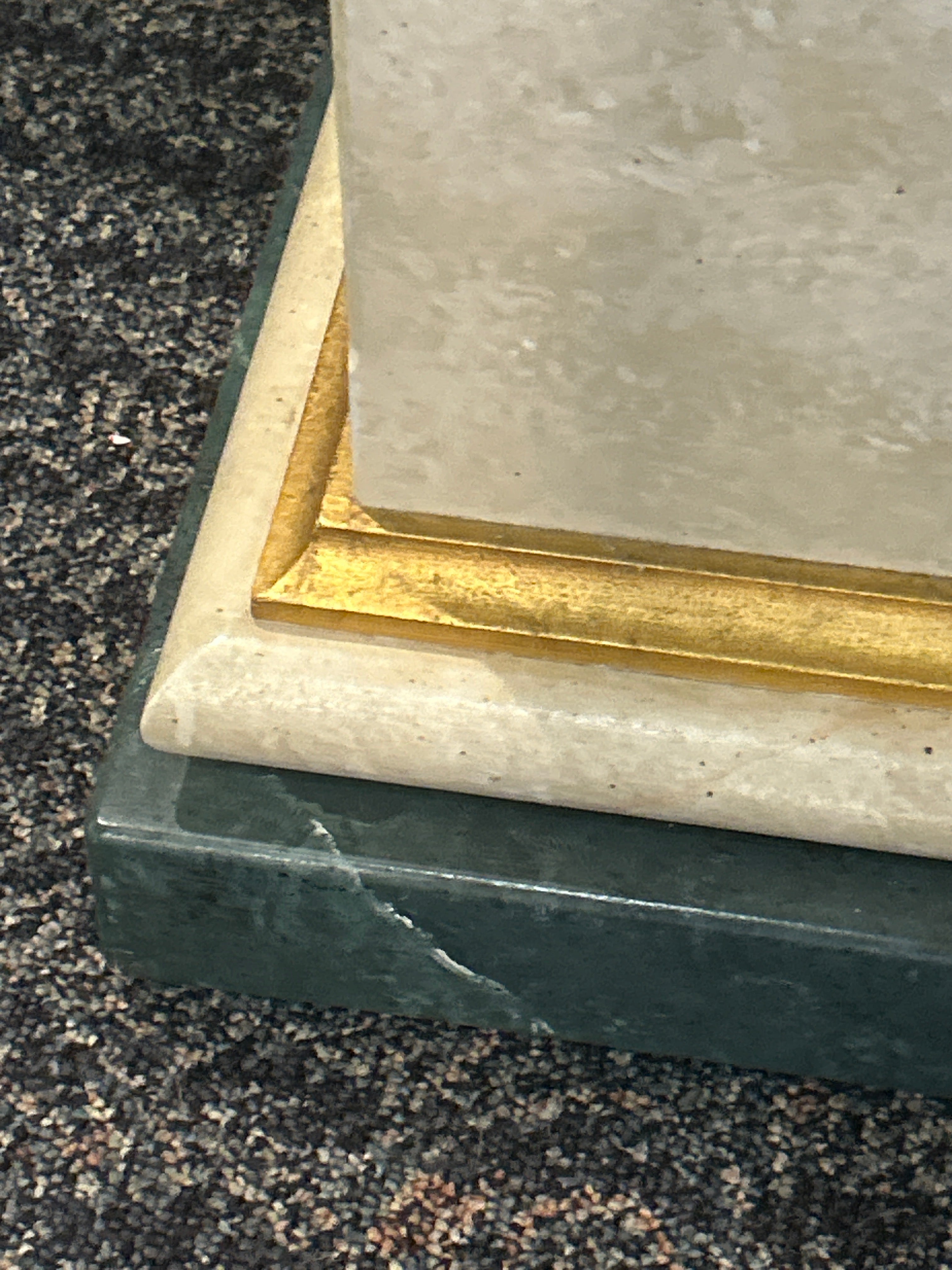 Antique Marble Display Pedestal with Green Base & Gold Accents