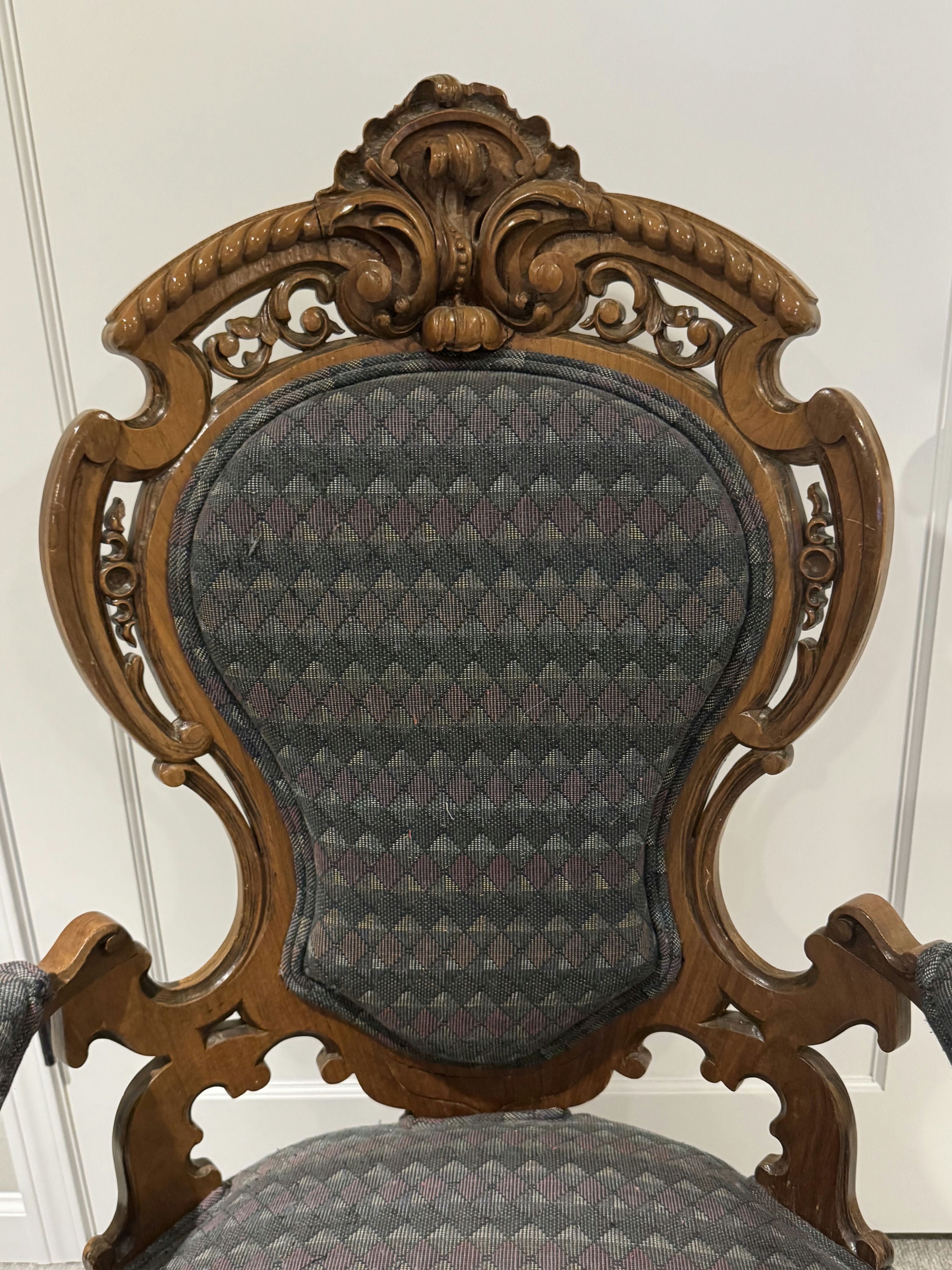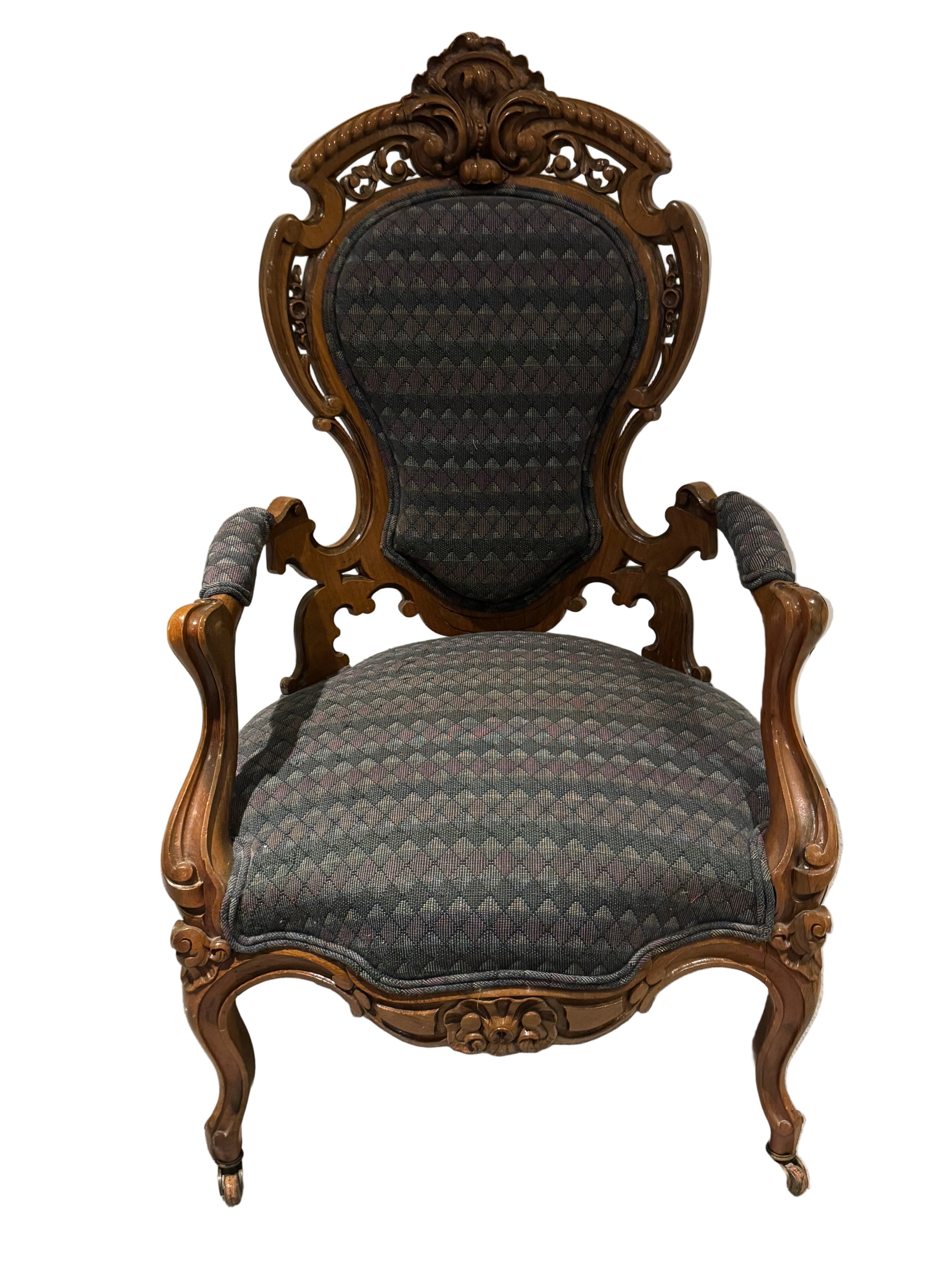 This exquisite Victorian-era parlor chair is a timeless statement piece, beautifully restored to bring antique charm into the modern home. Crafted from rich solid walnut, the chair features elegant hand-carved details that reflect the craftsmanship of the late 19th century.