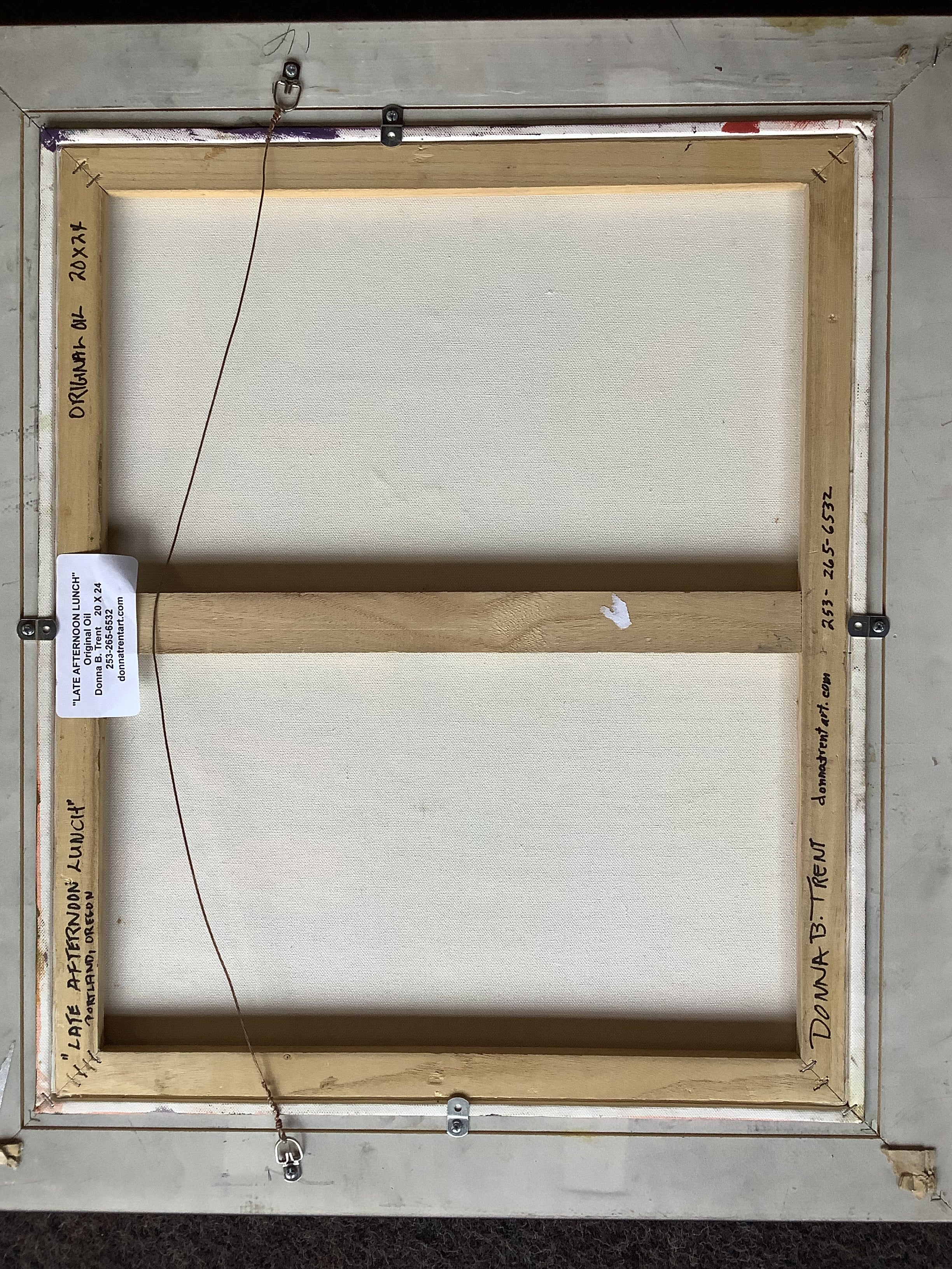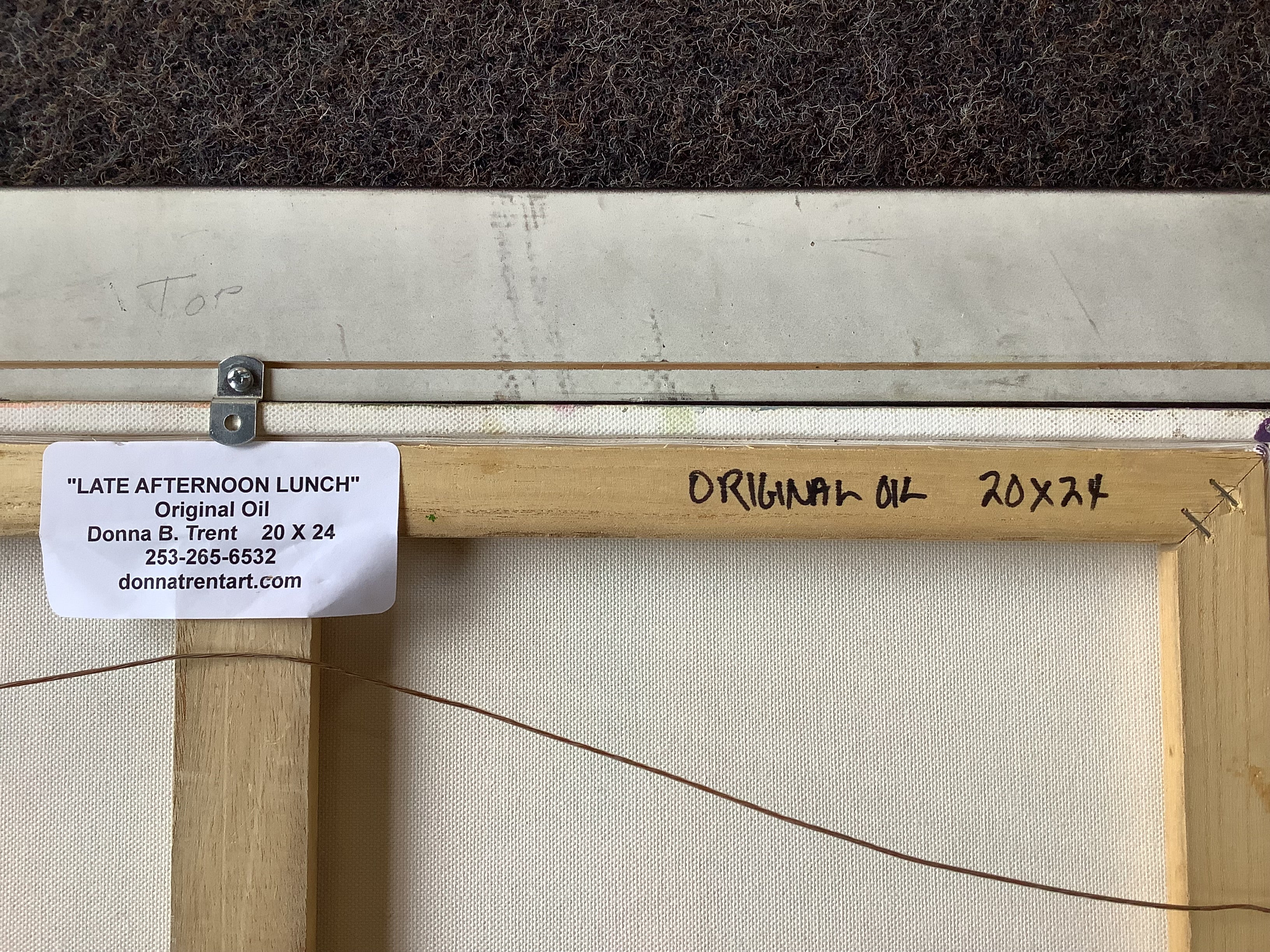 Original Oil "Late Afternoon Lunch" by Donna Trent 28" x 25"