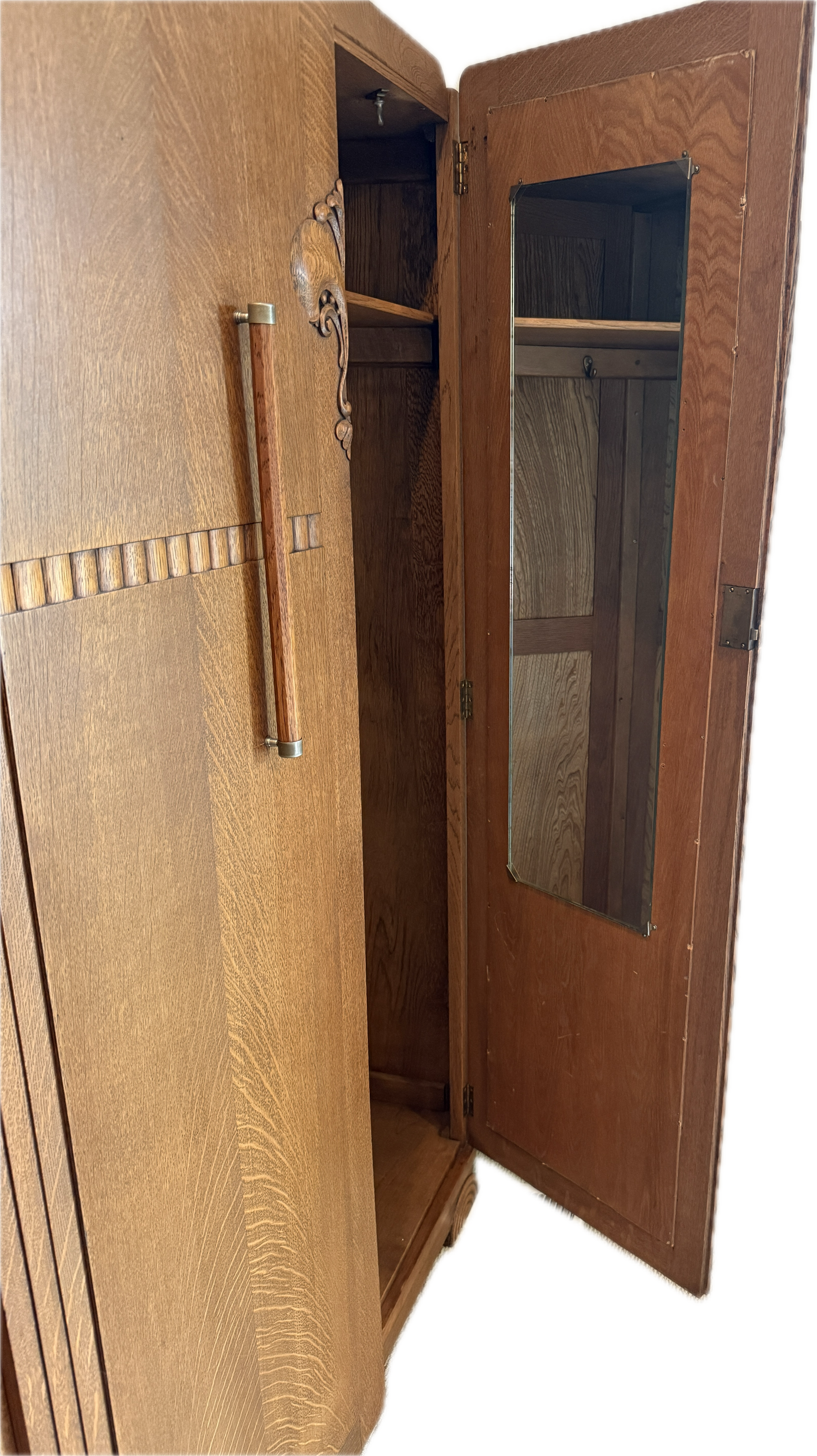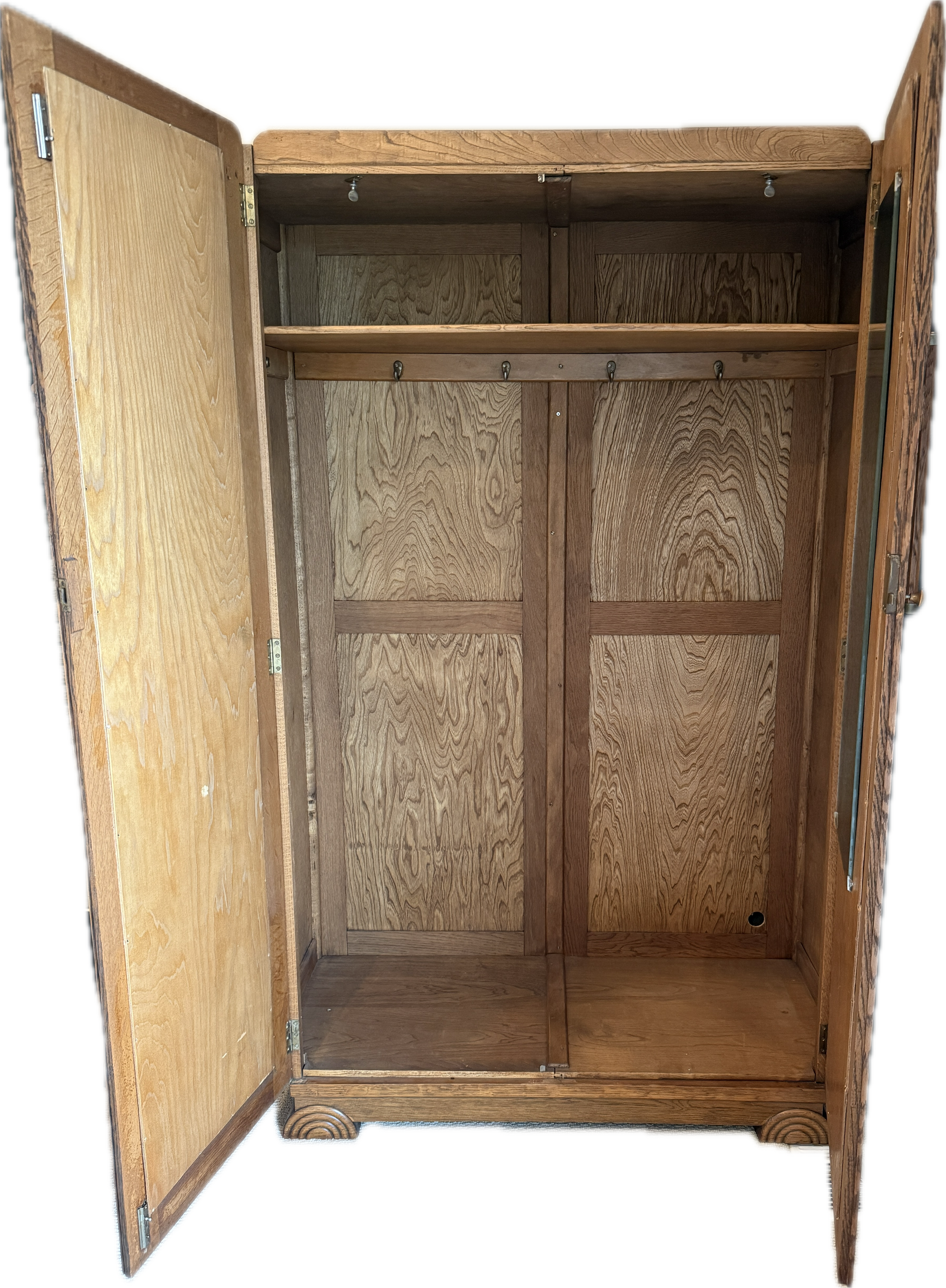 Quarter-Sawn Oak Art Deco Armoire β England Import, Multi-Use Storage