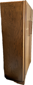 Inside, you'll find a shelving area, interior mirror, and original hanging hooks, making it perfect for use as a wardrobe or storage cabinet. There's also a keyhole at the front (key not included), and a small, discreet hole has been added in the lower right corner, originally used for cable accessβideal if youβd like to repurpose it as a TV, stereo, or media cabinet.