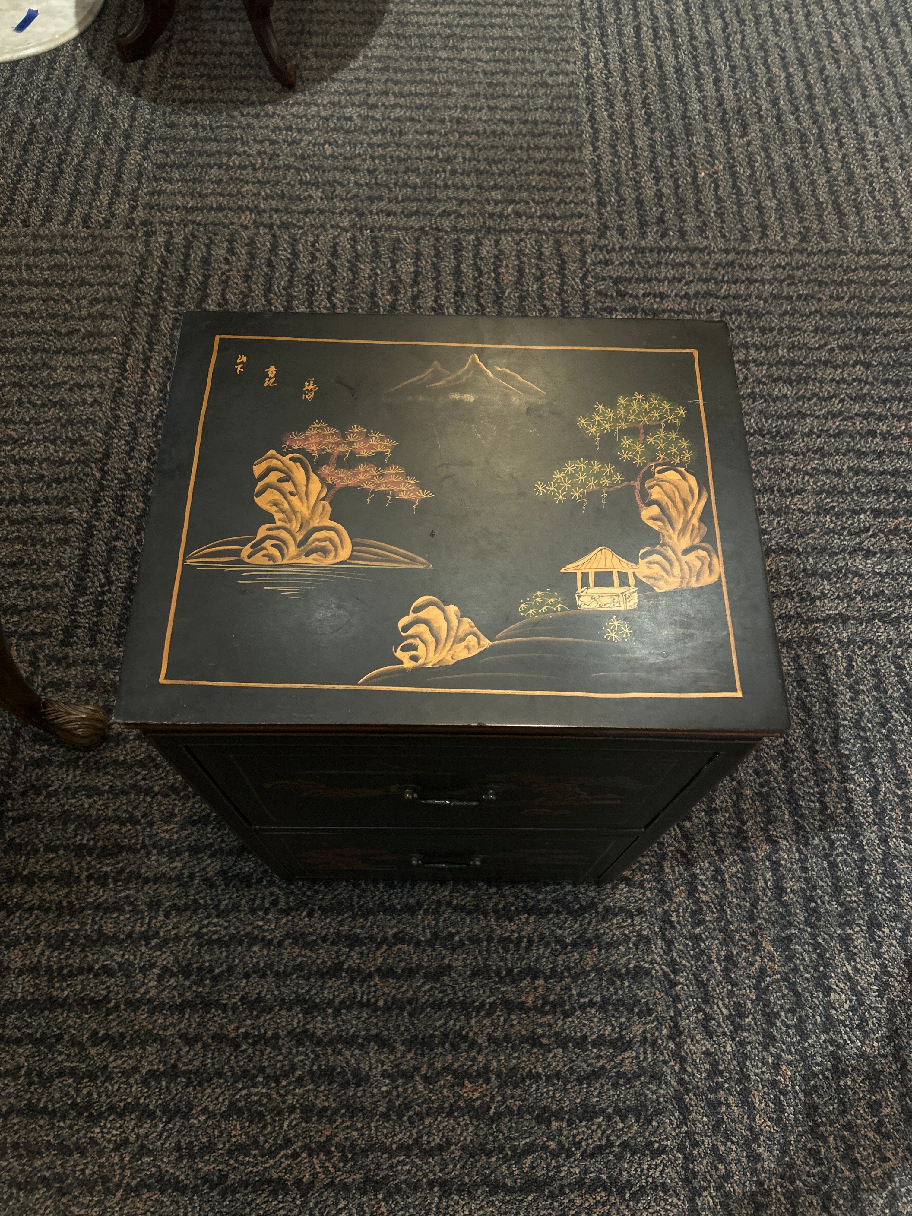 (As is) Black Chinoiserie Cabinet 19" L x 15" W x 29" H