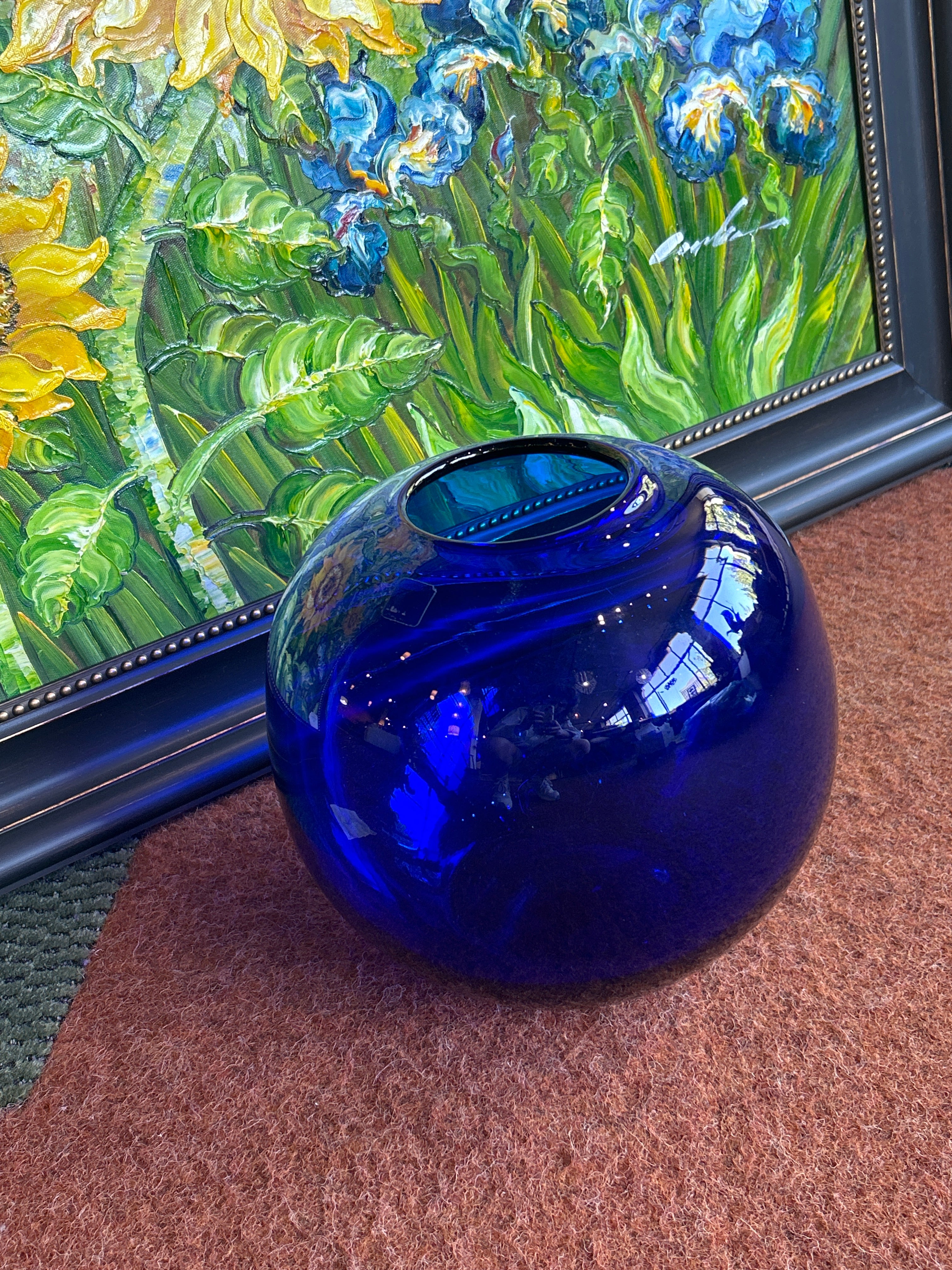 Blenko Art Glass (retro modern) Deep Cobalt Blue Ball Vase Art Deco circa 1930