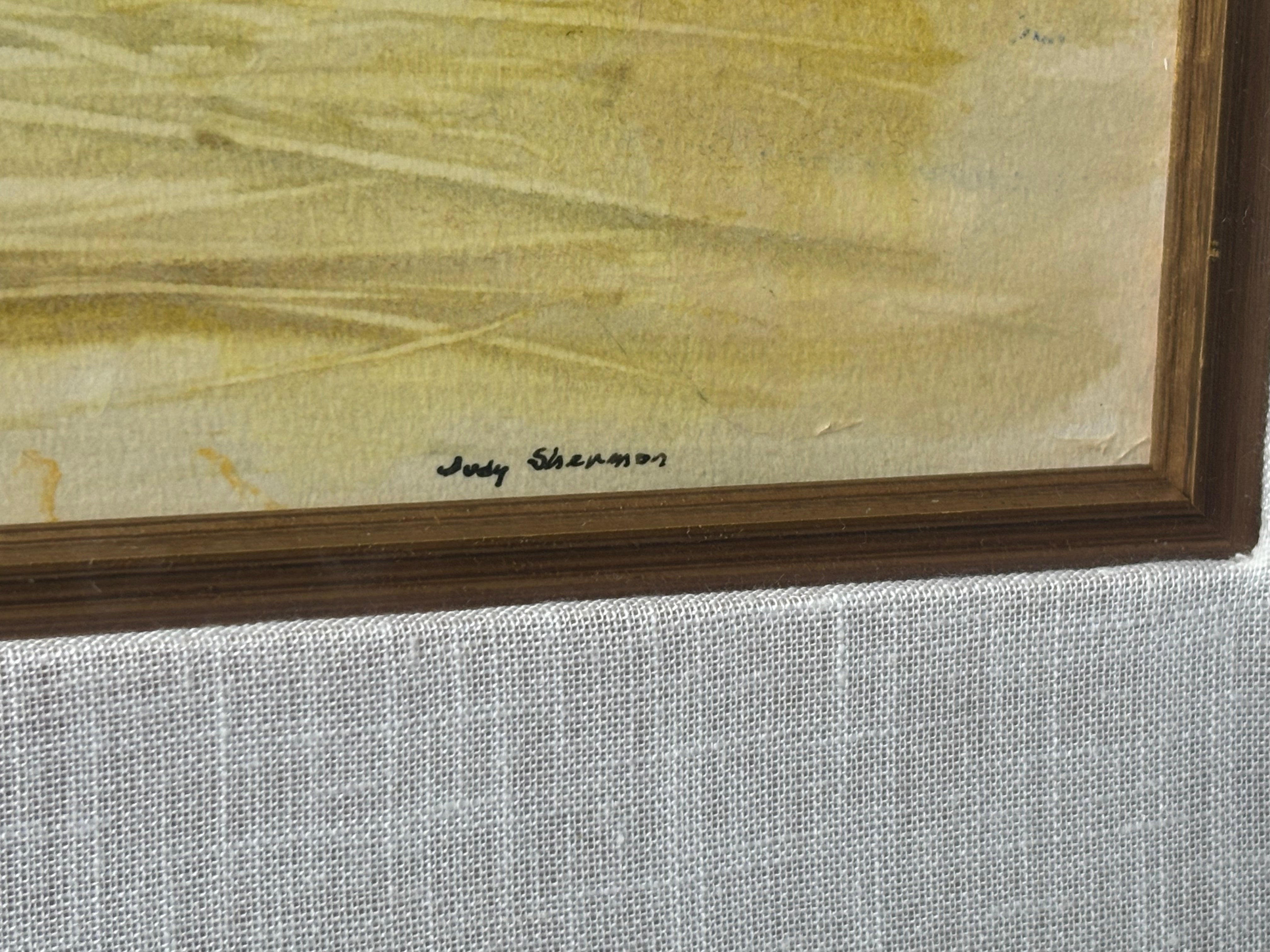 Beautiful cool toned horizontal landscape of sailboats peacefully floating. The coziness and nostalgia of this painting will surely complete any room.