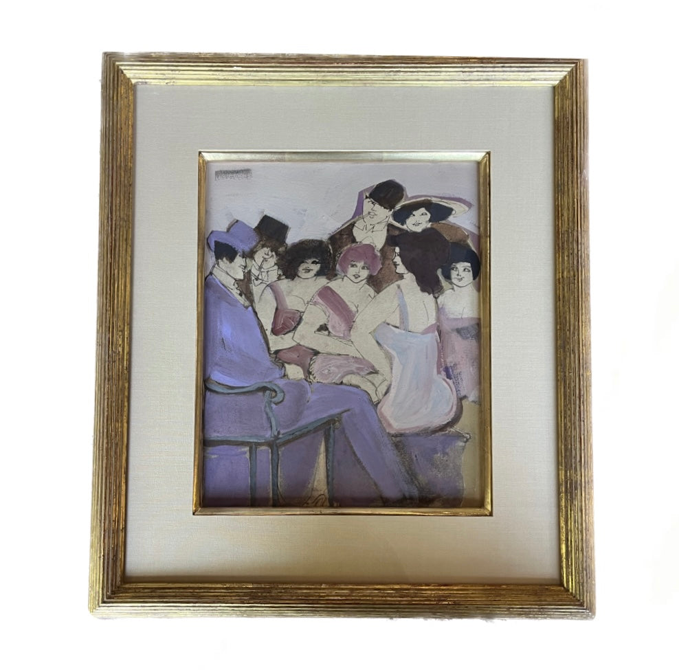 Common motifs can be seen in his paintings - subtle eroticism, sensuous characters, and exuberant humor enhanced by refined colors. Thomas Mann and the plight of the common man influenced Schneuer while in Germany. Ultimately, from the late 1960's onward, his work seemed to deal less with reality than with its reflection. The figures seemed to arise from La Boheme, Baudelaire, Toulouse-Lautrec, Cheret and Mucha. His work was a Munich version of early Twentieth Century Paris, fashioned in Tel Aviv at the later part of the century. His memories of people, places, and relationships past were recessed deep into his subconscious.