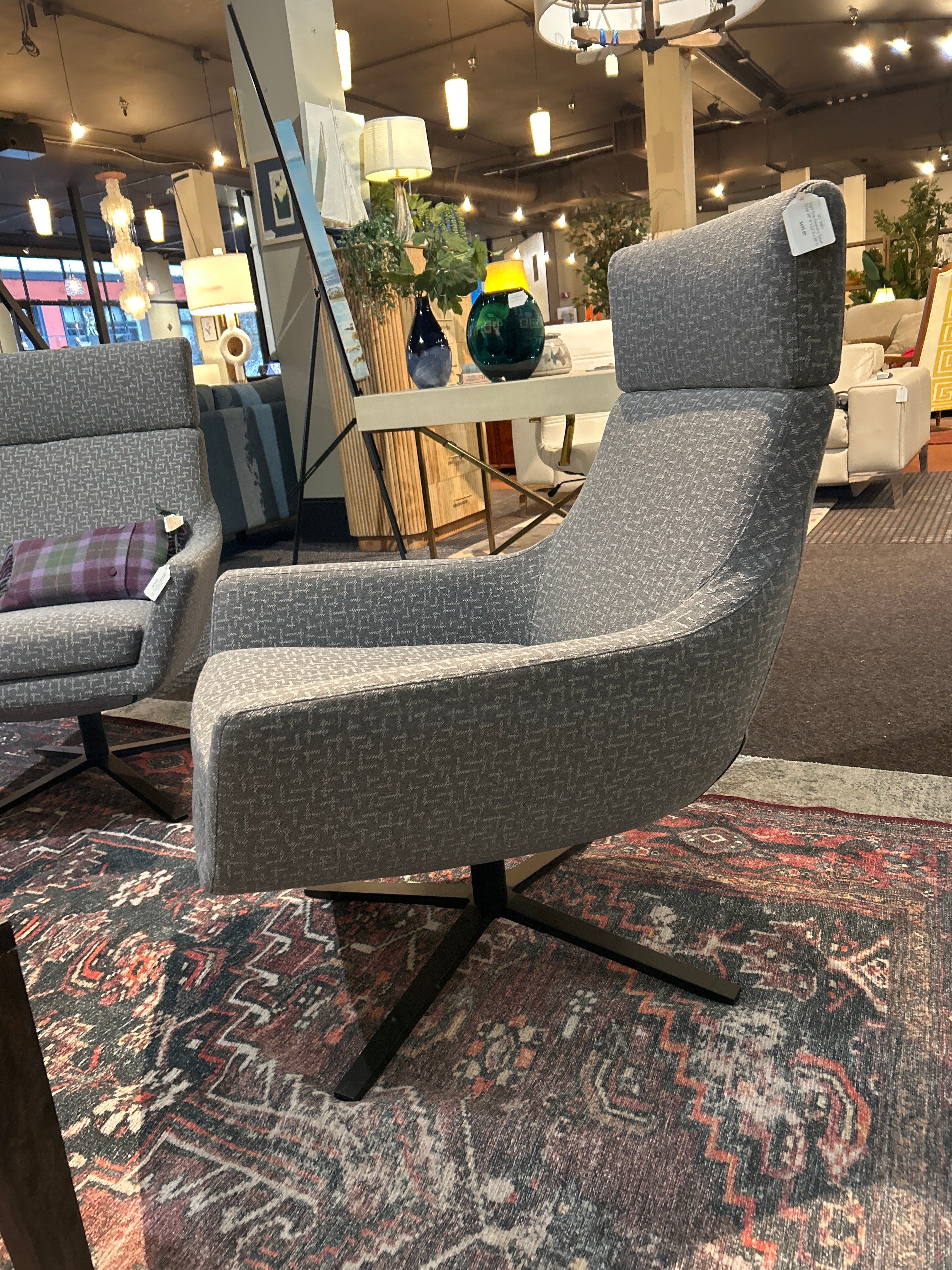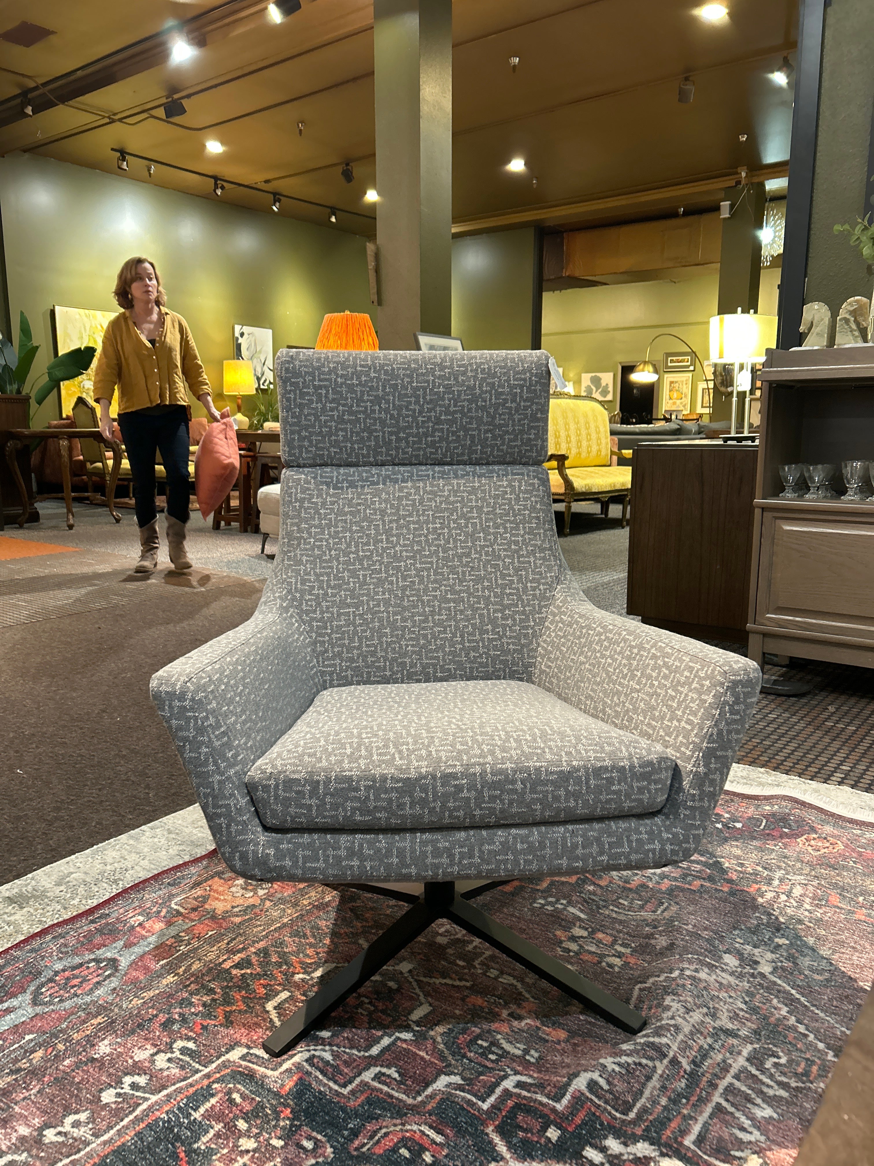 Light Gray Geometric Swivel Chair 28” W x 26” D x 38” H