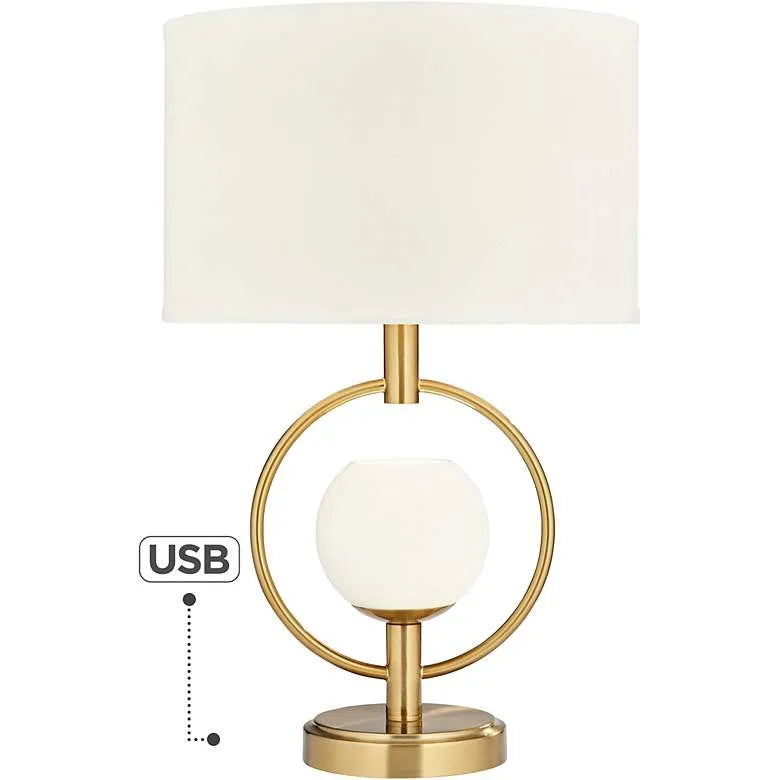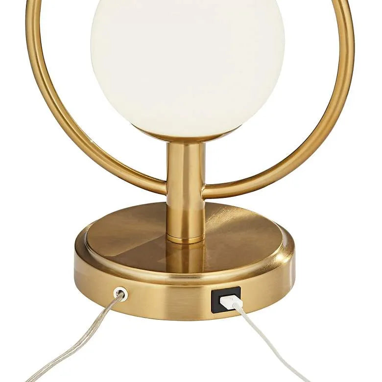 Dress up tables with this elegant simplicity and brilliance of this metal table lamp. An opaque white globe nightlight puts off a soft illumination for sophisticated dimly lit spaces, accenting the eye-catching warm gold ring. Together, these sleek modern elements create a breathtaking geometric design that beckons.
