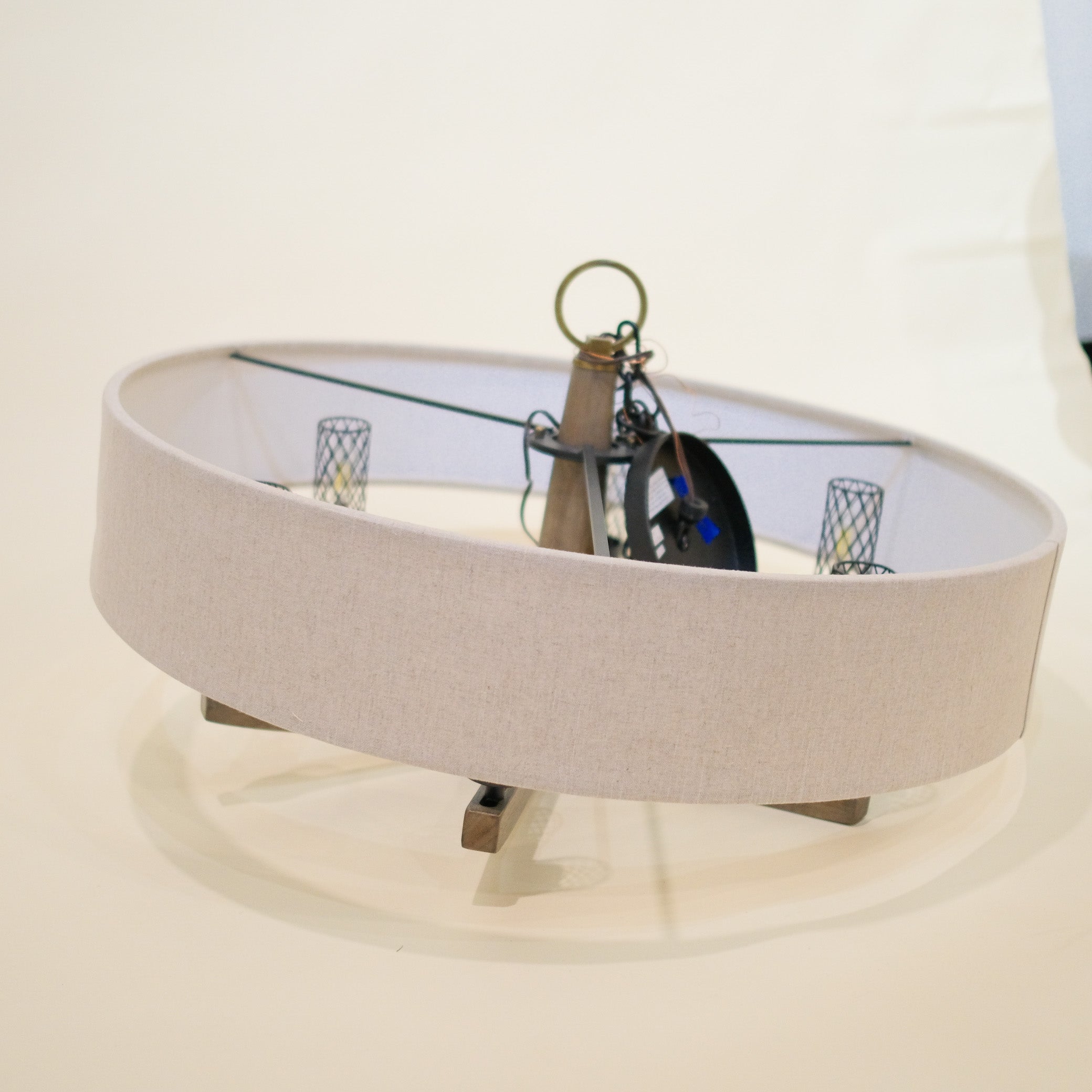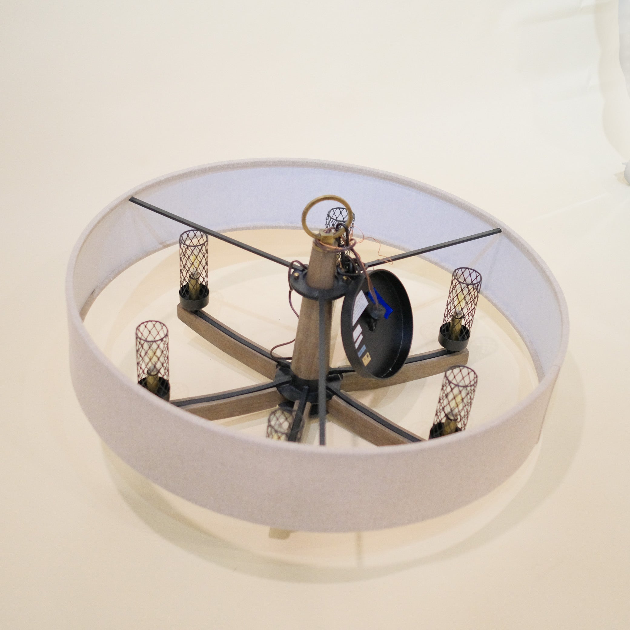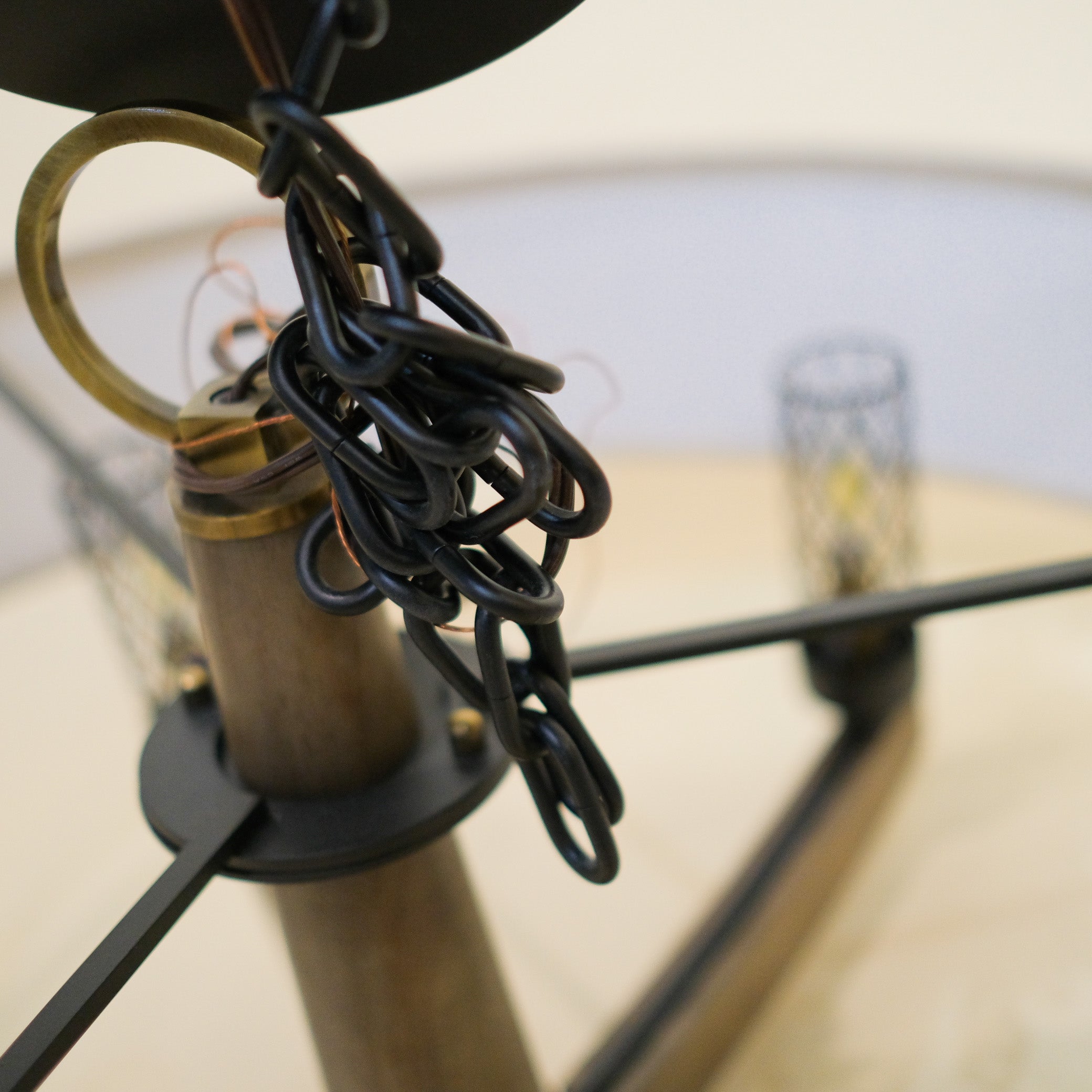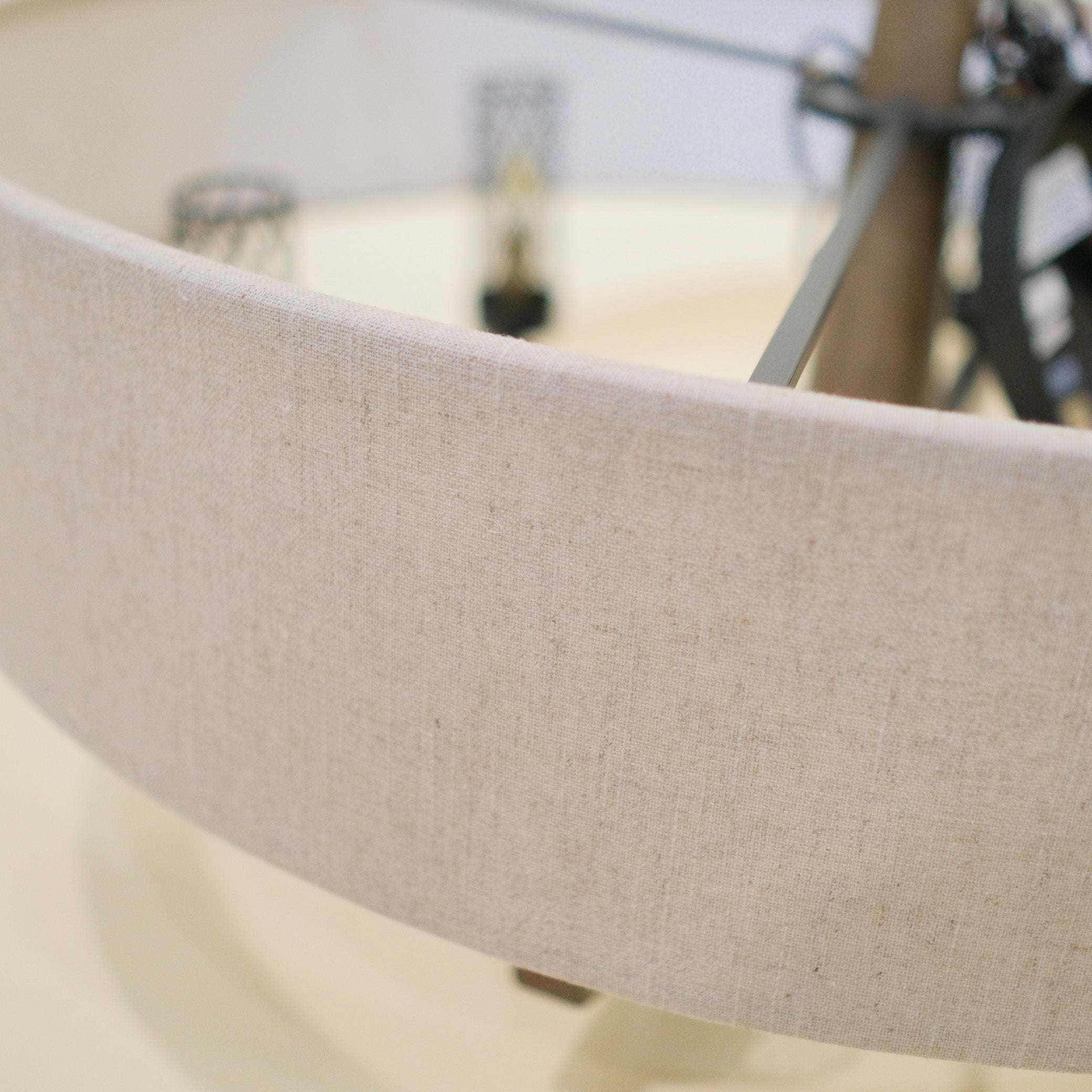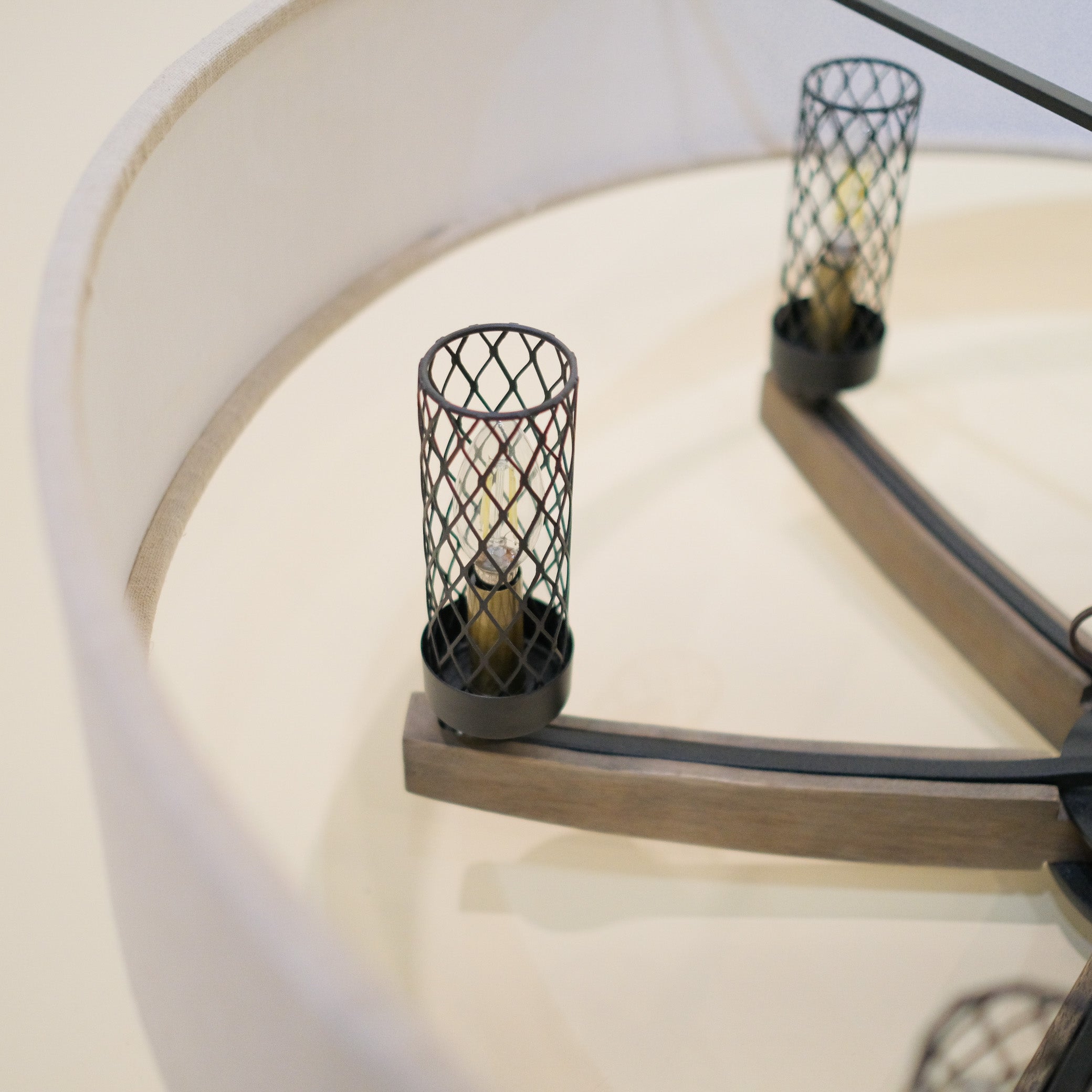 - Unique Curved Wood Arms Combined With Modern Oatmeal Linen Fabric Hanging Outer Shade Give This 6 Lt.chandelier A Clean Update Feel. Special Woven Mesh Shades Offer A Distinctive Detail Along With The Dark Bronze & Antique Brass Accents. Supplied With 6-60 Watt Max Candelabra Sockets Also Includes 7 Of Chain And 20 Of Wire For Adjustable Installation.FeaturesCollection: Woodall