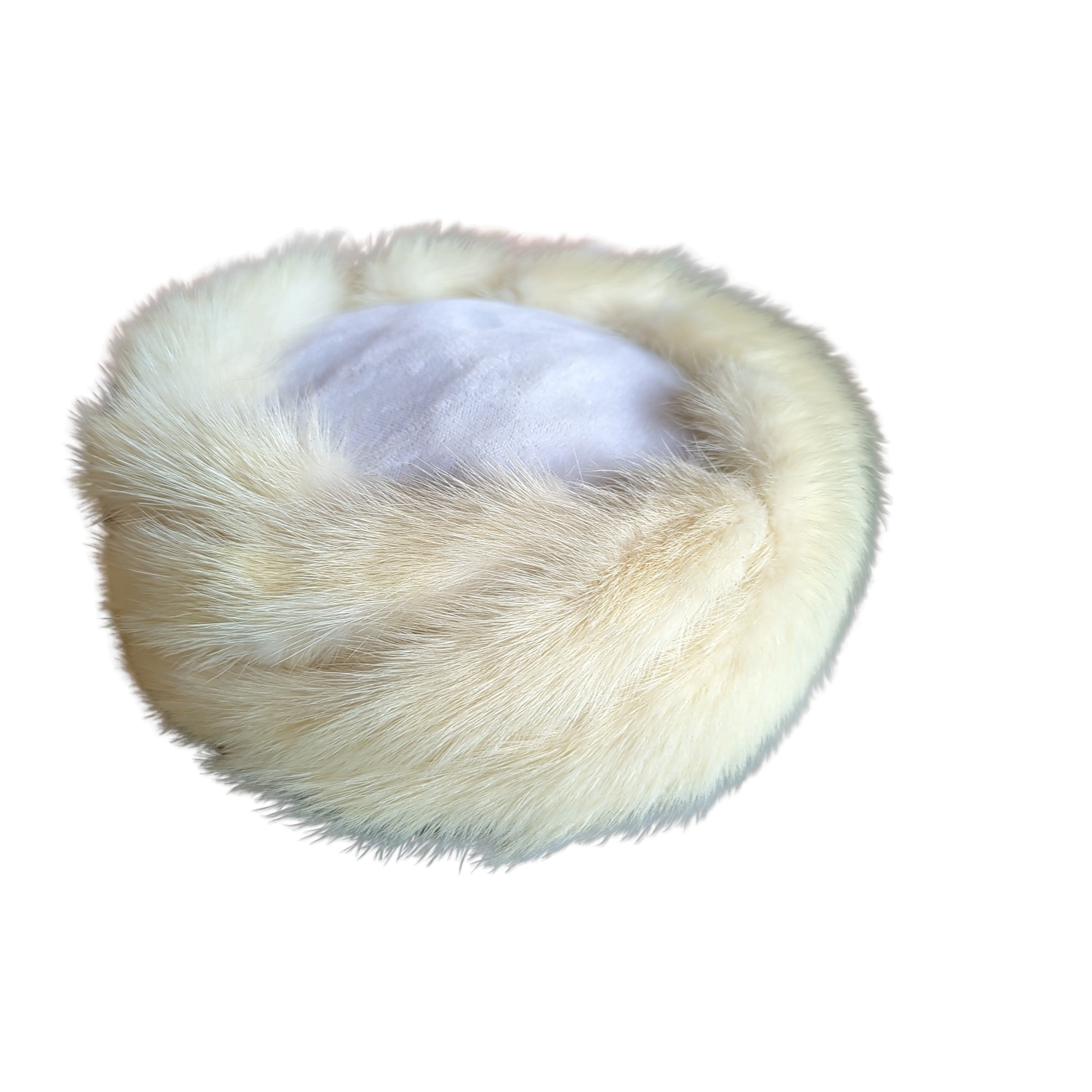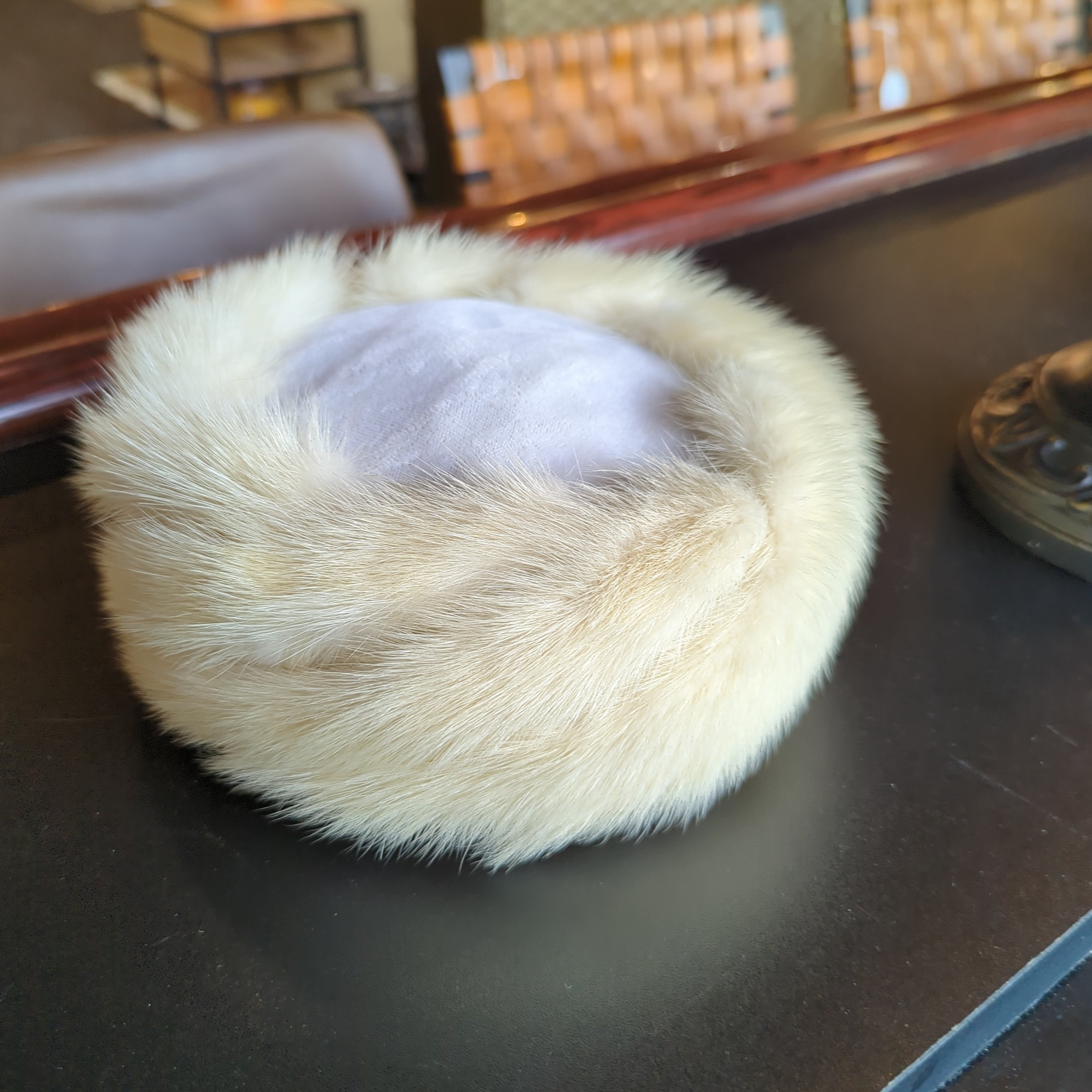 Darcel Exclusive Pillbox Mink Hat in Cream 9"D