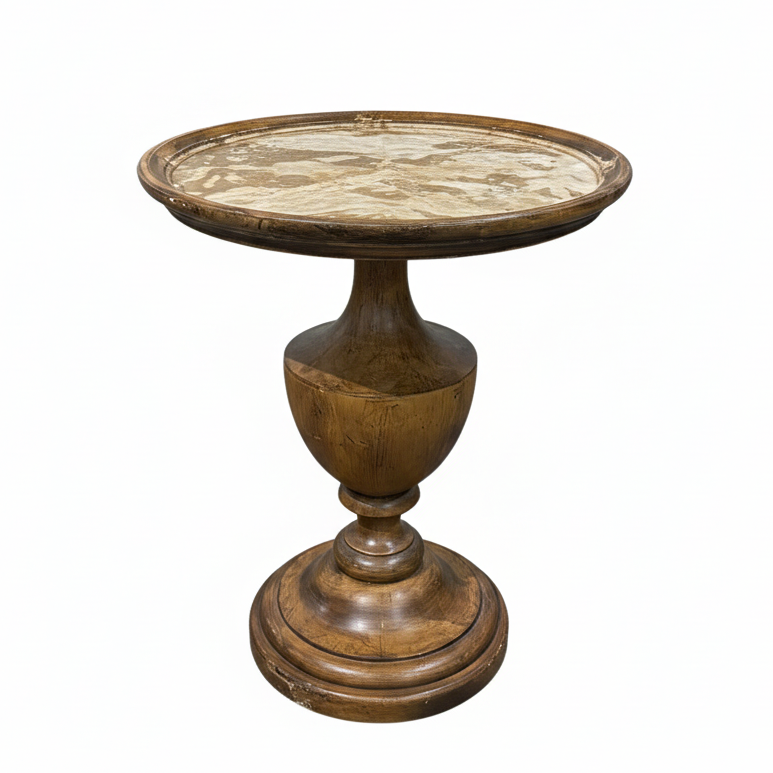 Crafted from rich walnut wood, this piece features a marvelous molded circular top, gracefully supported by an urn-form pedestal and a sturdy circular base. The warm golden brown finish enhances the natural beauty of the wood grain, adding warmth and sophistication to any room.