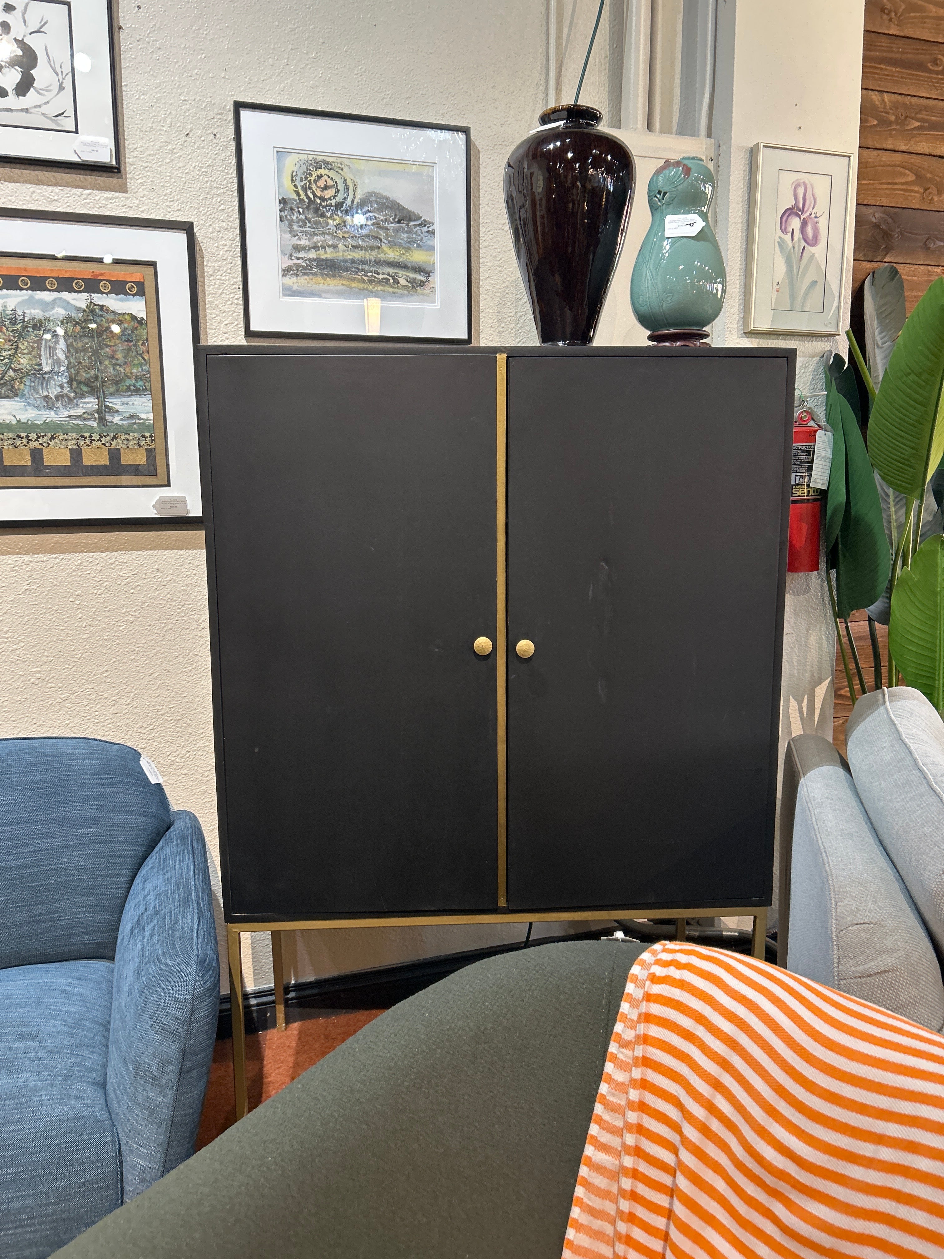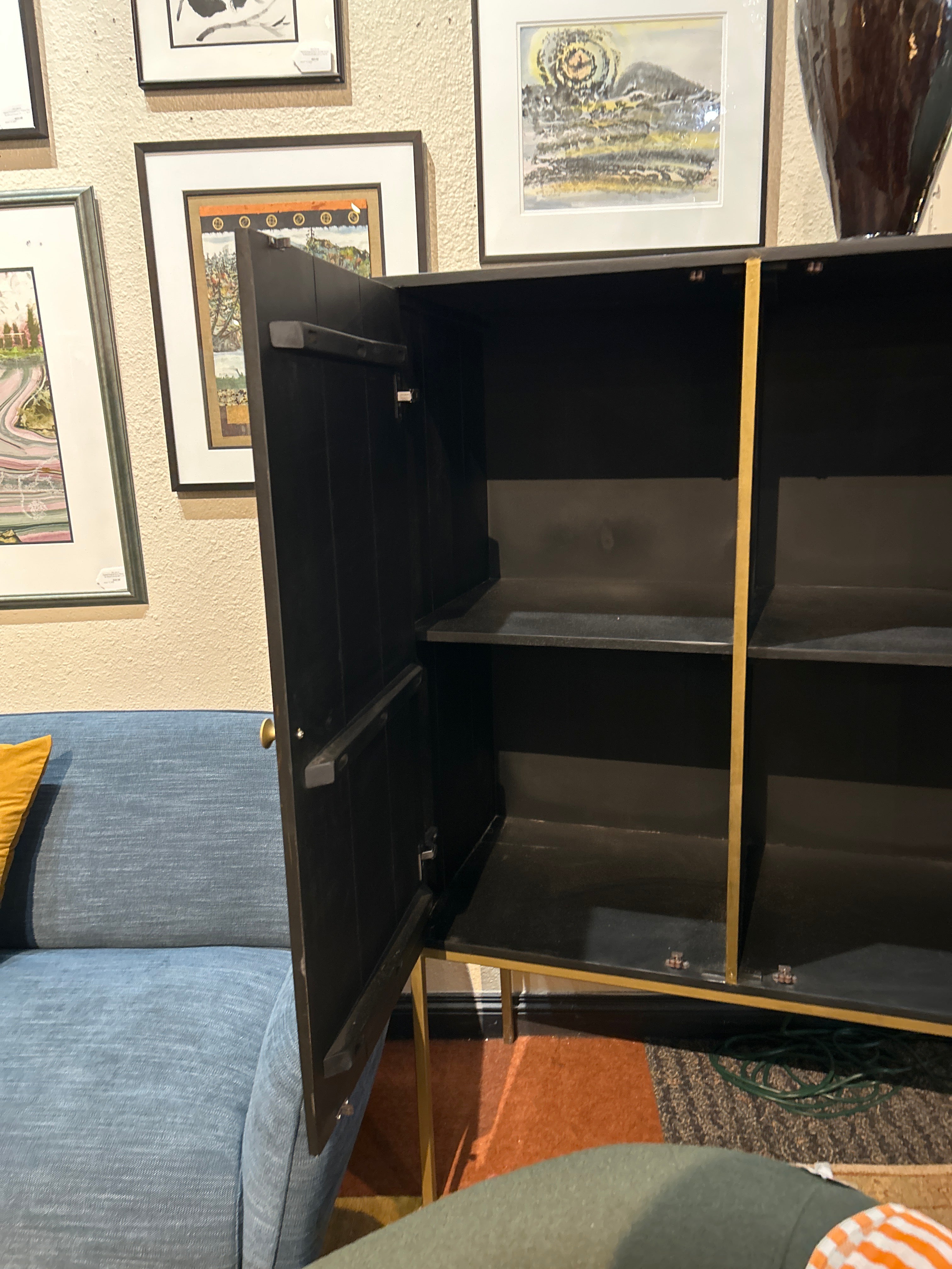 Art Deco Black & Gold Bar Cabinet 40" x 20" x 59"