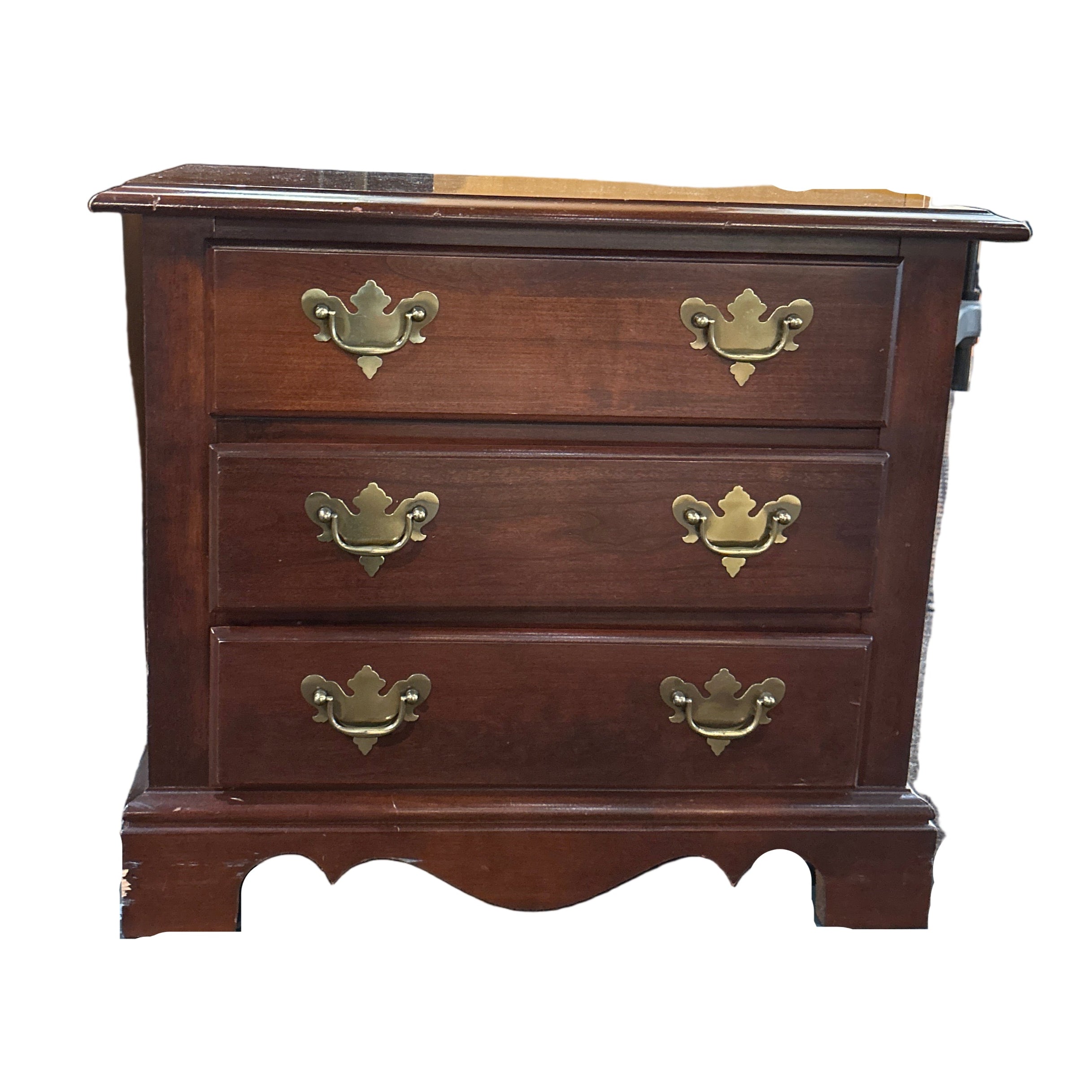 Elevate your space with the understated elegance of this Broyhill 3-Drawer Side Dresser, crafted from quality solid cherry wood. Compact yet functional, this piece is perfect as a side dresser, nightstand, or entryway accent—offering timeless style and practical storage in one.