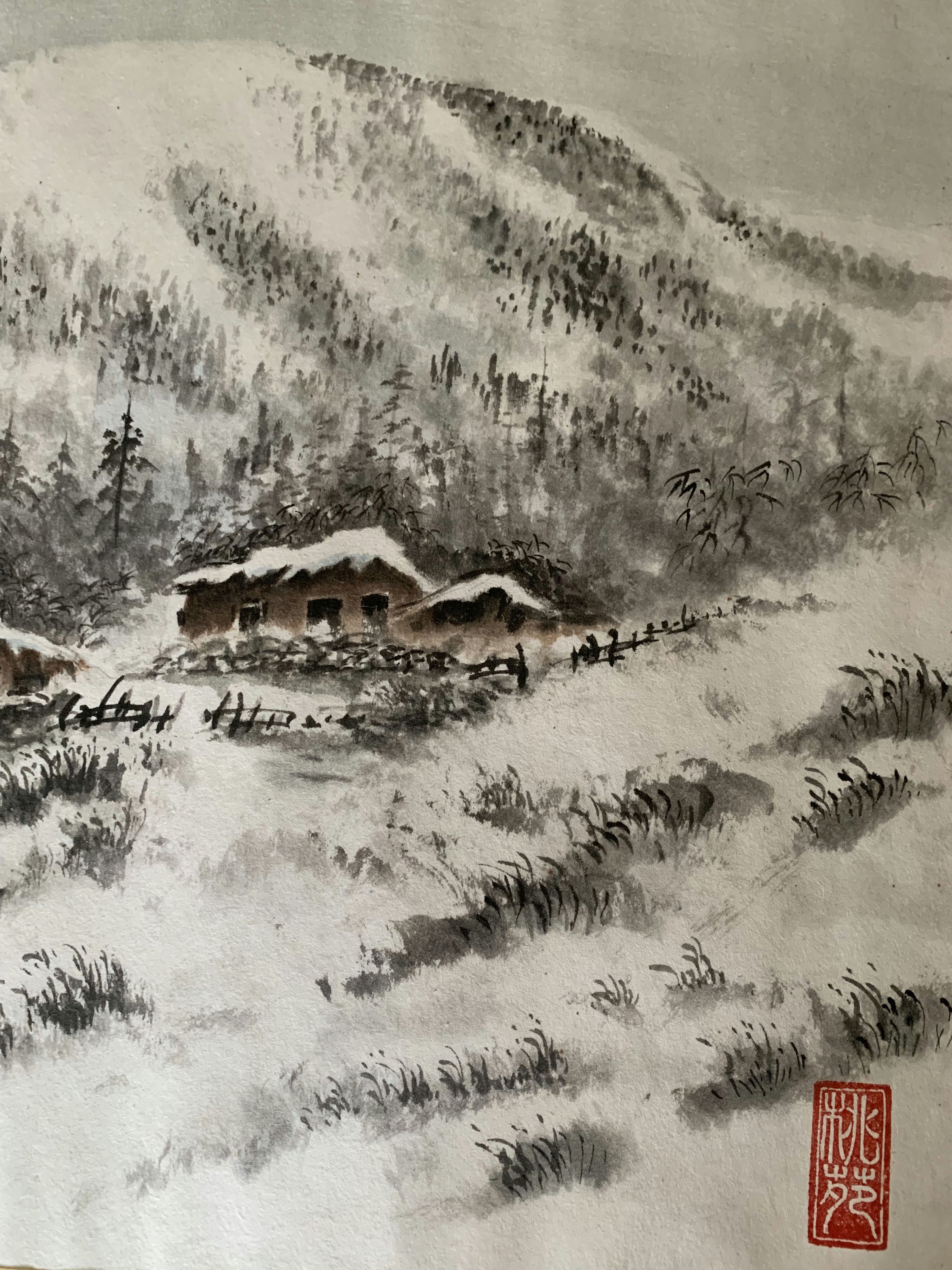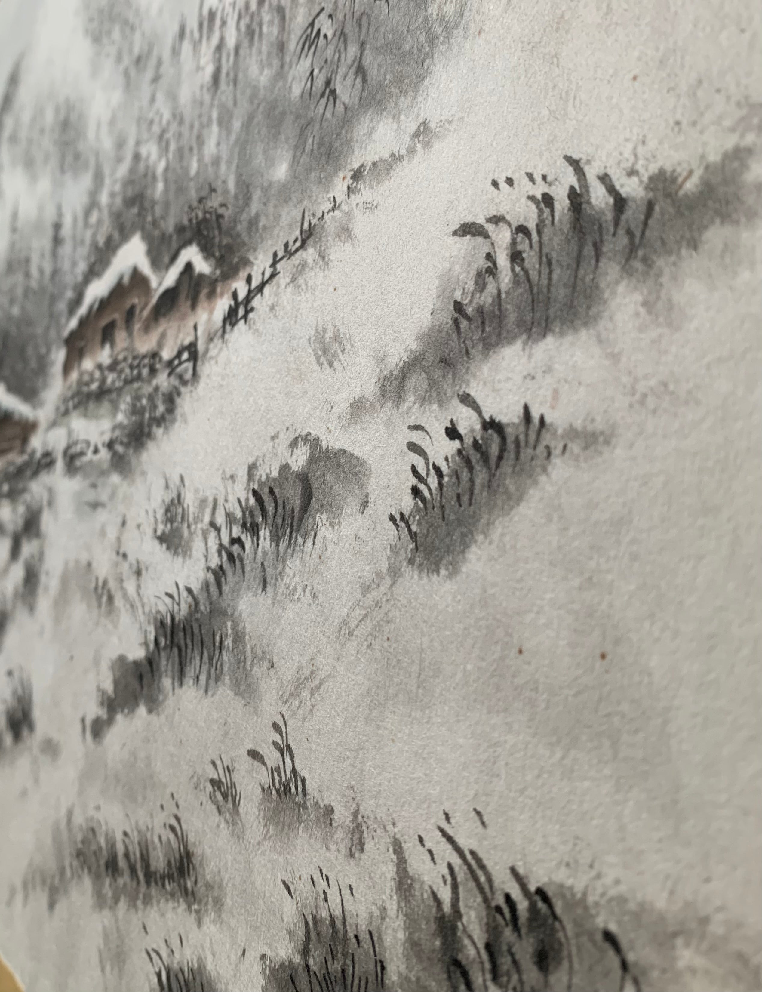 "Snowy Landscape" Gunmetal Gray 43" W x 24" H