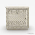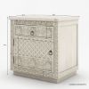 (As is) Nuala Hand Carved White Washed Solid Wood Nightstand 26" L x 19" W x 26" H