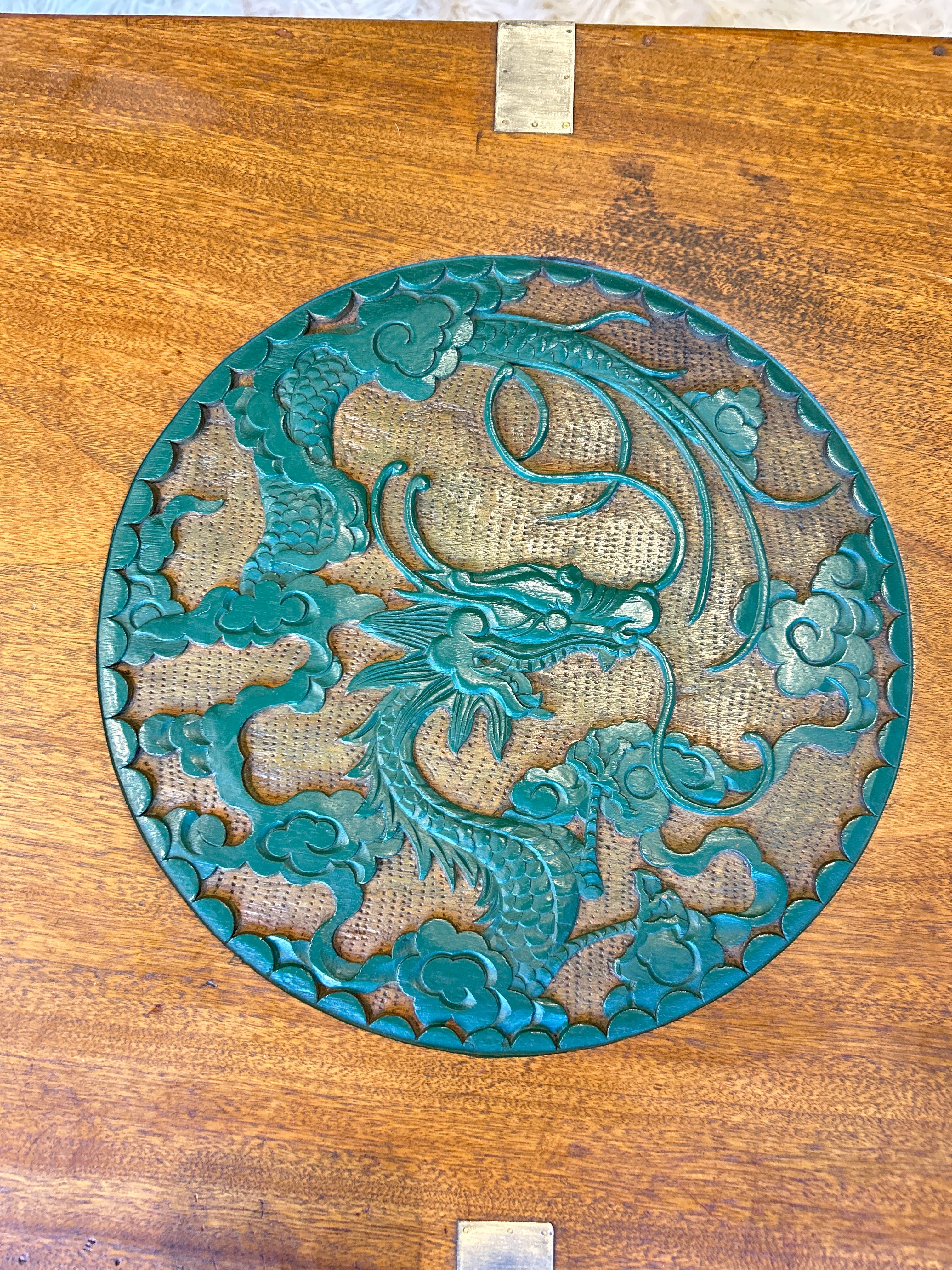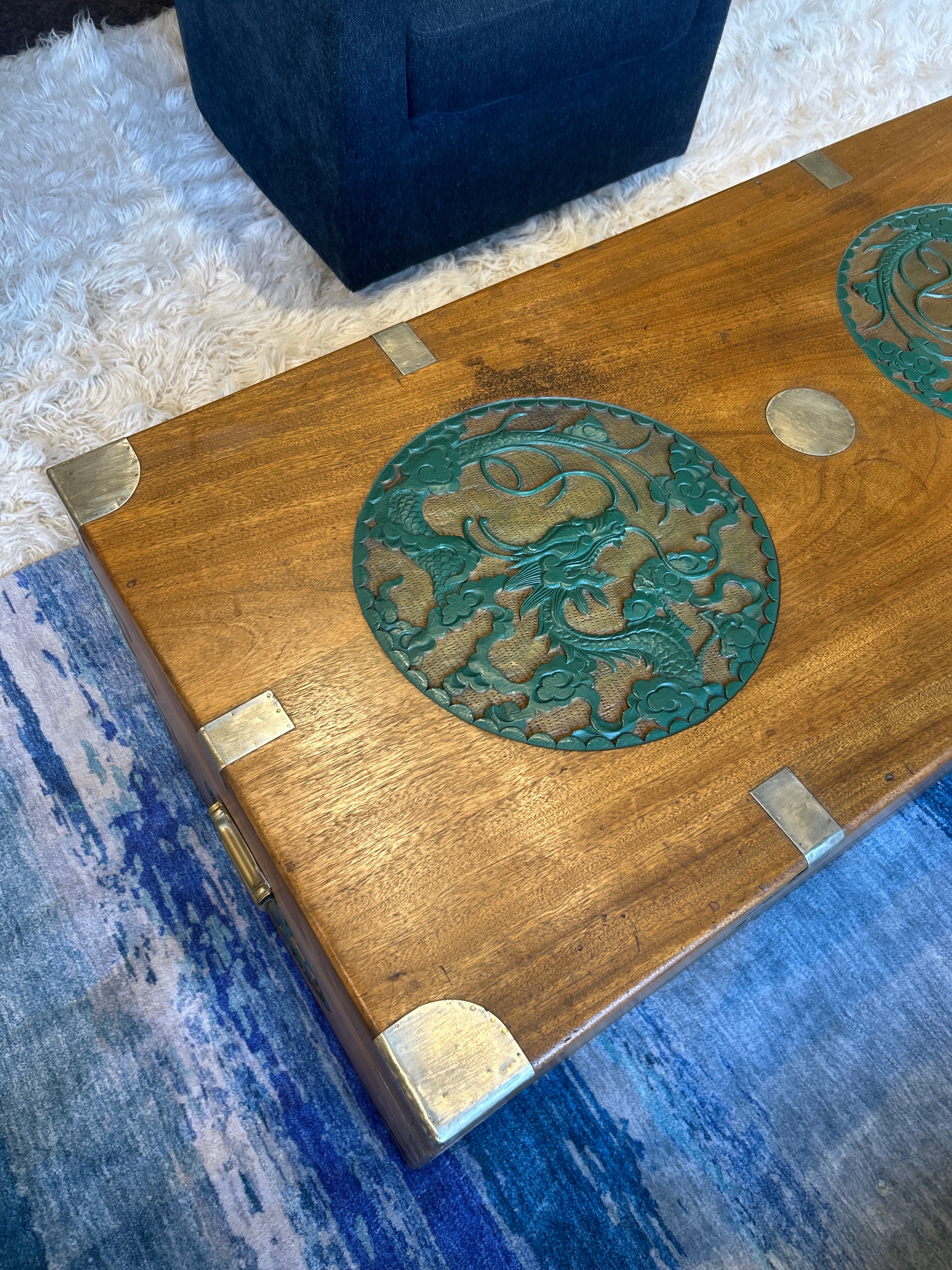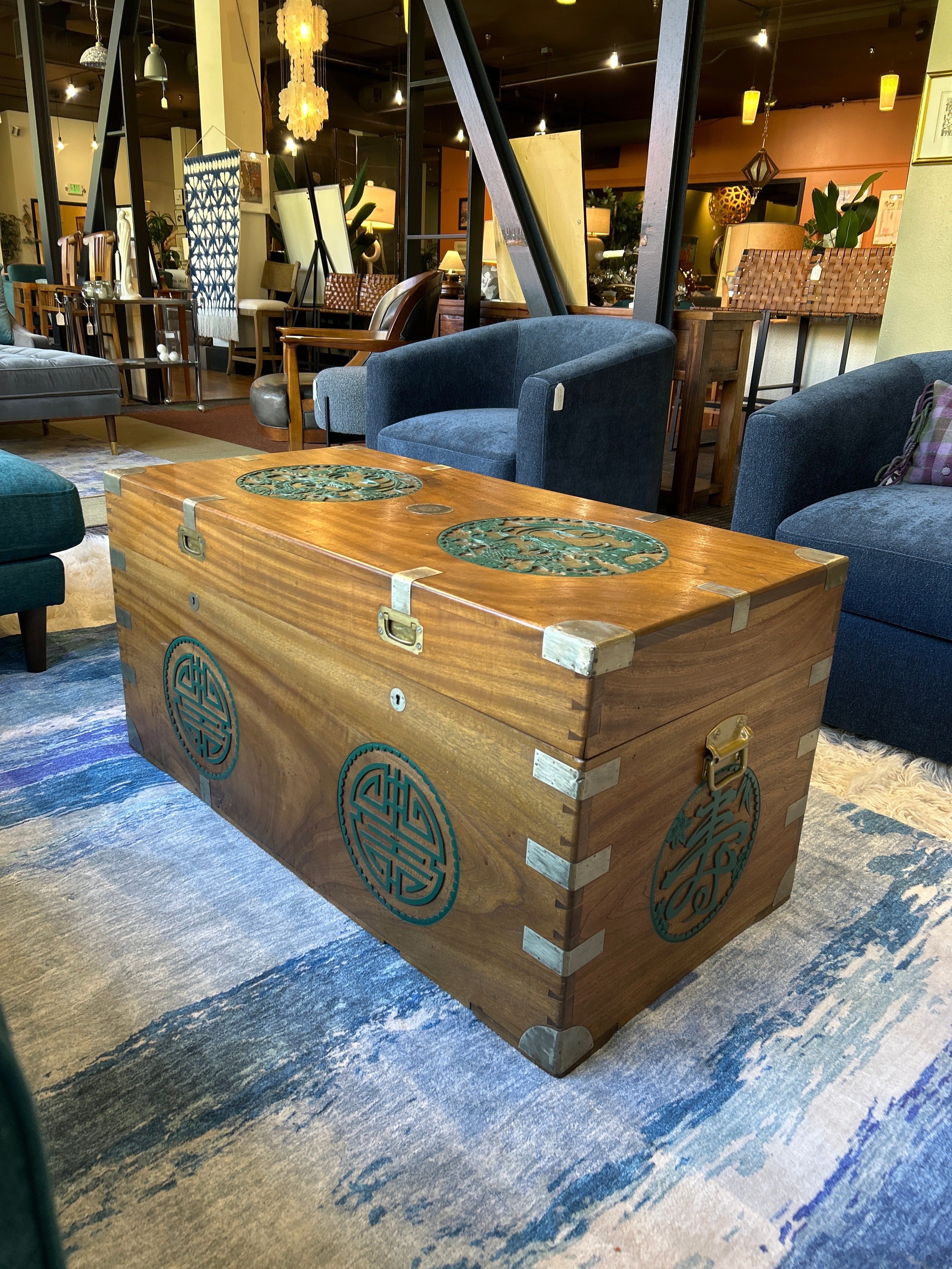 Chinese Camphor Wood Sailor's Large Sea Chest Jade and Brass-Inlaid Trunk 41" L x 20" W x 20" H