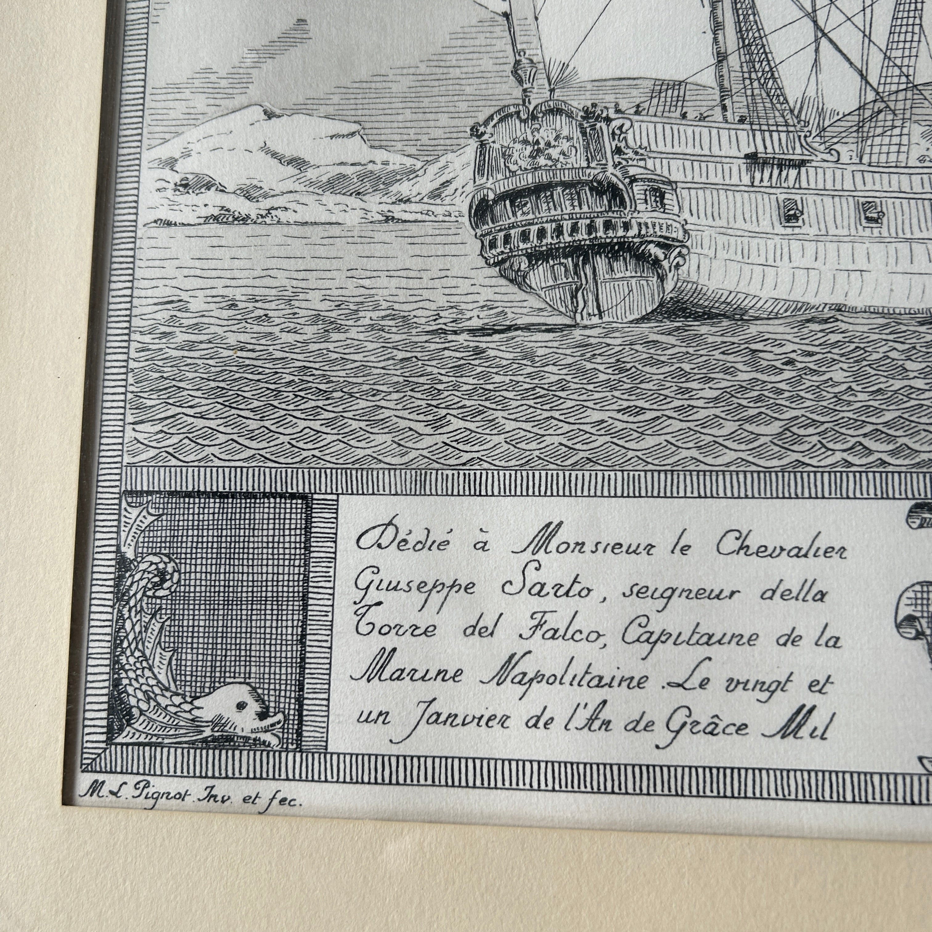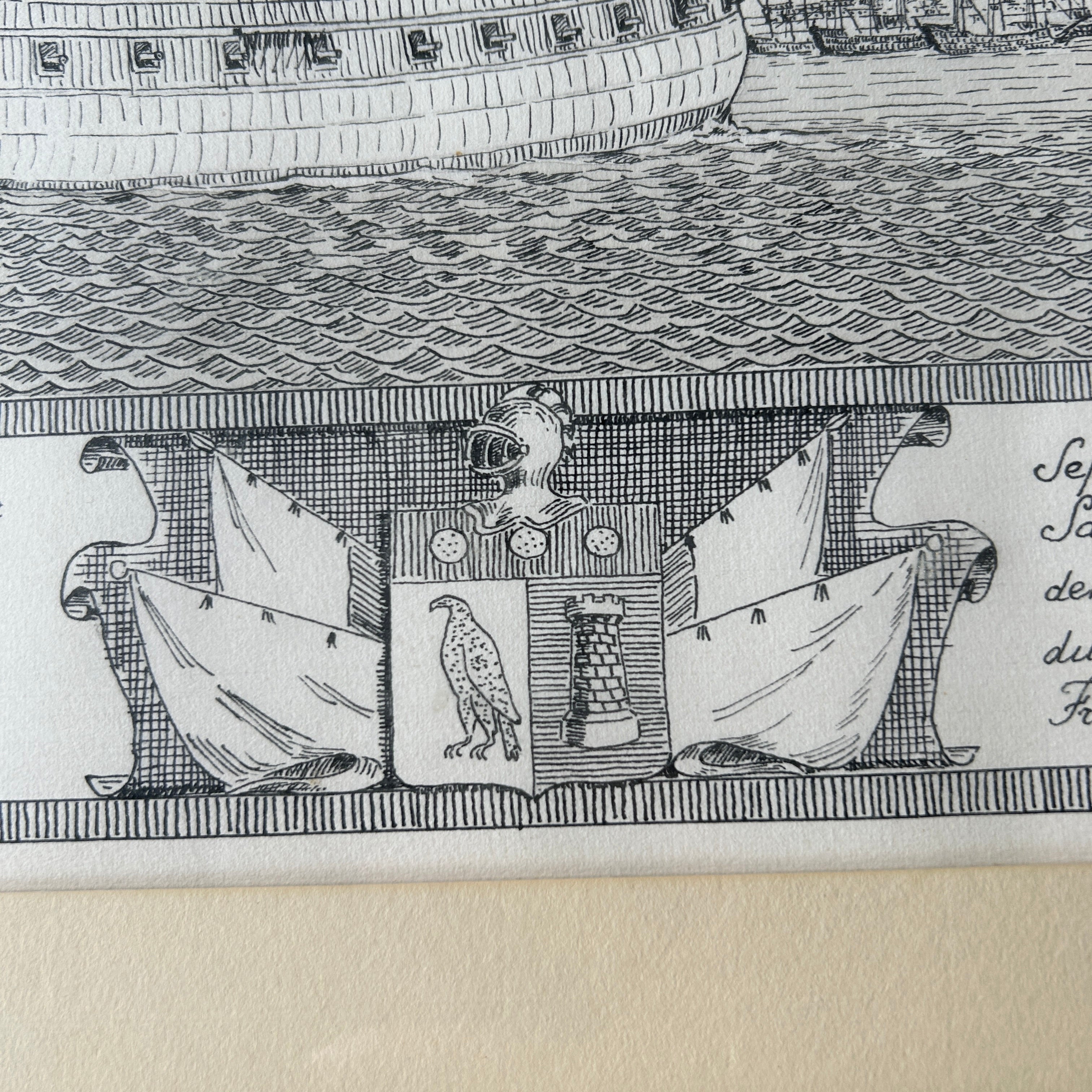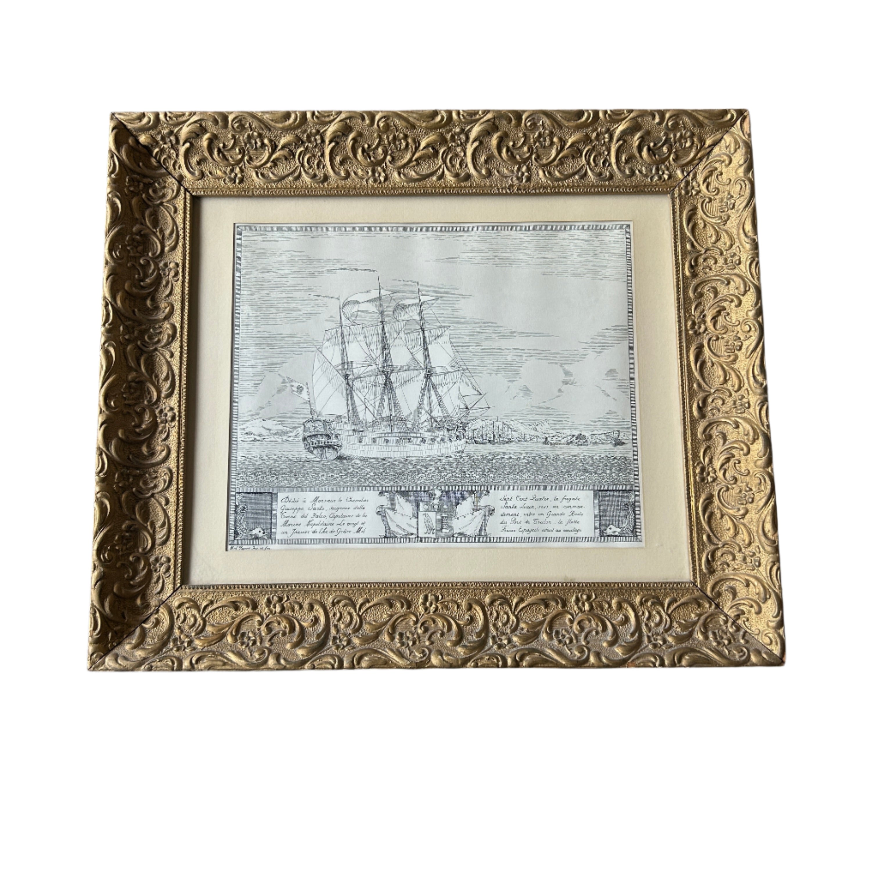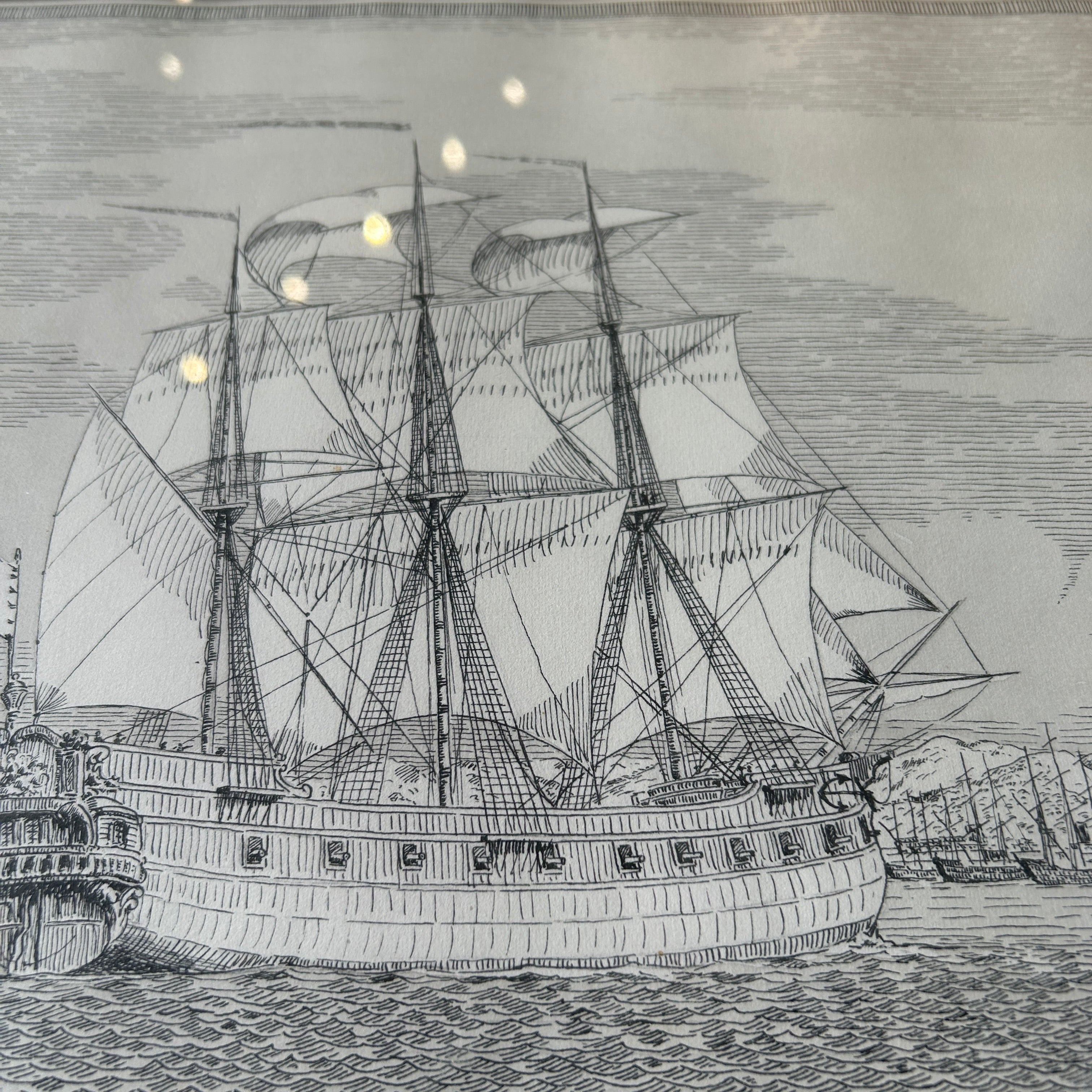 French Sailing Schooner Nautical Sketch 18" W x 25" H