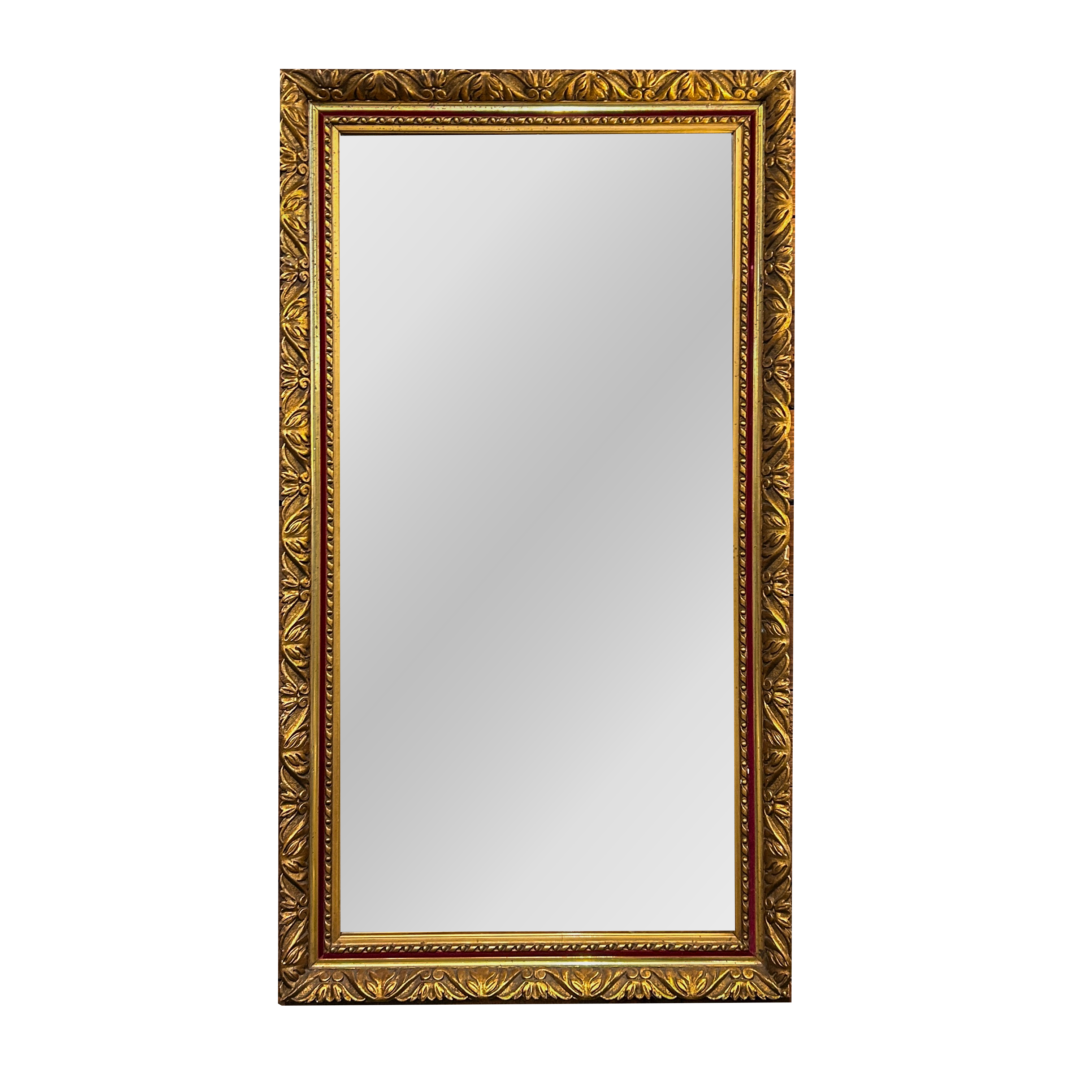 Add a touch of vintage elegance to any room with our German Antique Mirror. Its ornate design and stunning red velvet trim will bring a sense of luxury and beauty to your space. Measuring at 14.5" x 14.5" x 31", this mirror is the perfect statement piece for your home.
