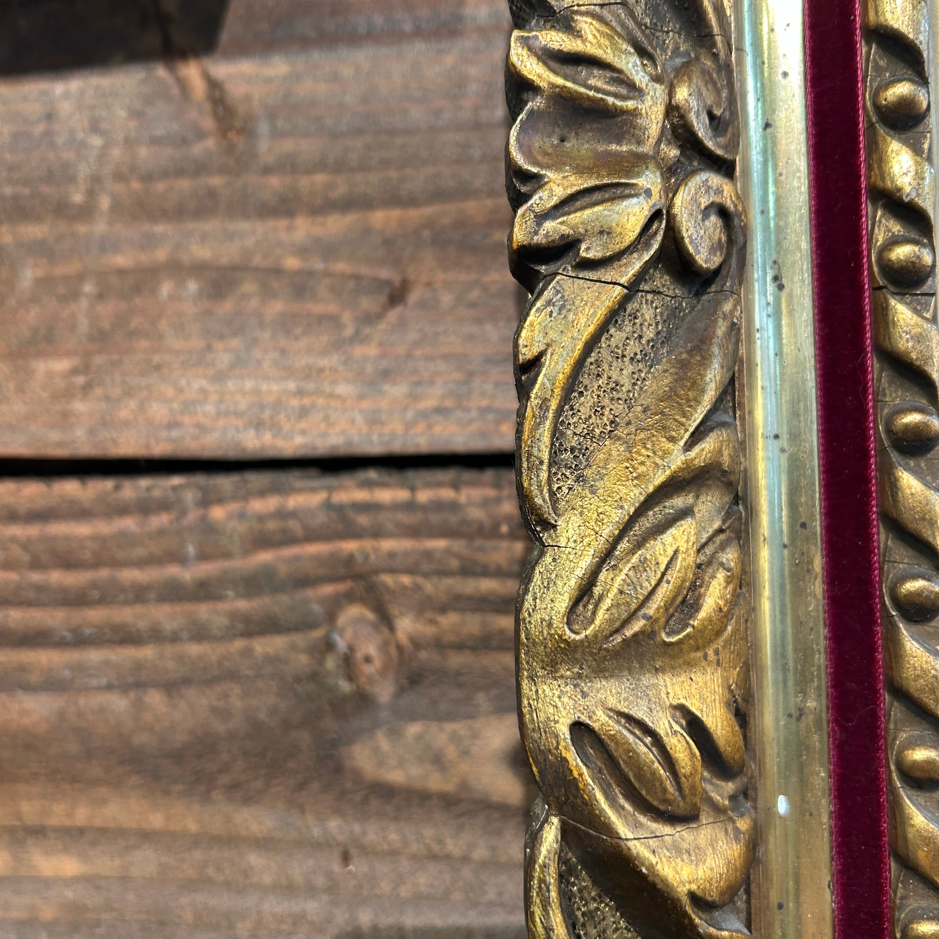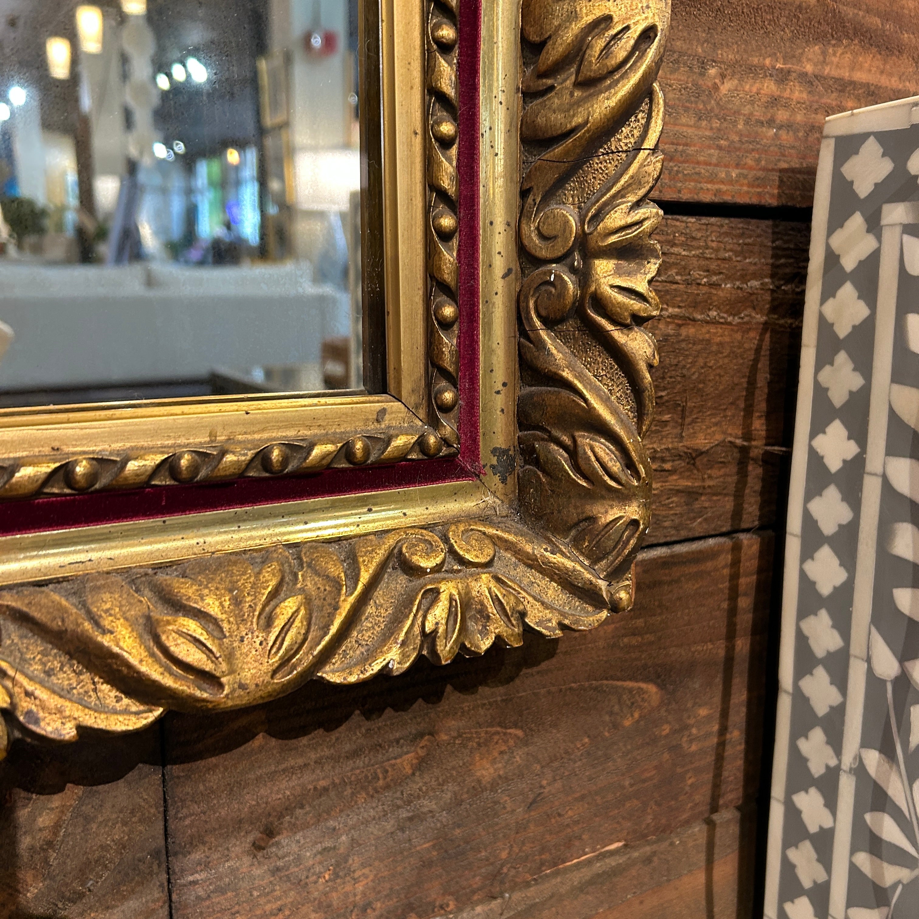 German Antique Mirror with Red Velvet Trim 14.5" x 14.5" x 31"