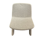 The chair's signature feature is its striking low-profile, rounded backrest, which wraps gently to provide exceptional lumbar support without sacrificing its sleek, armless aesthetic.