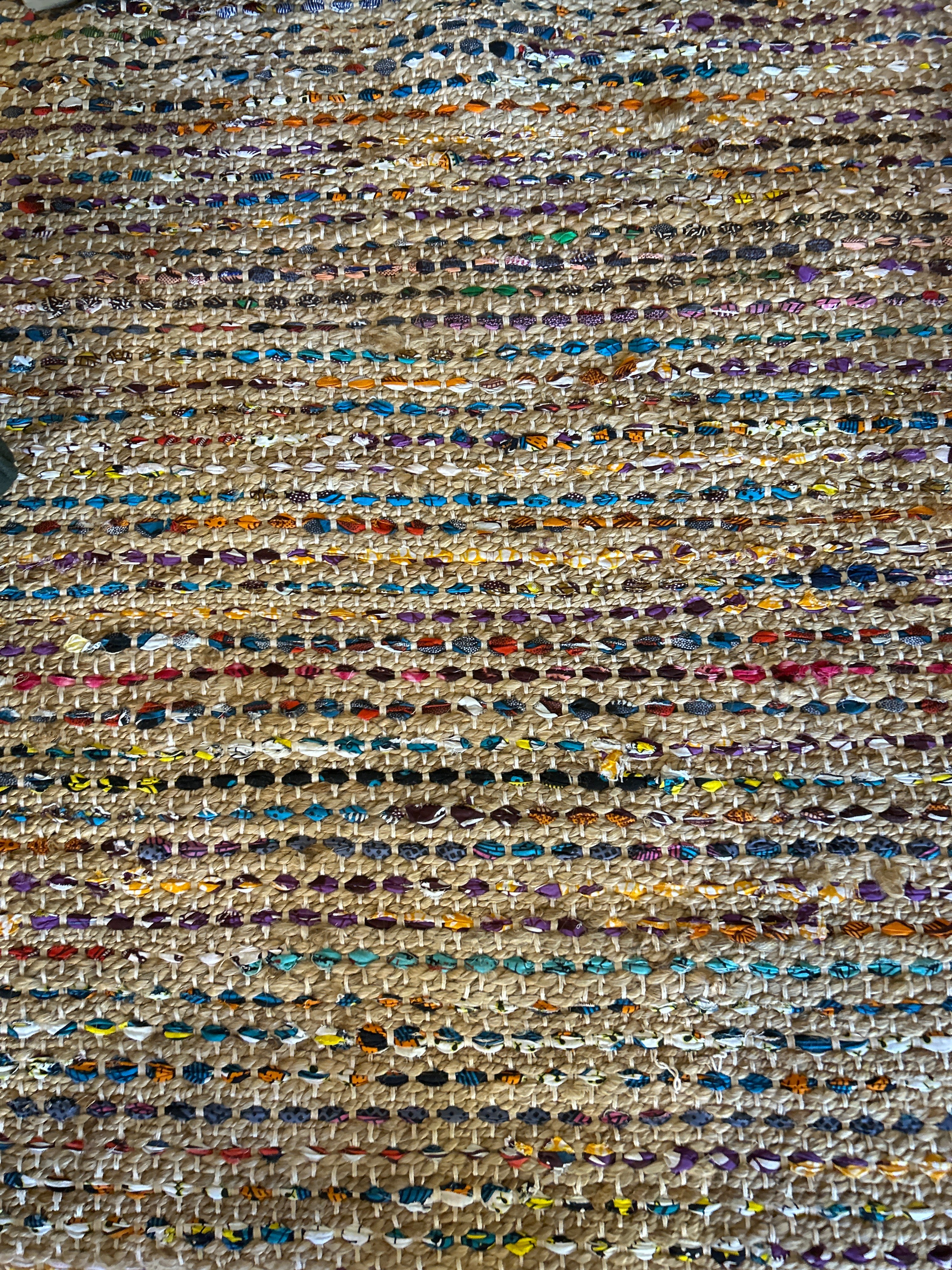 Bring warmth and character to your space with this beautifully handwoven rug, crafted from natural jute and accented with strips of vibrant, multicolored fabric. The neutral beige base keeps things grounded, while the subtle rainbow weave adds just the right amount of personality—bright enough to stand out, soft enough to blend in. Durable, eco-friendly, and full of texture, it's the perfect statement piece for living rooms, bedrooms, or entryways that crave a touch of color without overwhelming the space.